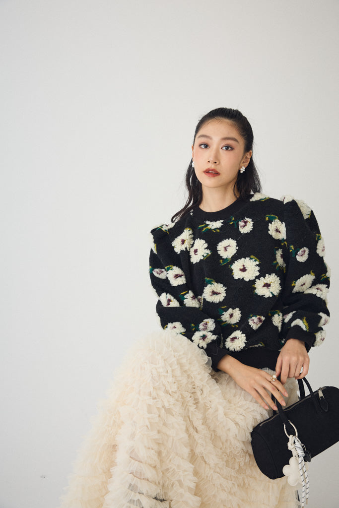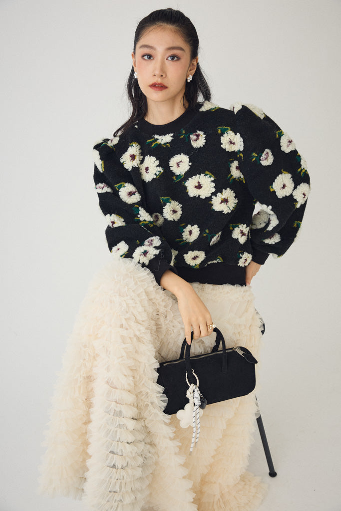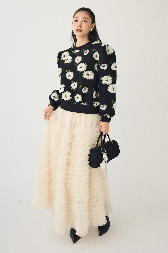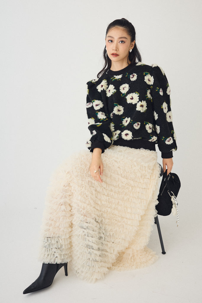 [予約/SET]ボアフラワーモチーフニット+ホイップチュールティアードスカート(2set)
