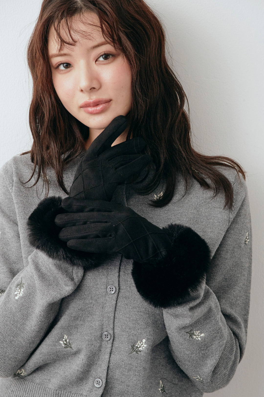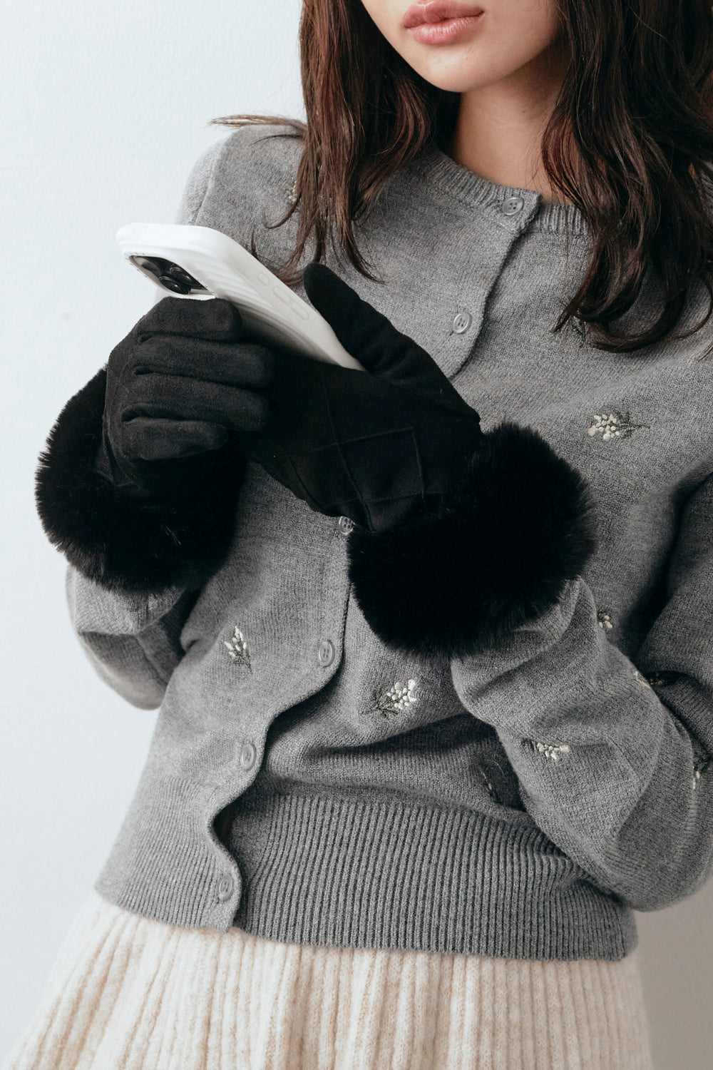 [予約]スウェードライクファー付きタッチグローブ