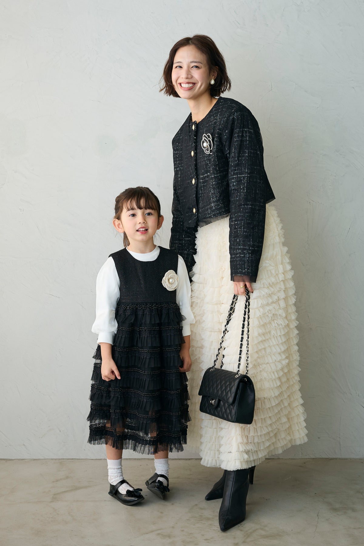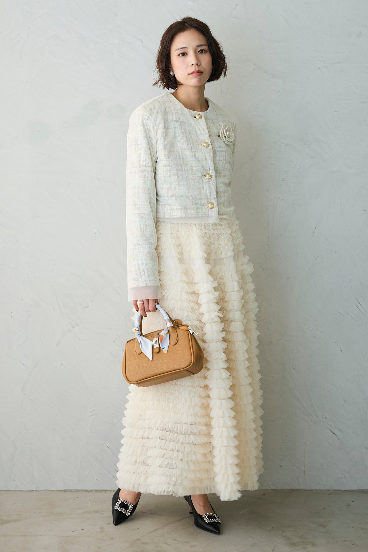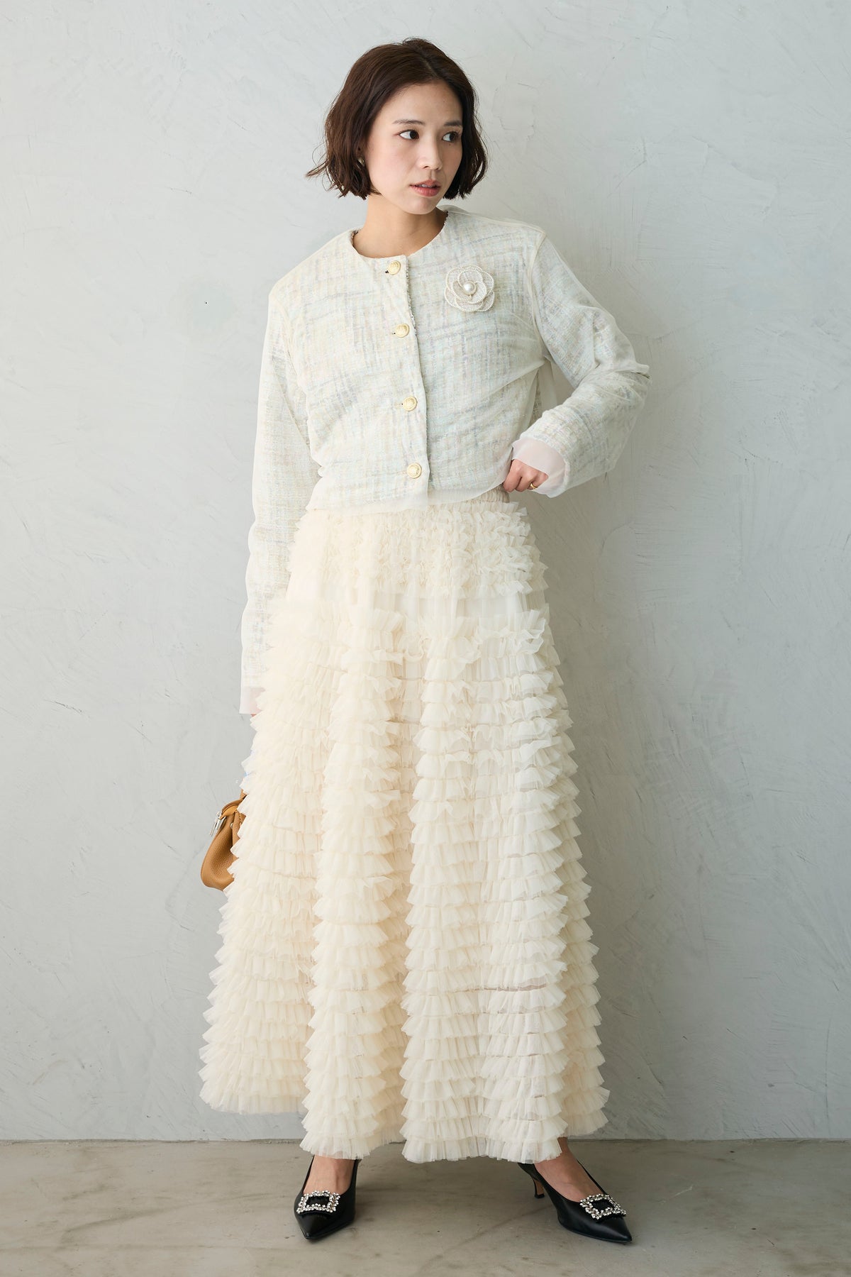 [予約/SET]ツイード×チュールレイヤードクロップドジャケット+ホイップチュールティアードスカート(2set)