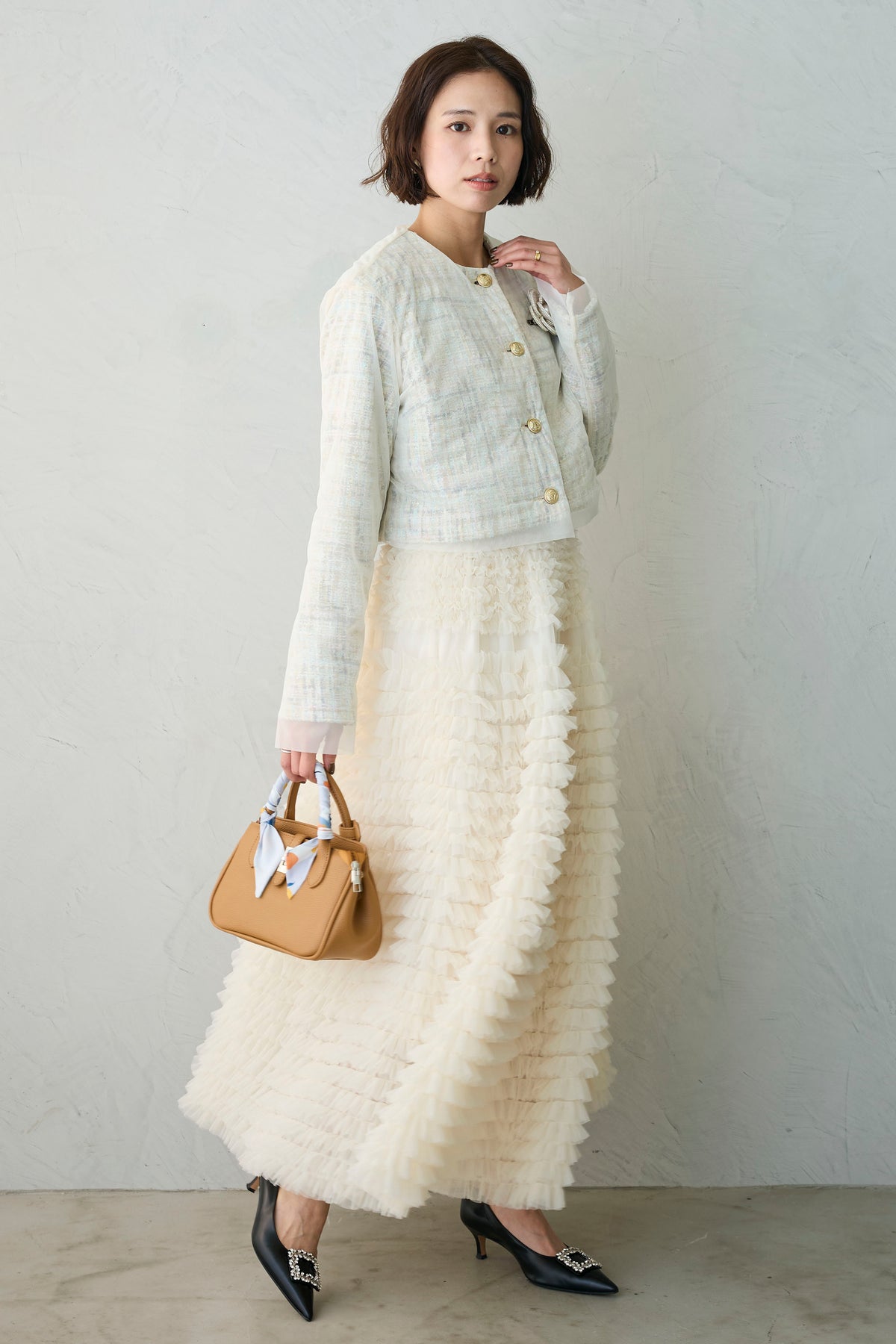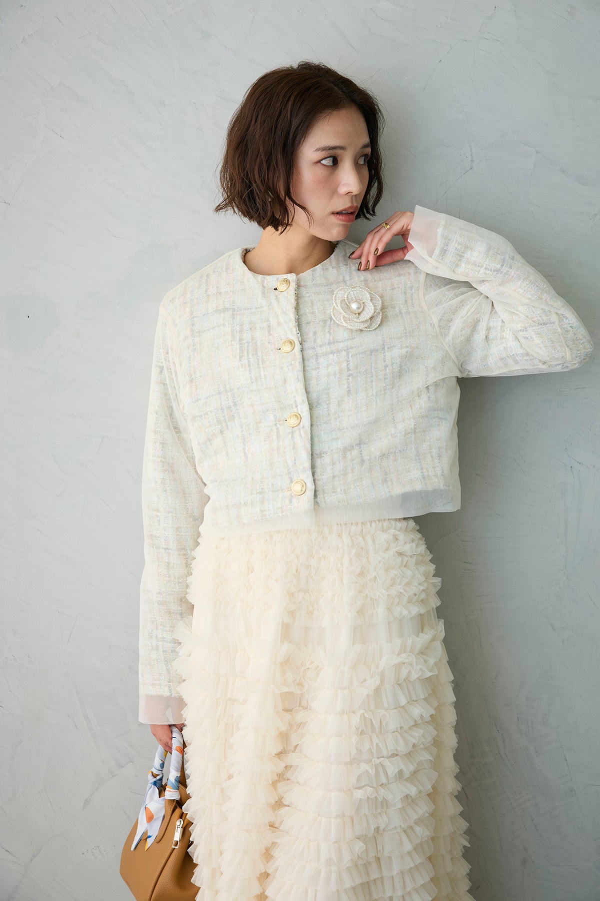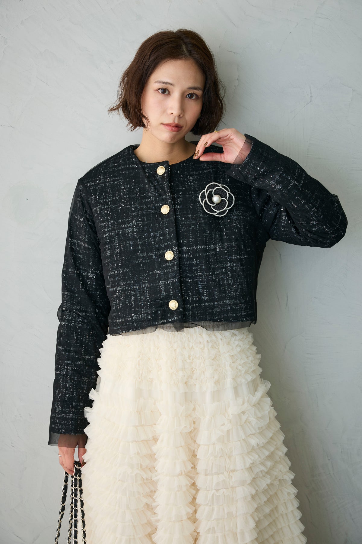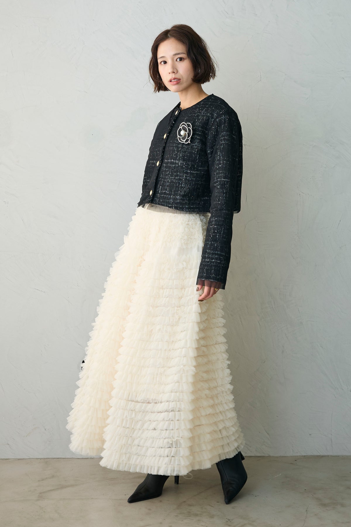 ◆ ツイード×チュールレイヤードクロップドジャケット