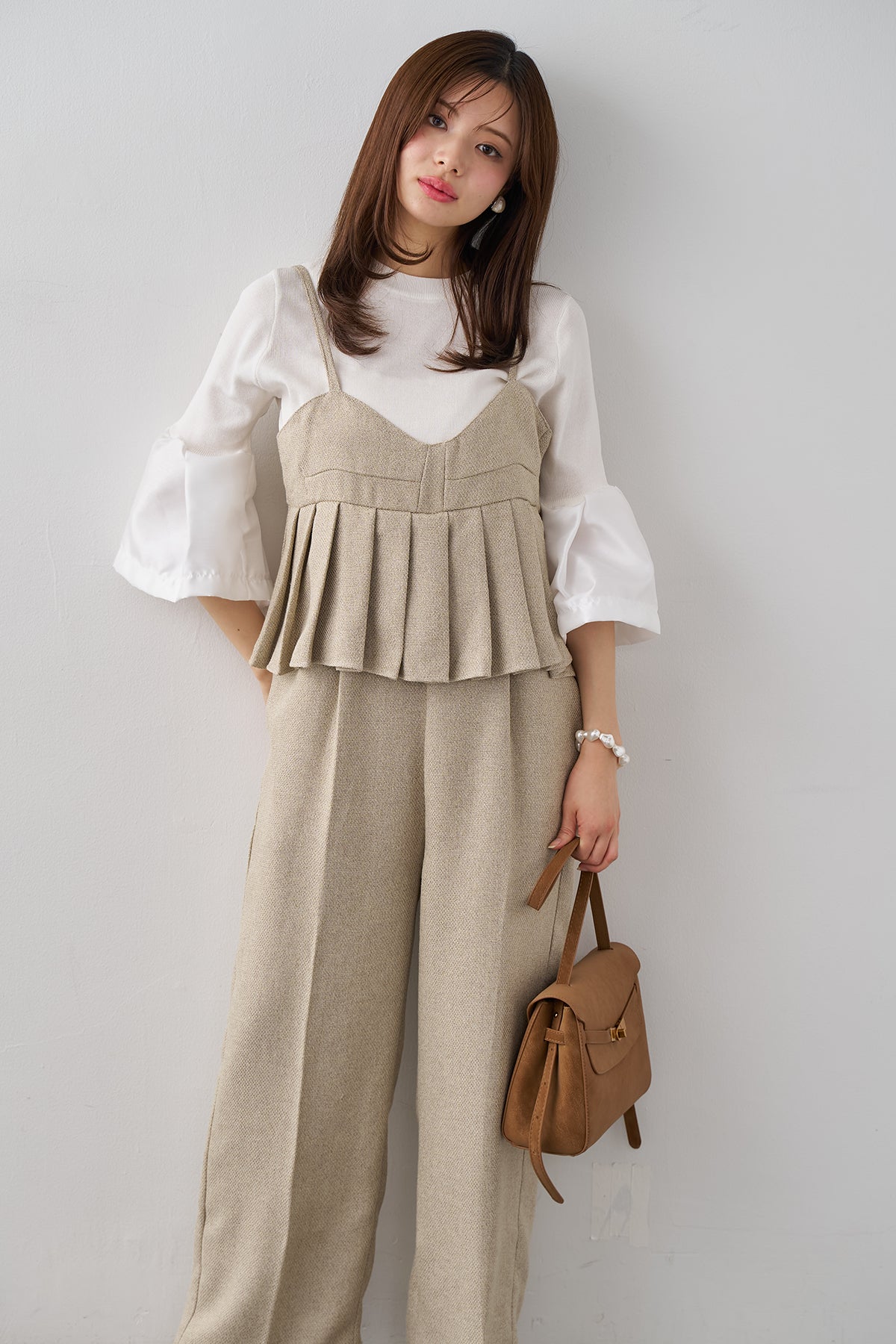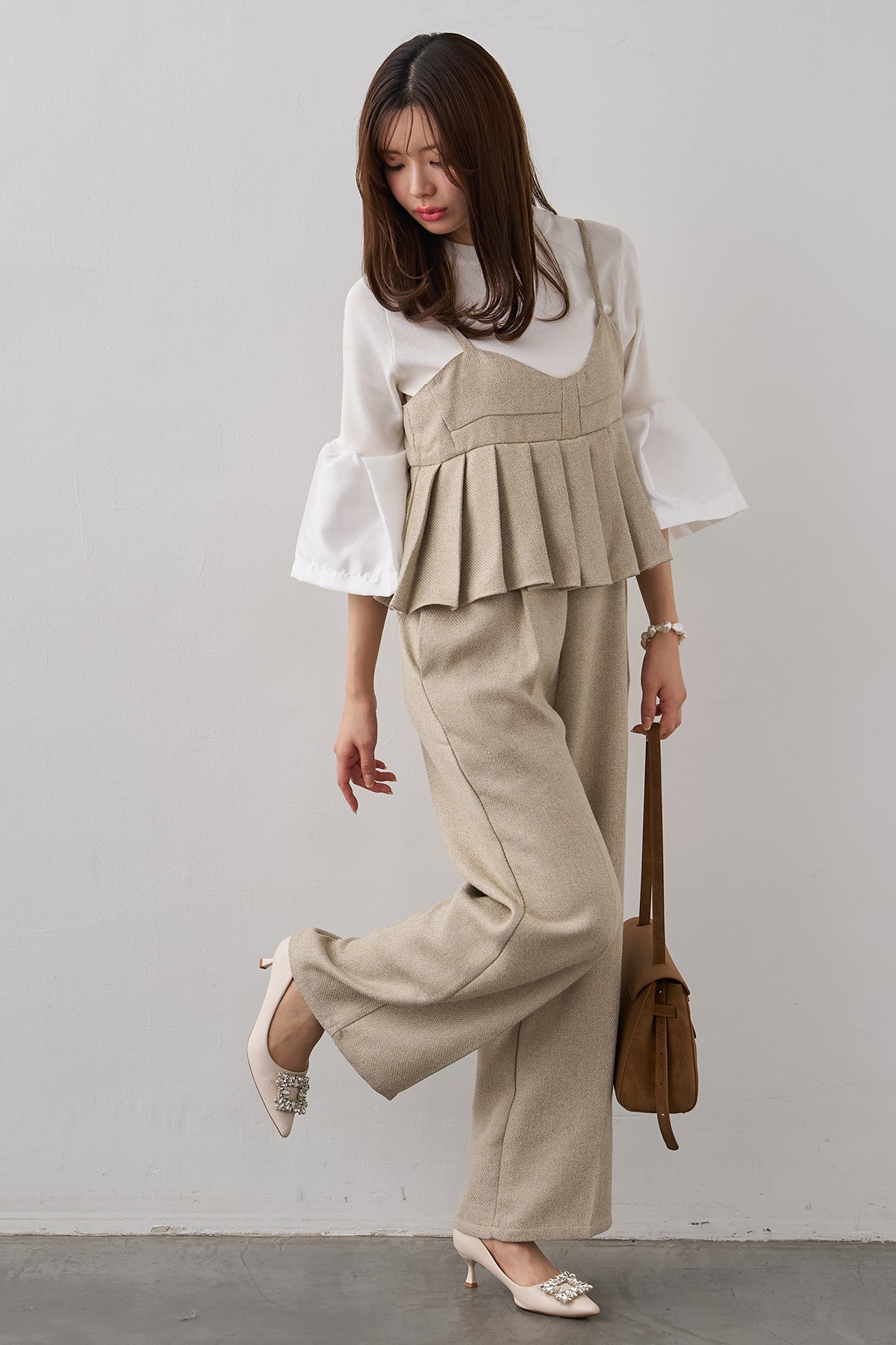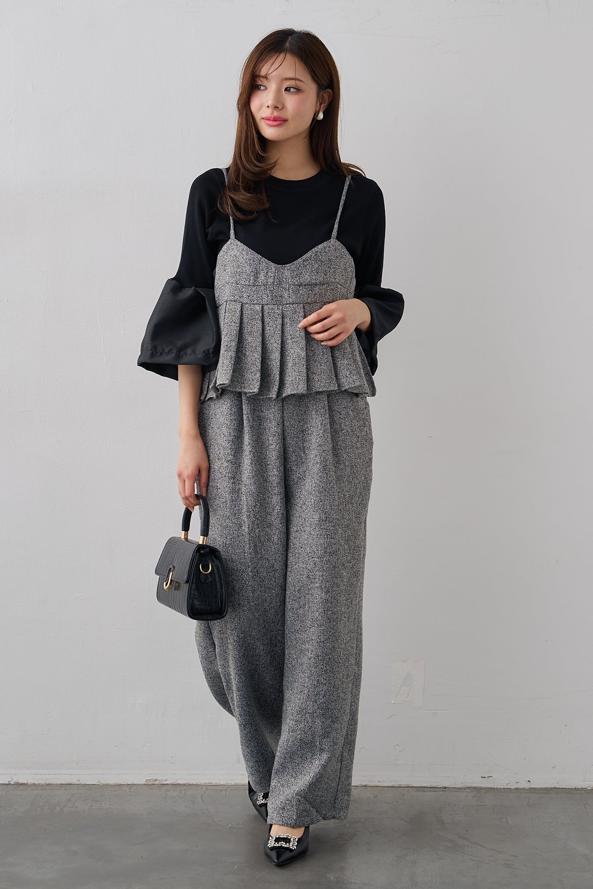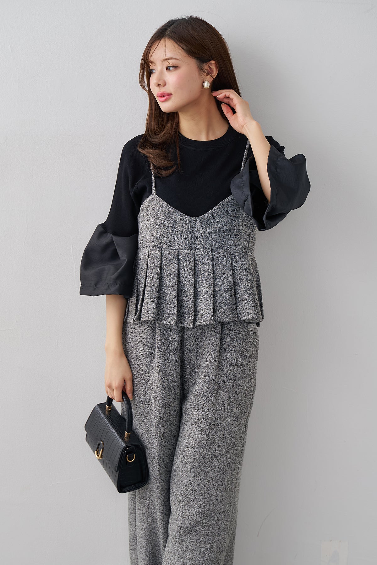 [予約/SET]タックフレア異素材ドッキングニットPO+プリーツビスチェオールインワン(2set)