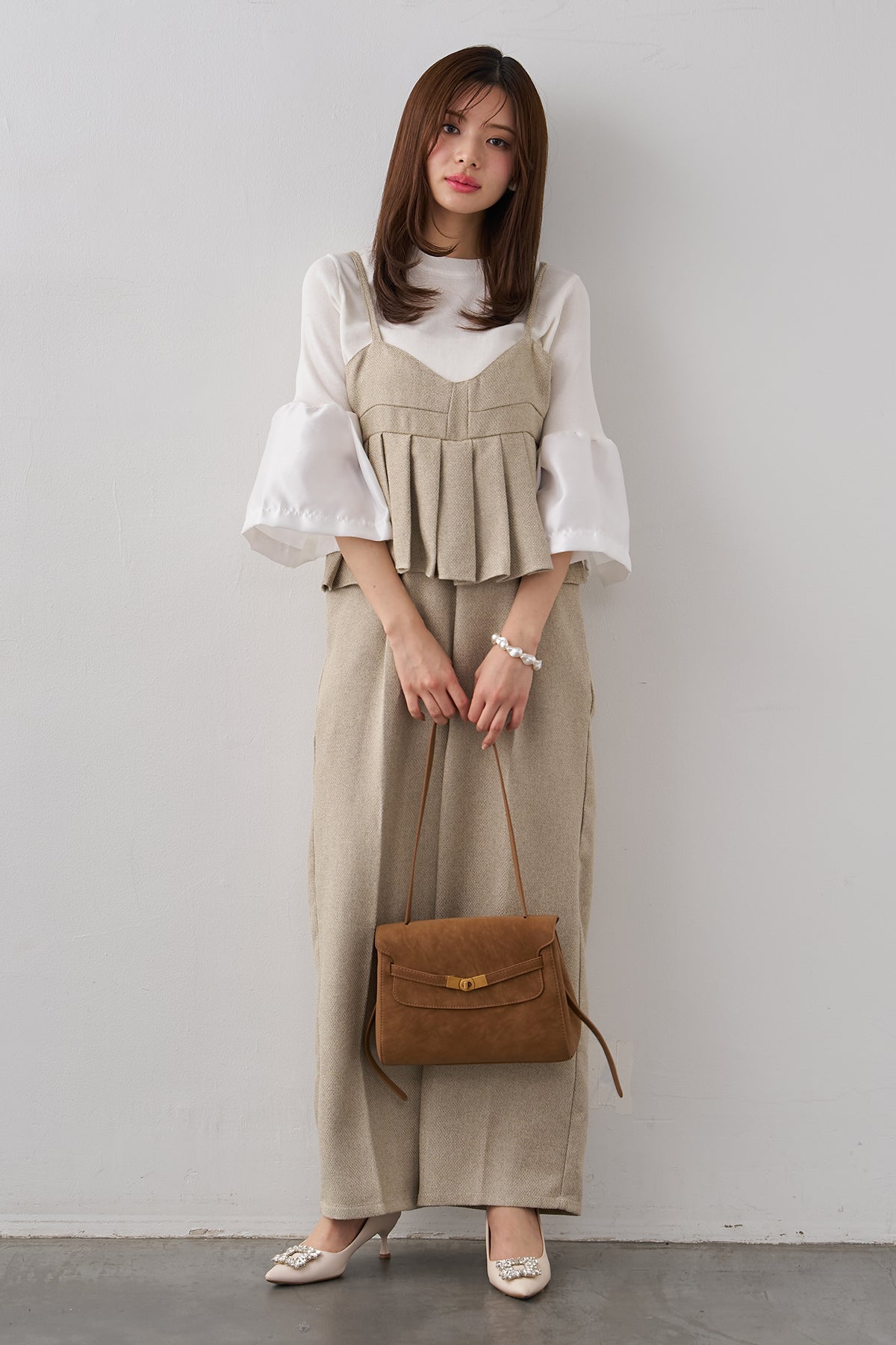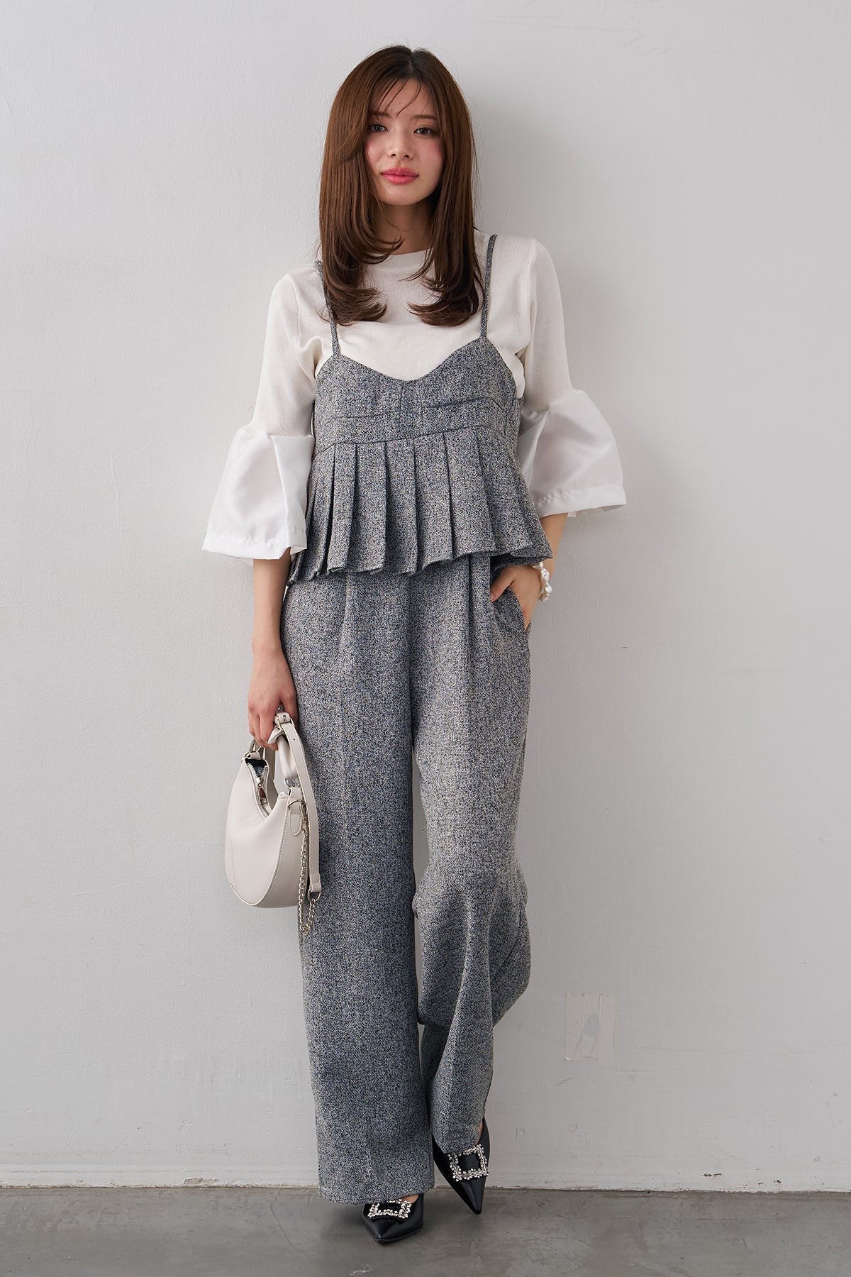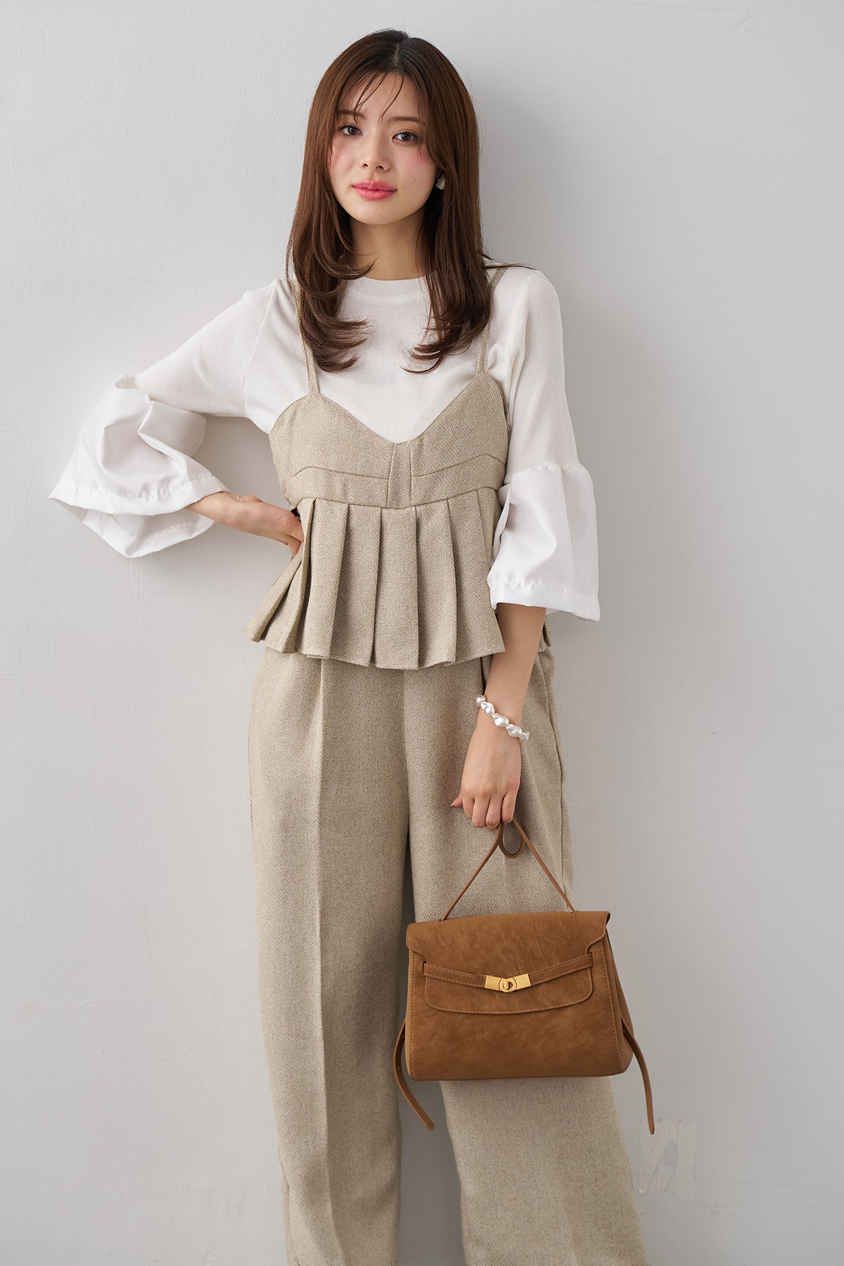 [予約/SET]タックフレア異素材ドッキングニットPO+プリーツビスチェオールインワン(2set)