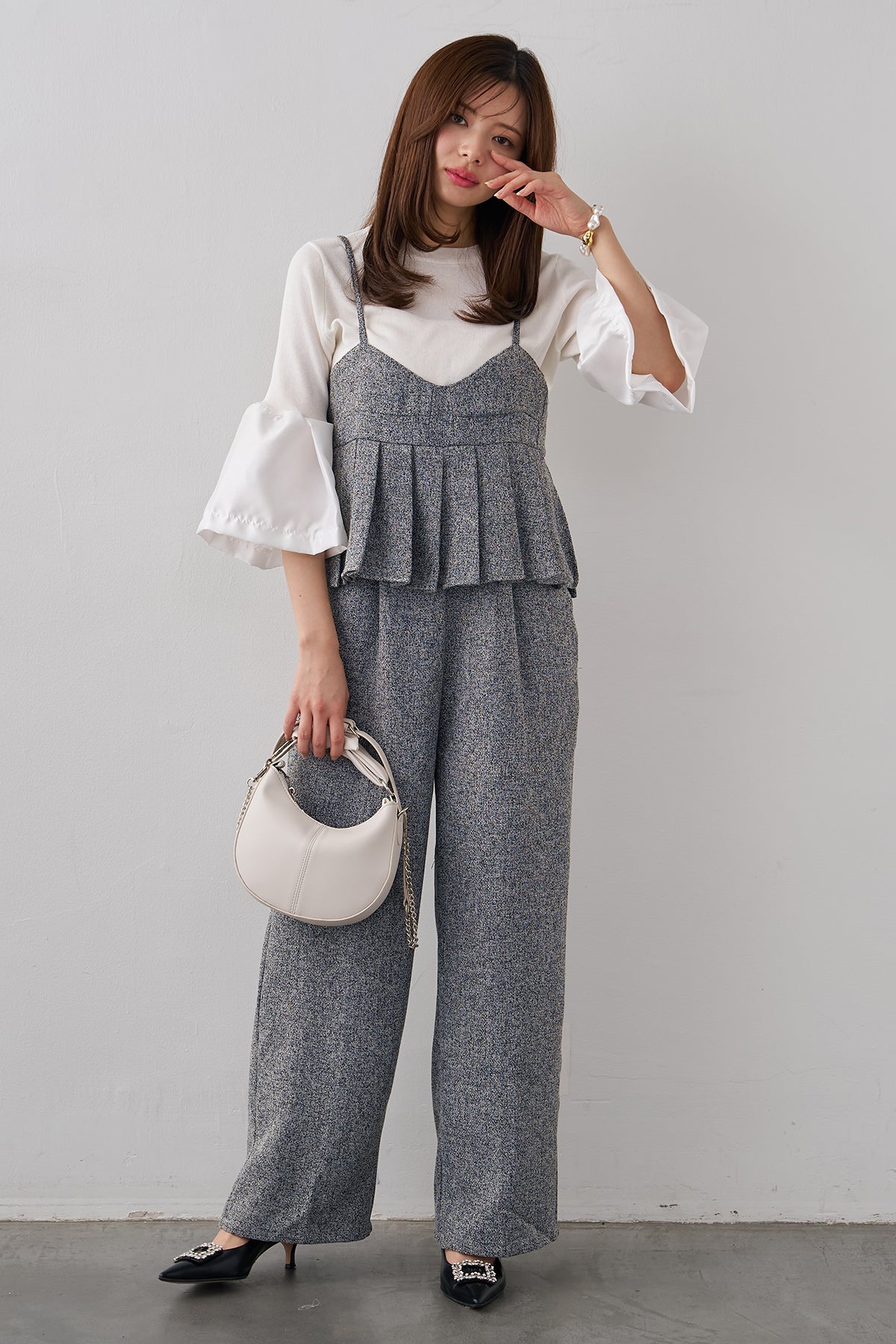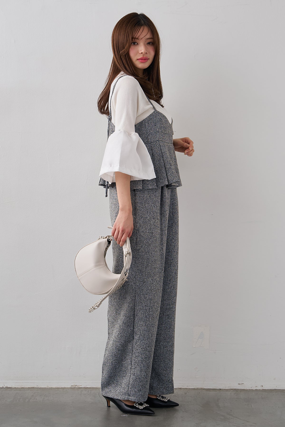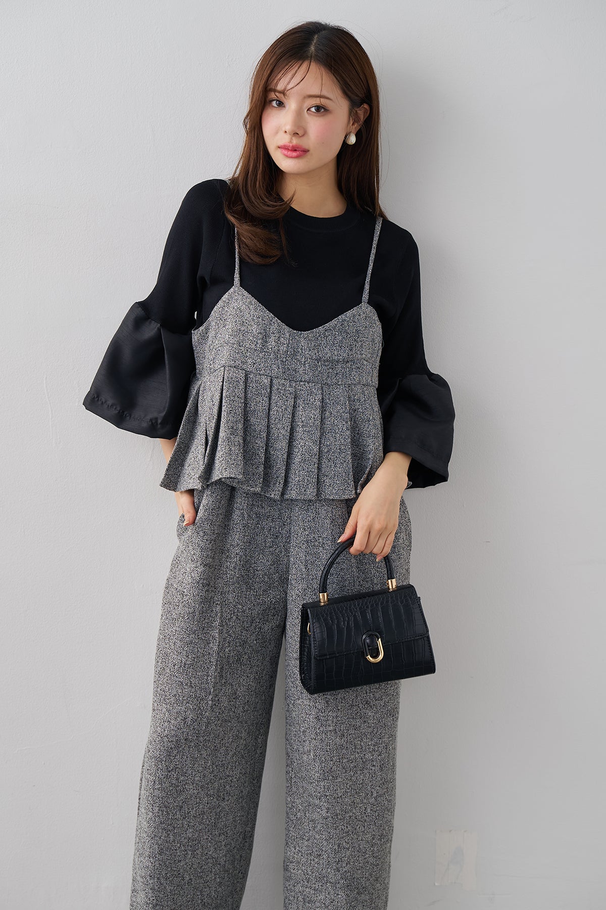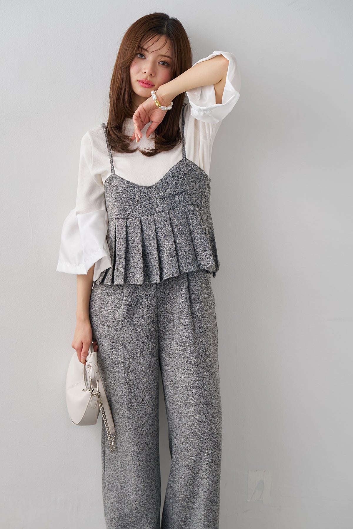 [予約/SET]タックフレア異素材ドッキングニットPO+プリーツビスチェオールインワン(2set)