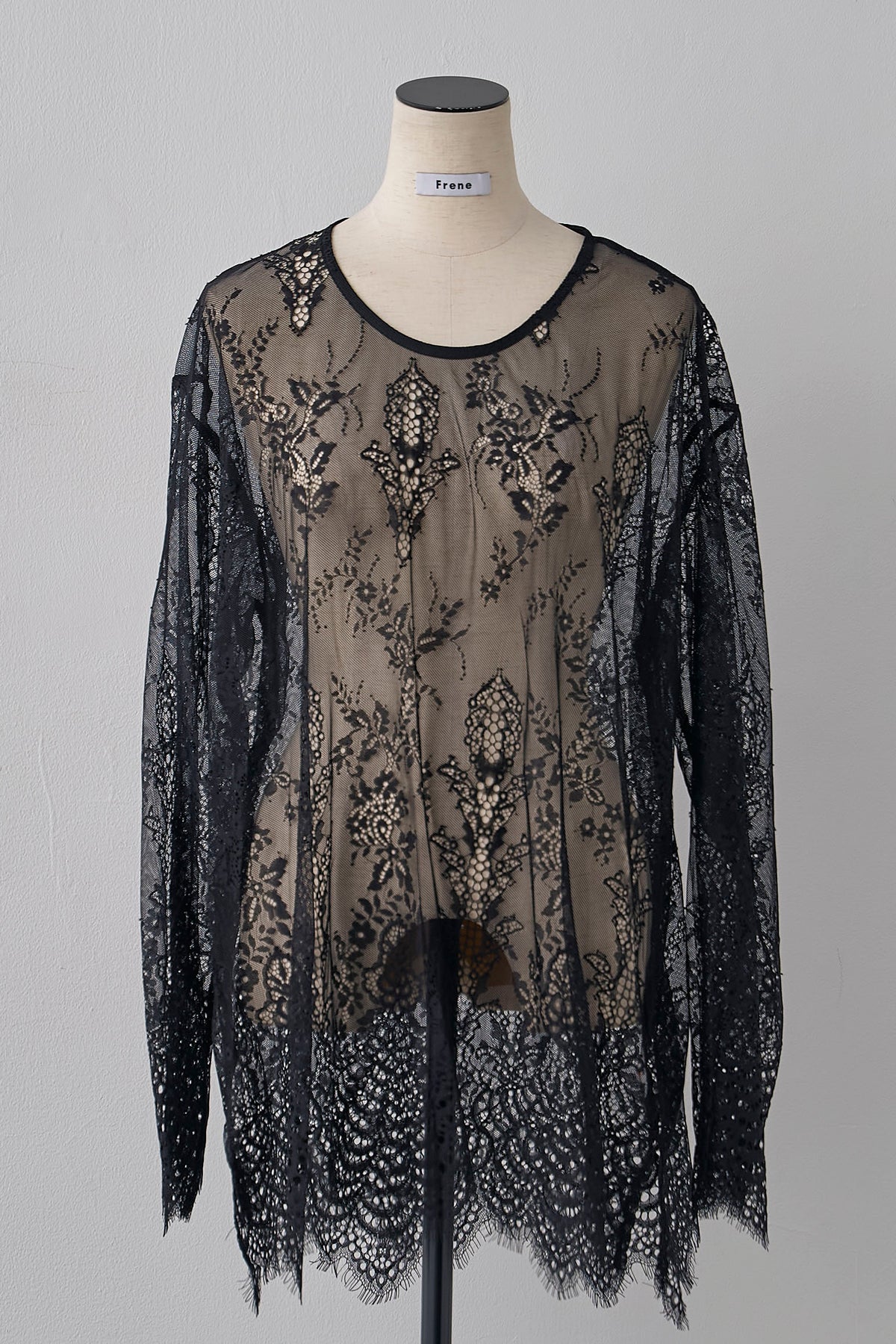 繊細なレースを贅沢に使用した、大人のレイヤードスタイルに欠かせないトップス。 ニットやプルオーバーのインナーとして合わせれば、襟元や袖口から覗く透け感が、装いに女性らしい華やぎと奥行きをプラスします。 裾や袖口は優美なスカラップ仕様になっており、重ね着した際のディテールまで美しく演出。 いつものコーディネートにプラスワンするだけで、洗練された印象へと導いてくれる着回し力抜群の一枚です。