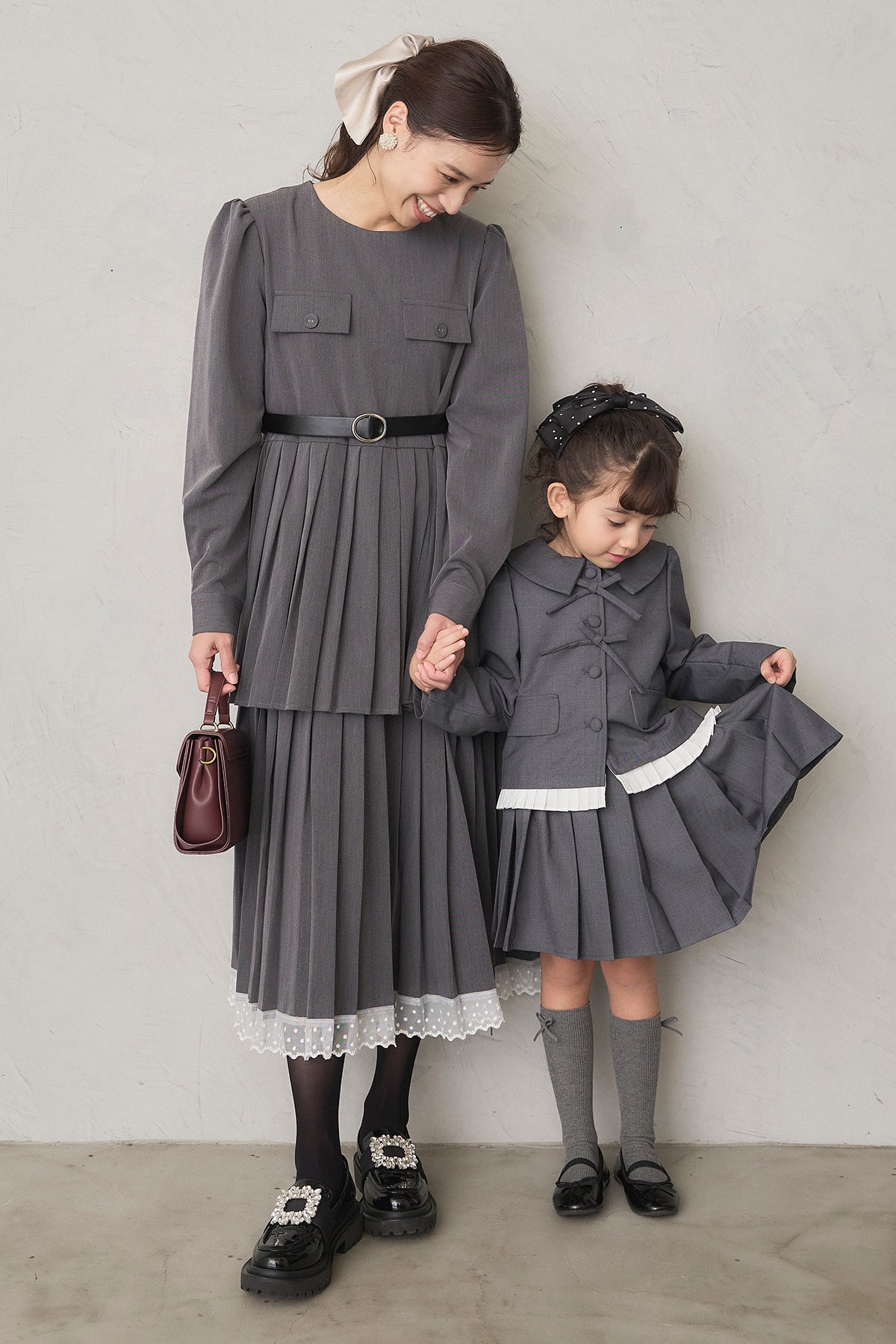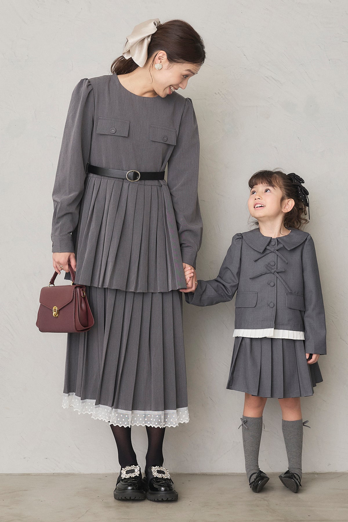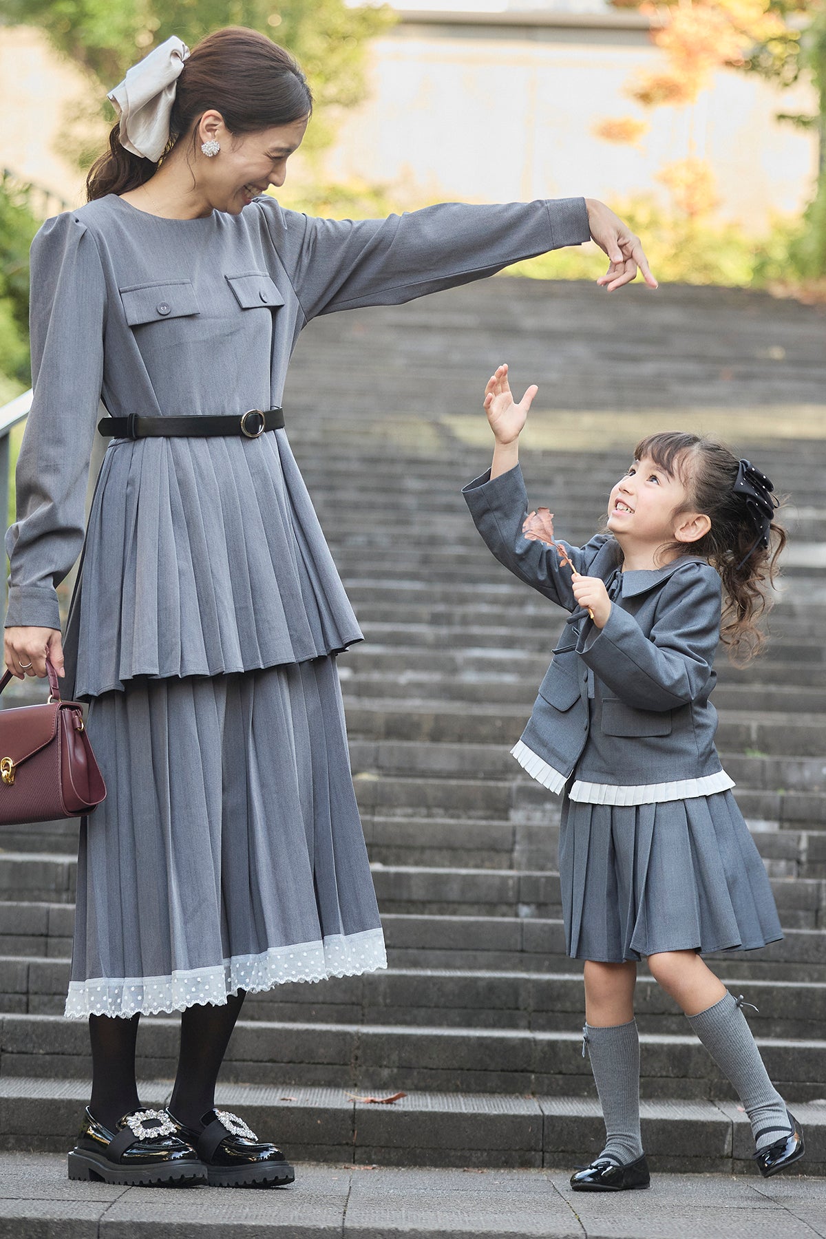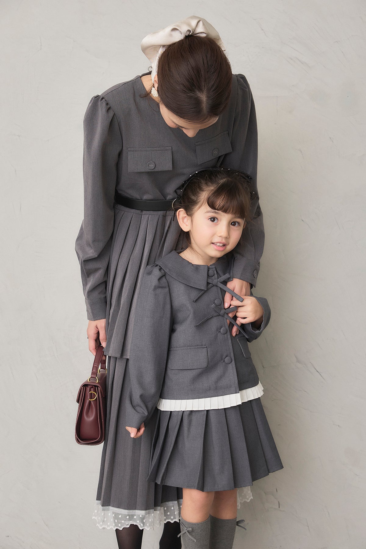 [予約/親子SET]ダブルプリーツクラシカルワンピース+[kids]クラシカルプリーツジャケットセットアップ(2set)