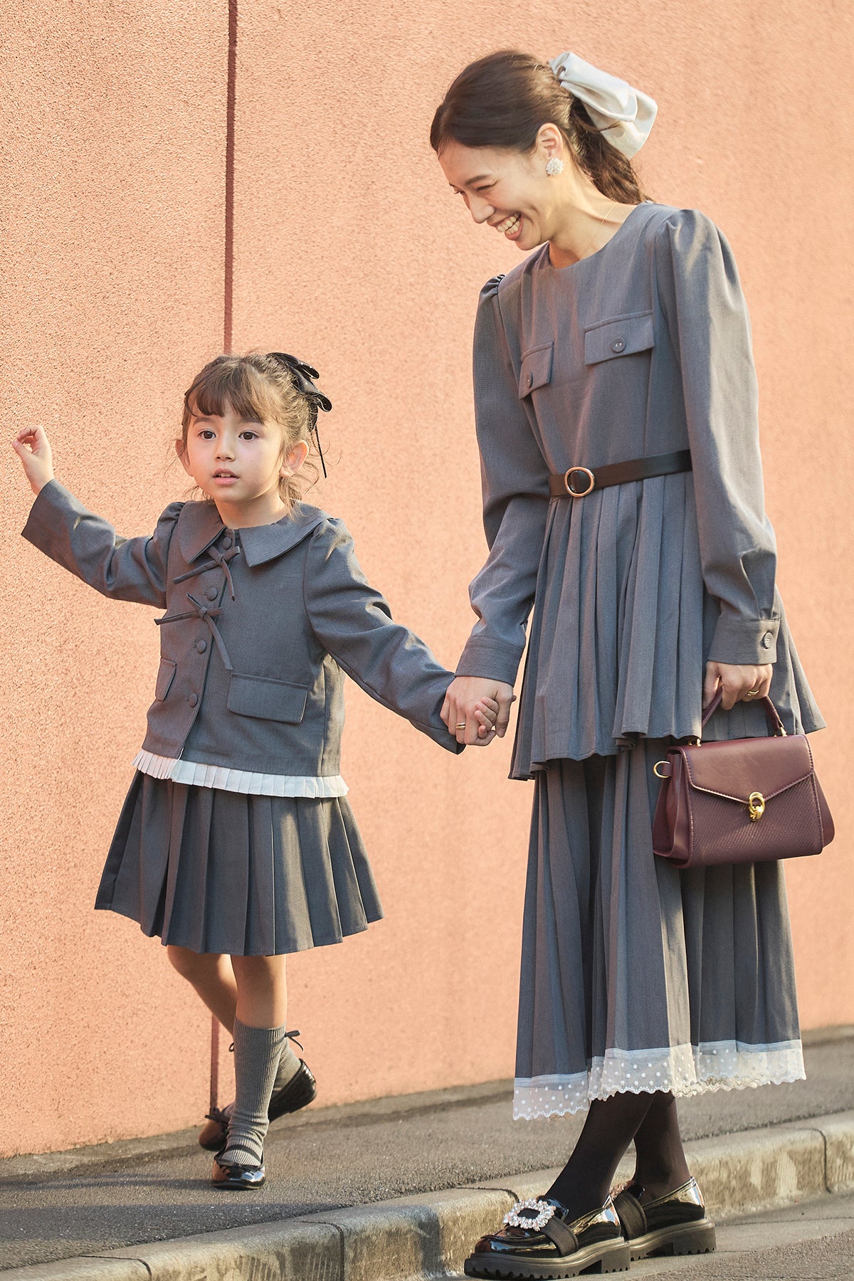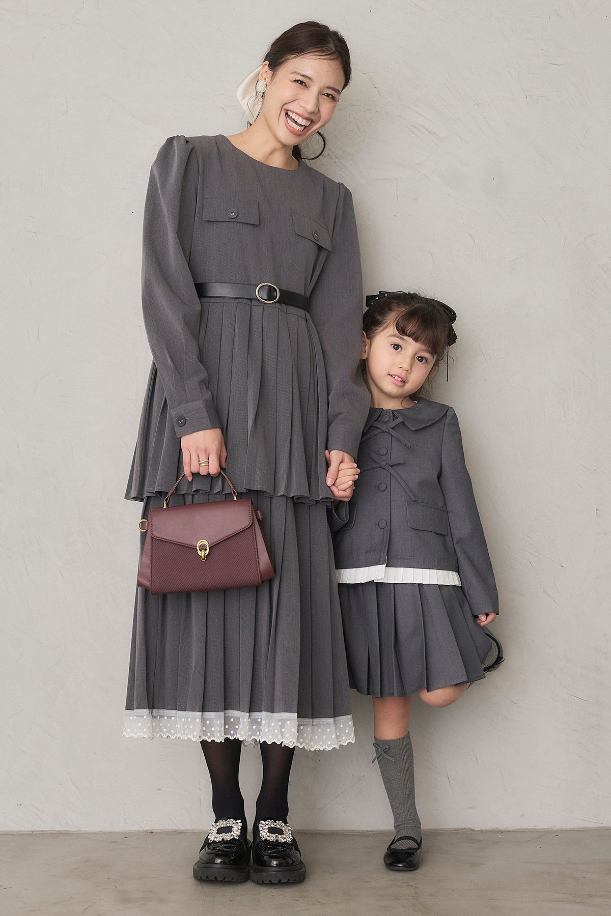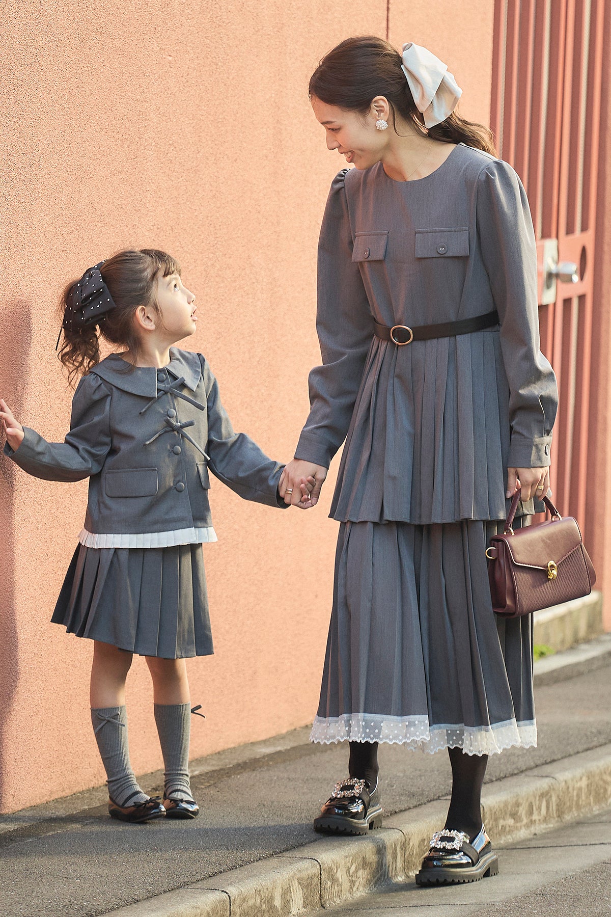 [予約/親子SET]ダブルプリーツクラシカルワンピース+[kids]クラシカルプリーツジャケットセットアップ(2set)