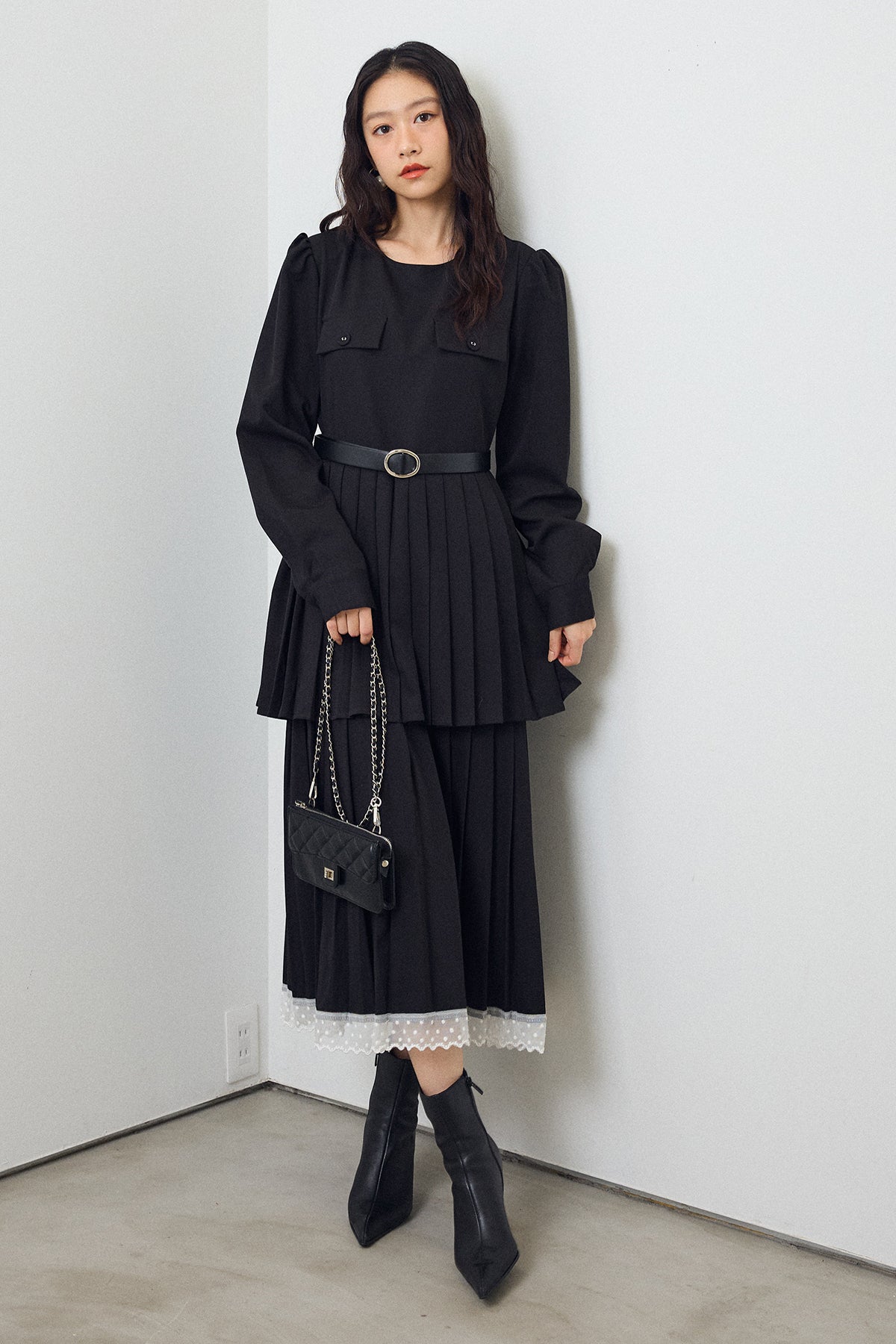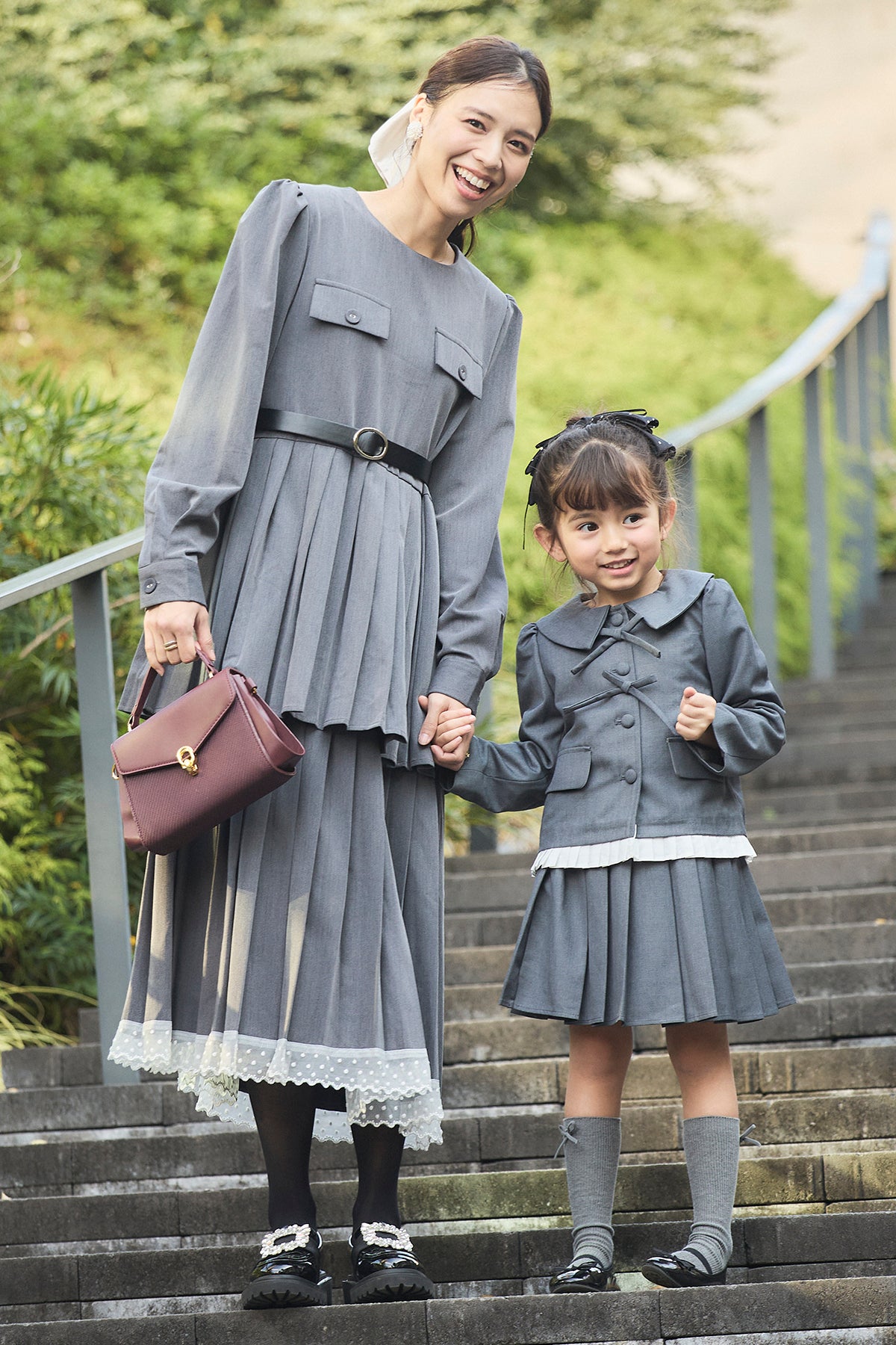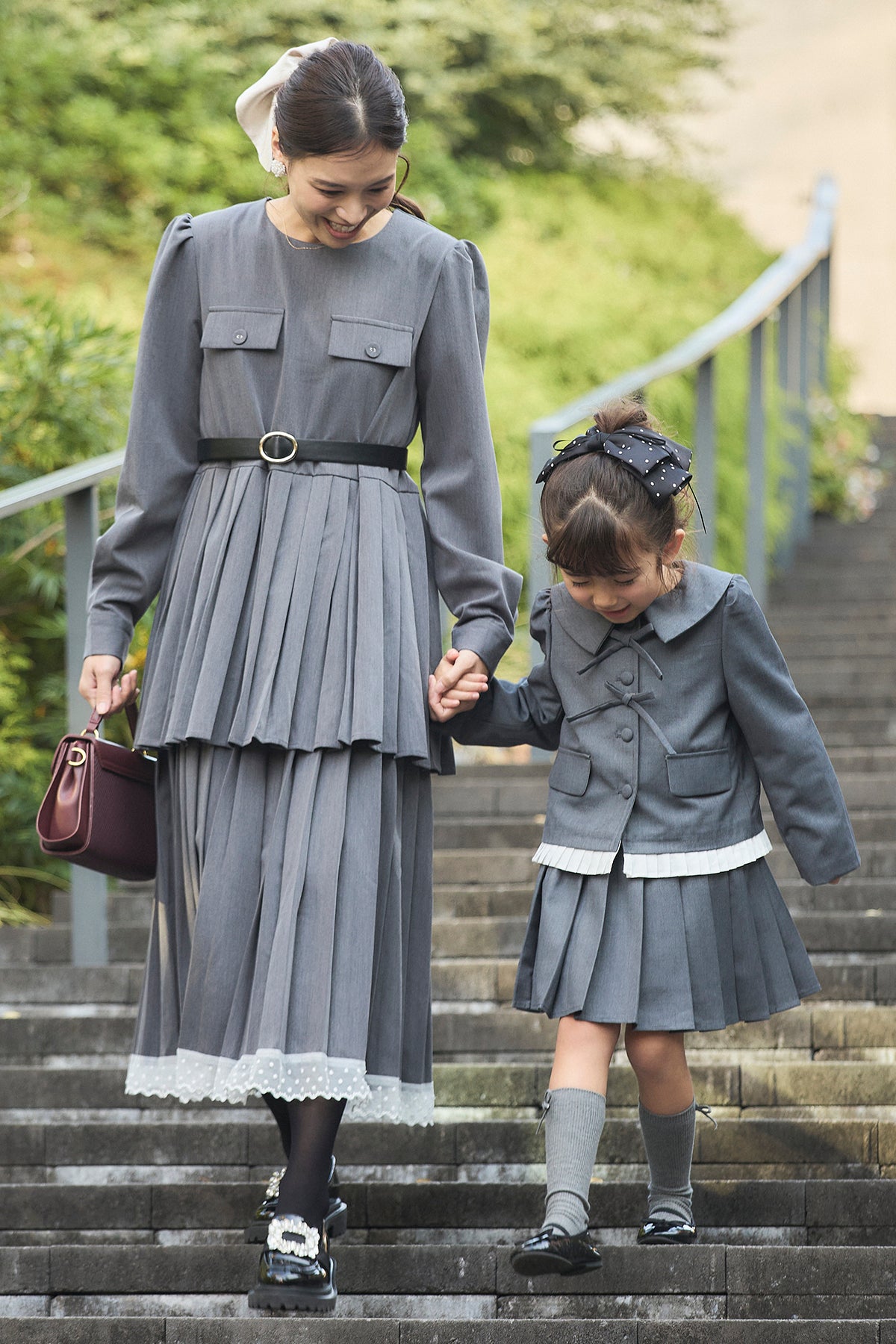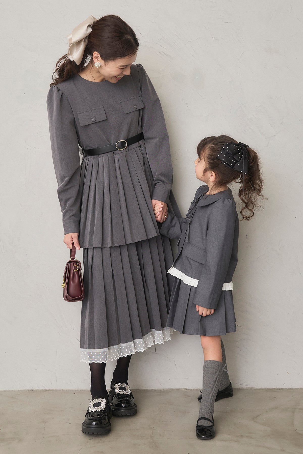 [予約/親子SET]ダブルプリーツクラシカルワンピース+[kids]クラシカルプリーツジャケットセットアップ(2set)