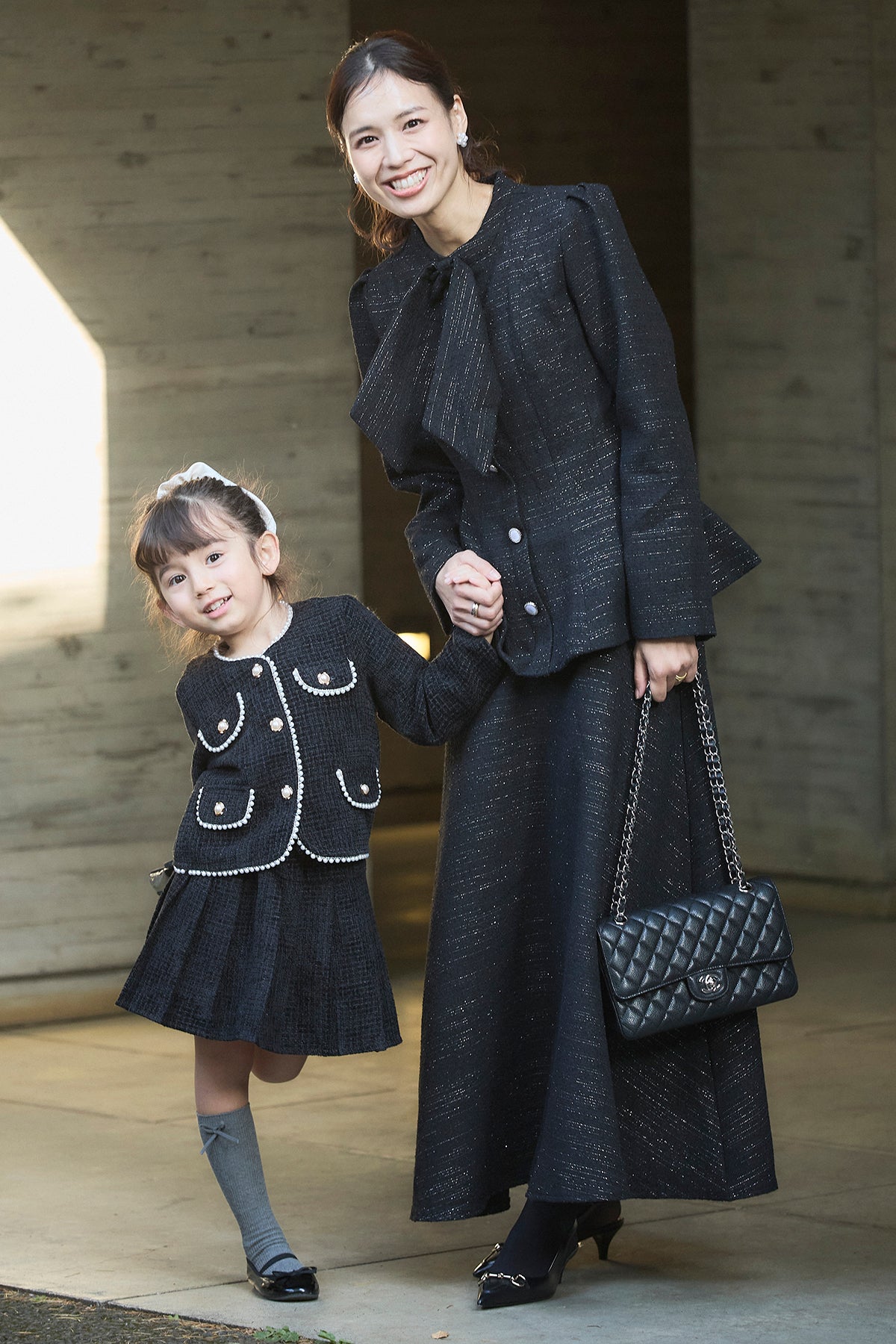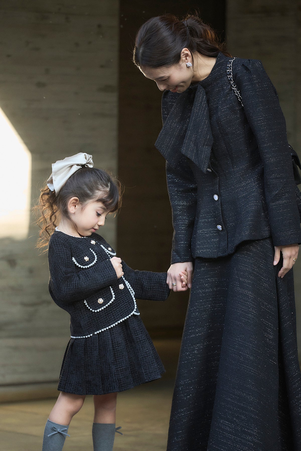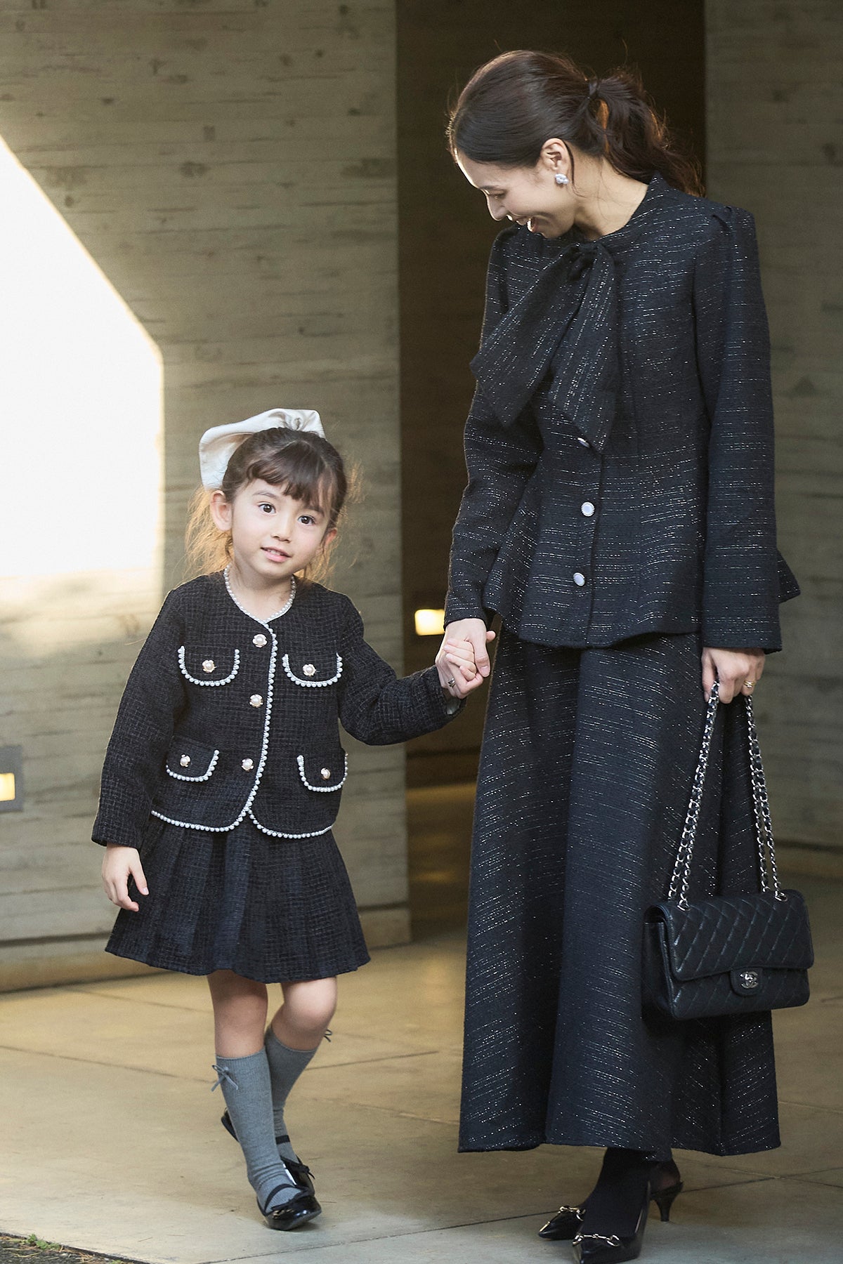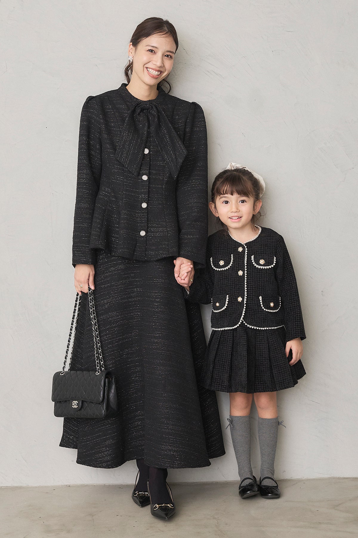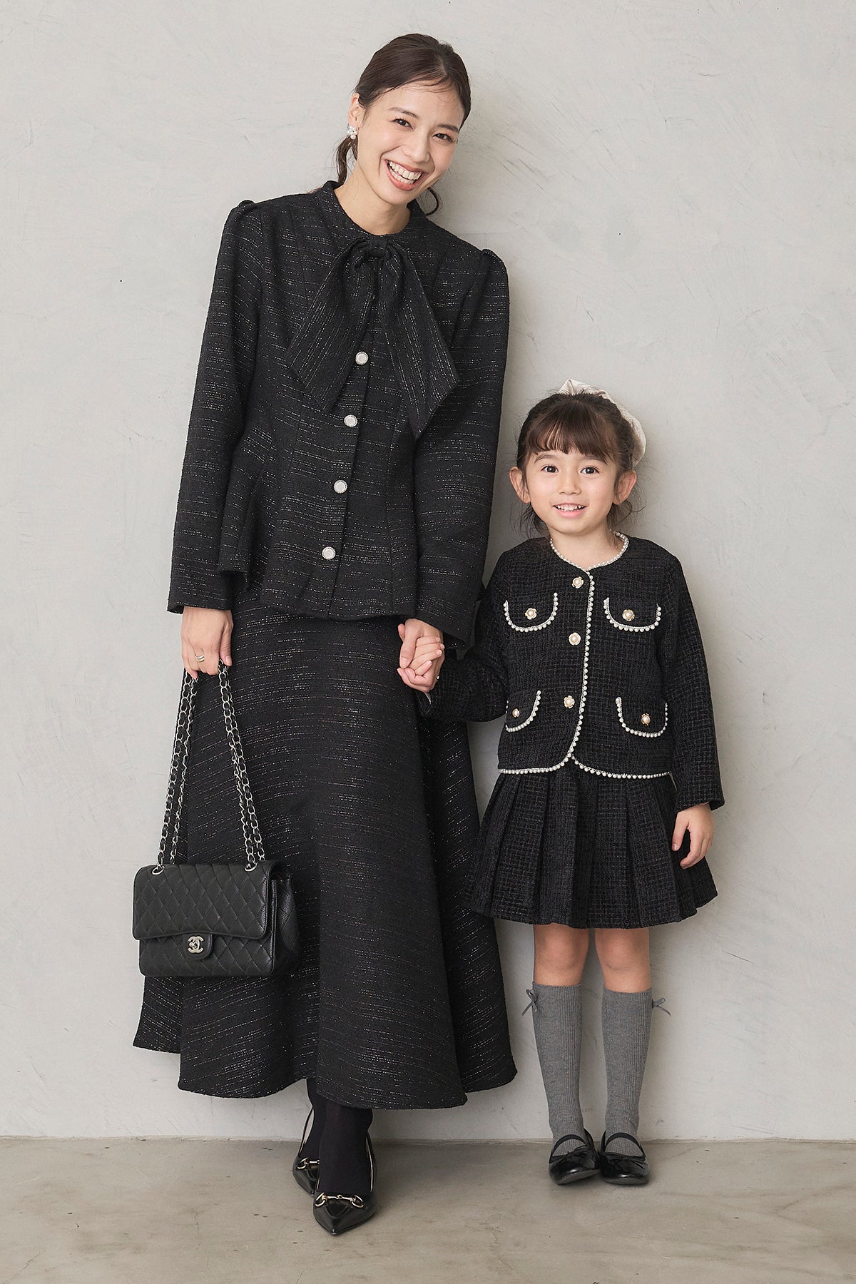 [予約/親子SET]プリンセスラインツイードジャケットセットアップ+[kids]パールツイードジャケット+プリーツスカートセット(2set)