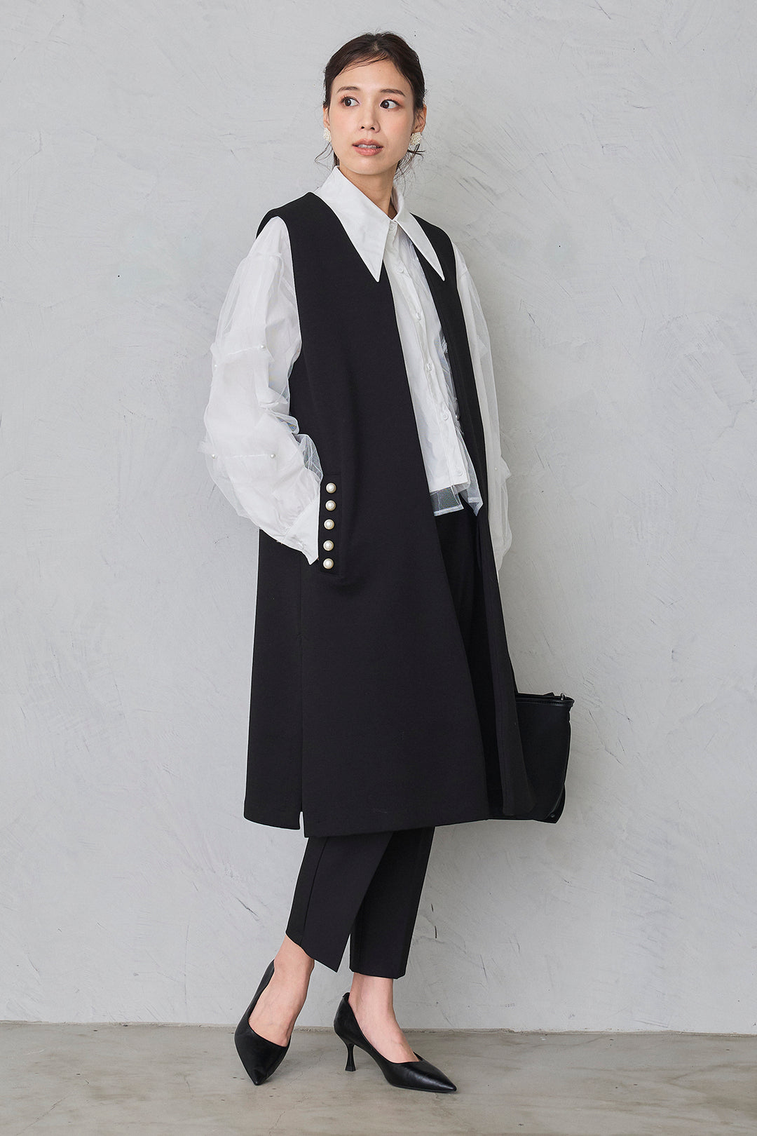 [予約/SET]チュールレイヤードパールシャツ+ポケットパール付きボンディングロングベスト+タックテーパードパンツ(3set)