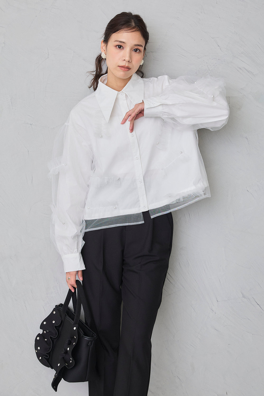 [予約/SET]チュールレイヤードパールシャツ+タックテーパードパンツ(2set)