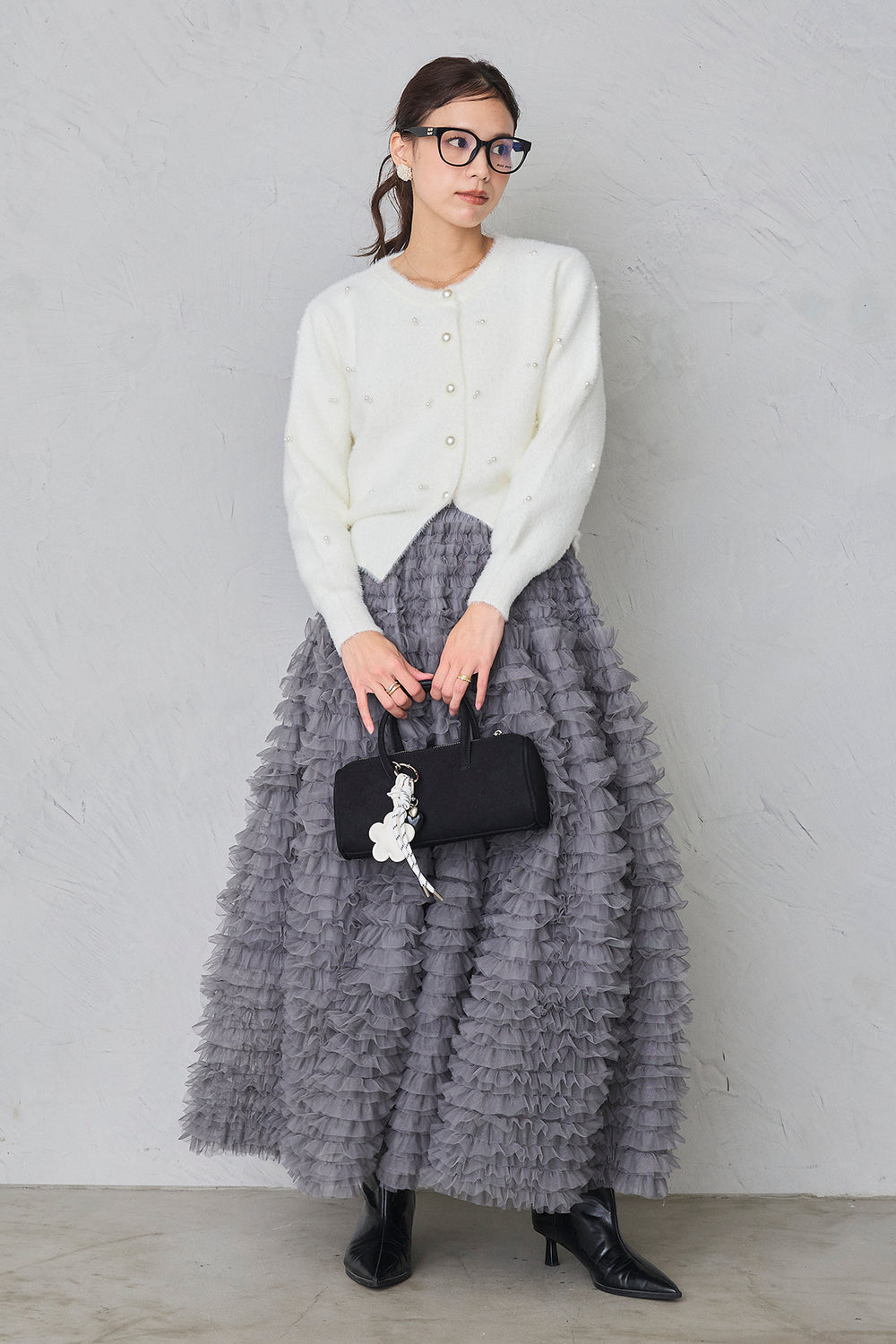 [予約/SET]ミックスパールシャギーコーディガン+ホイップチュールティアードスカート(2set)