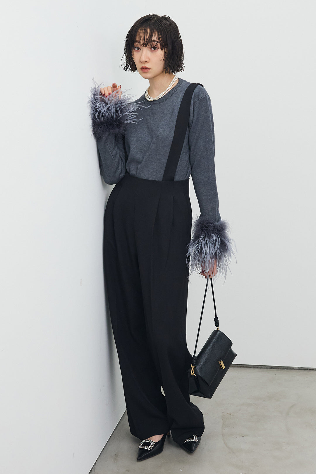 [予約/SET]ボリュームスリーブボックスプリーツブラウス+タックテーパードパンツ(2set)