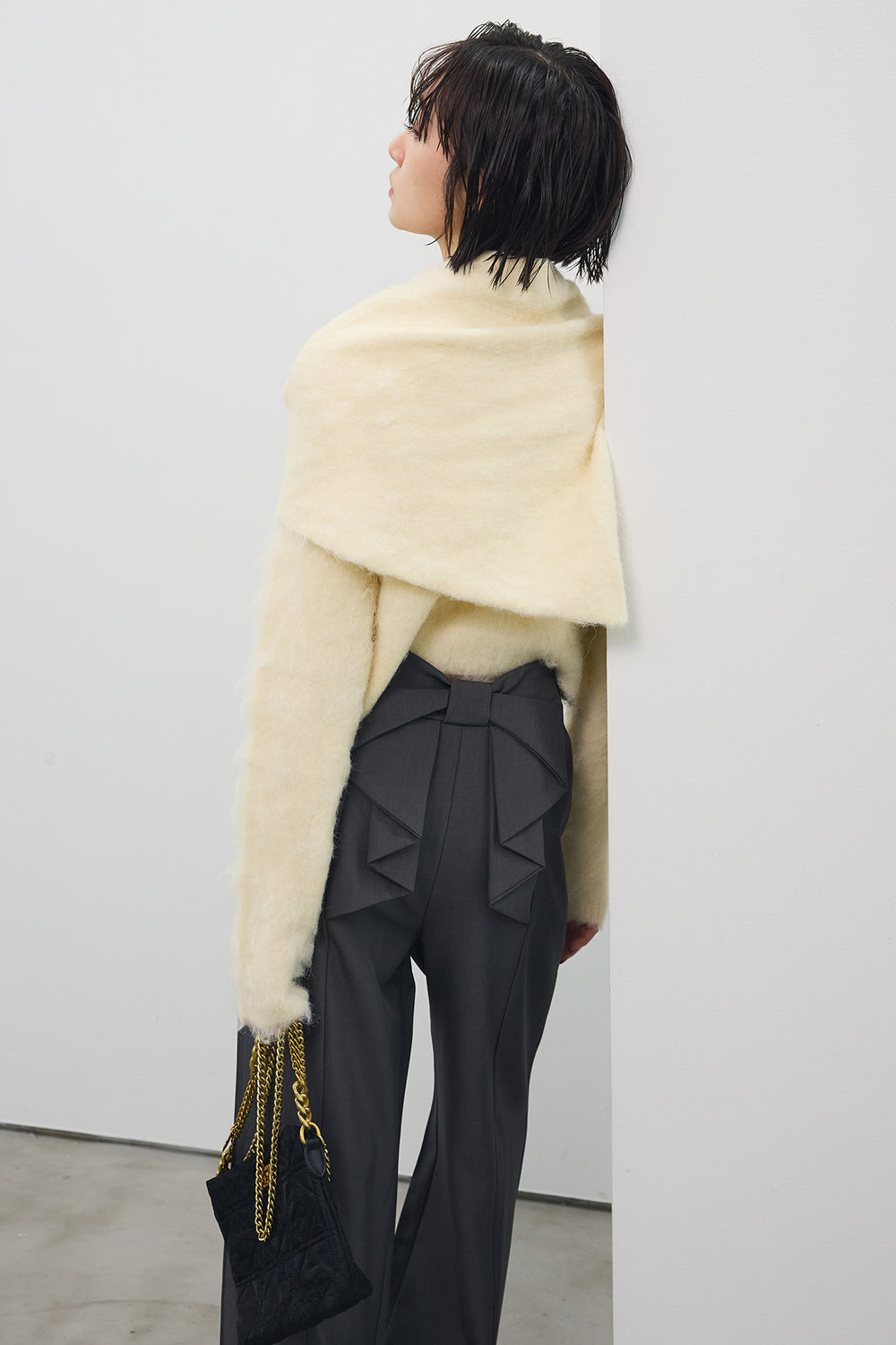 ・お手入れ方法:手洗いの場合は水温30℃以下をお薦めします。裏返してネットに入れ手洗いコースで洗濯※タンブラー乾燥は控え、色物とは分けてください 色落ち・色移りを防ぐため、必ず単独で洗ってください。濡れたままの状態で擦れると、色落ち色移りすることがあります。つけ置き洗いや雨や汗で濡れたまま放置は避け、速やかに処理してください。着用中の摩擦や汗、水濡れ、濃淡差があるものとの重ね着にご注意ください。