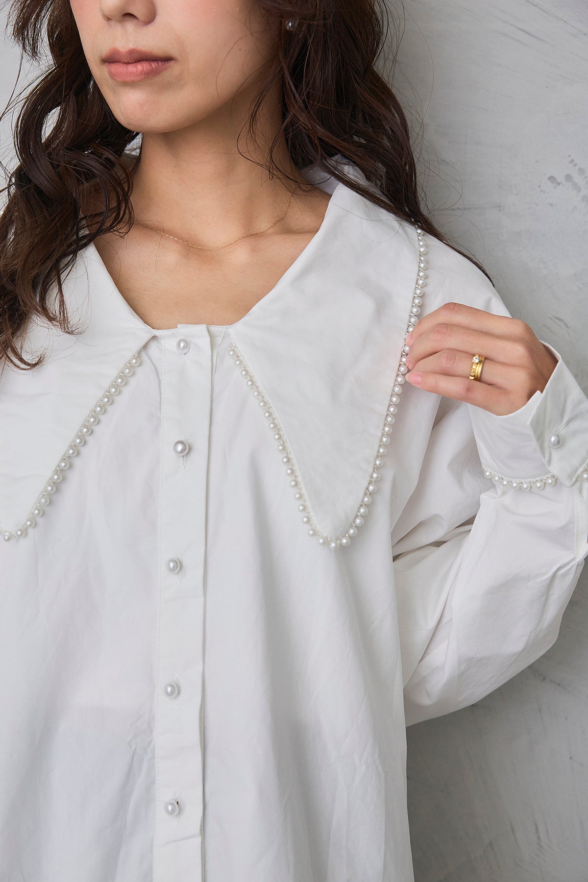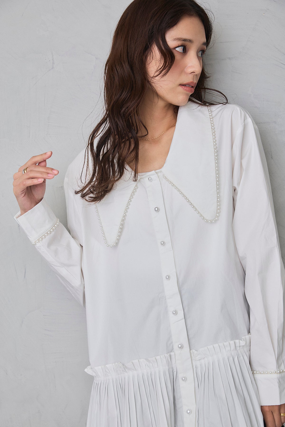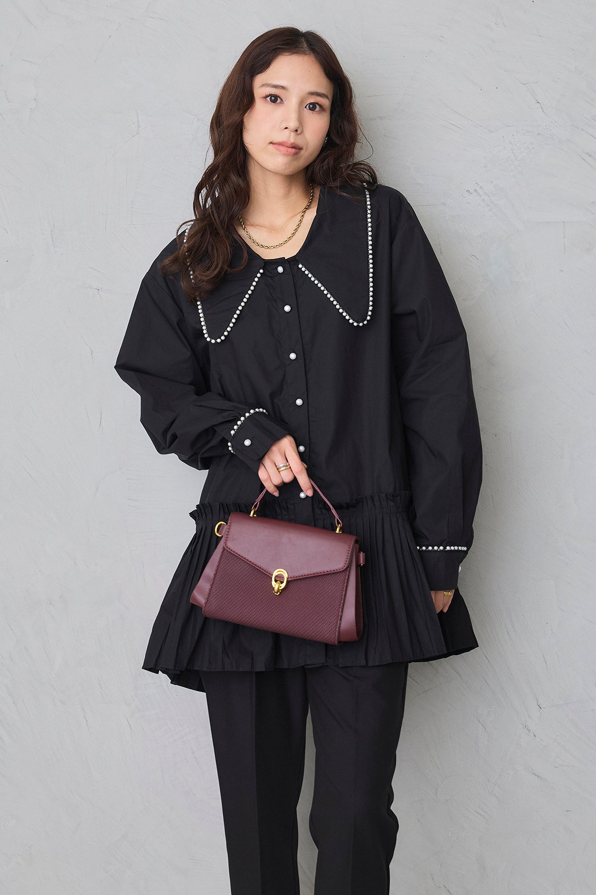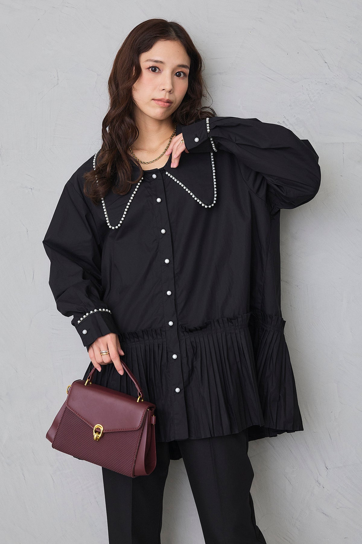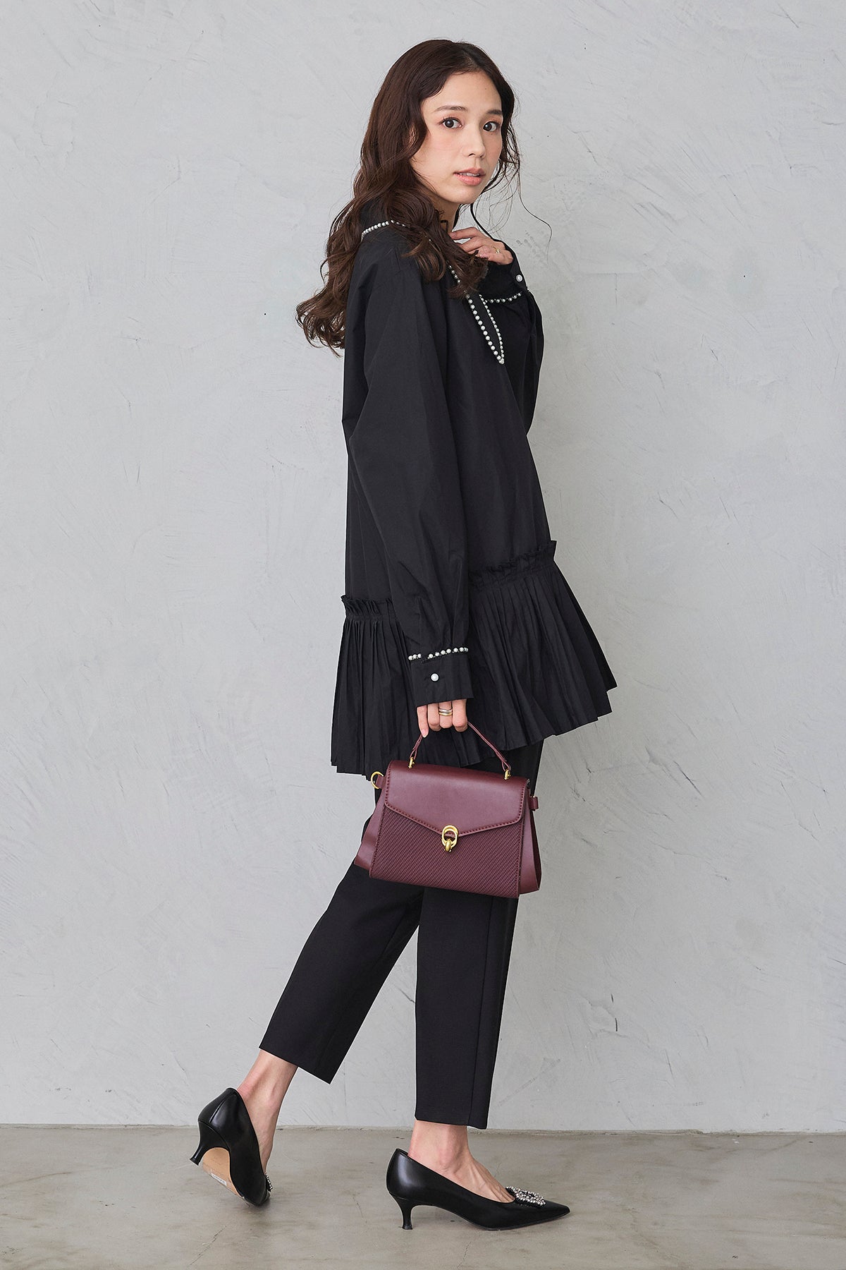 [予約/SET]パールライン襟×プリーツシャツ+タックテーパードパンツ(2set)