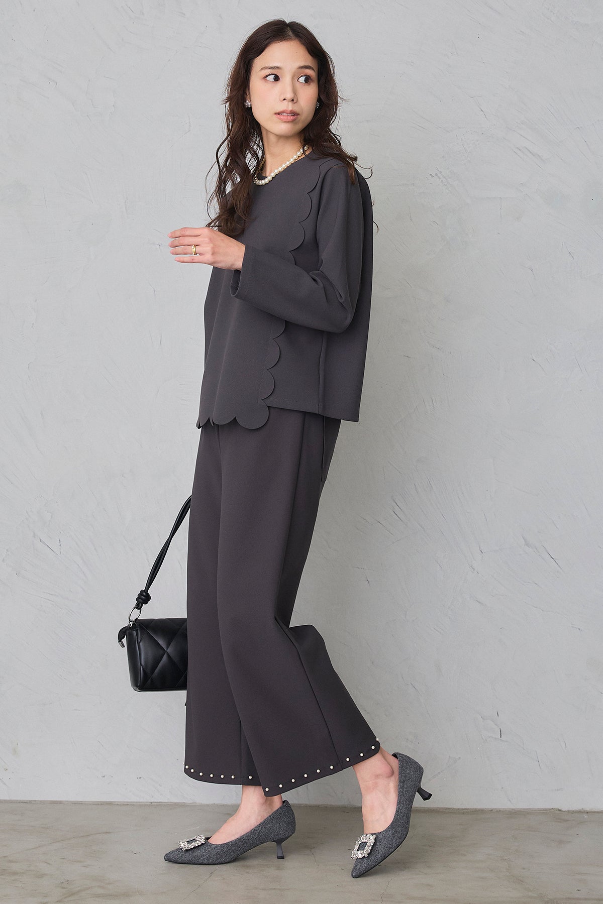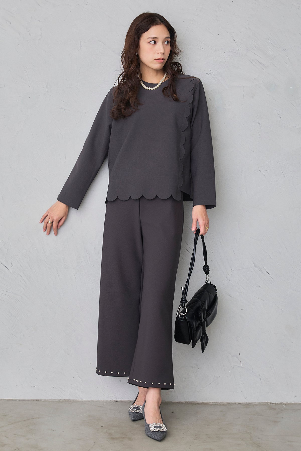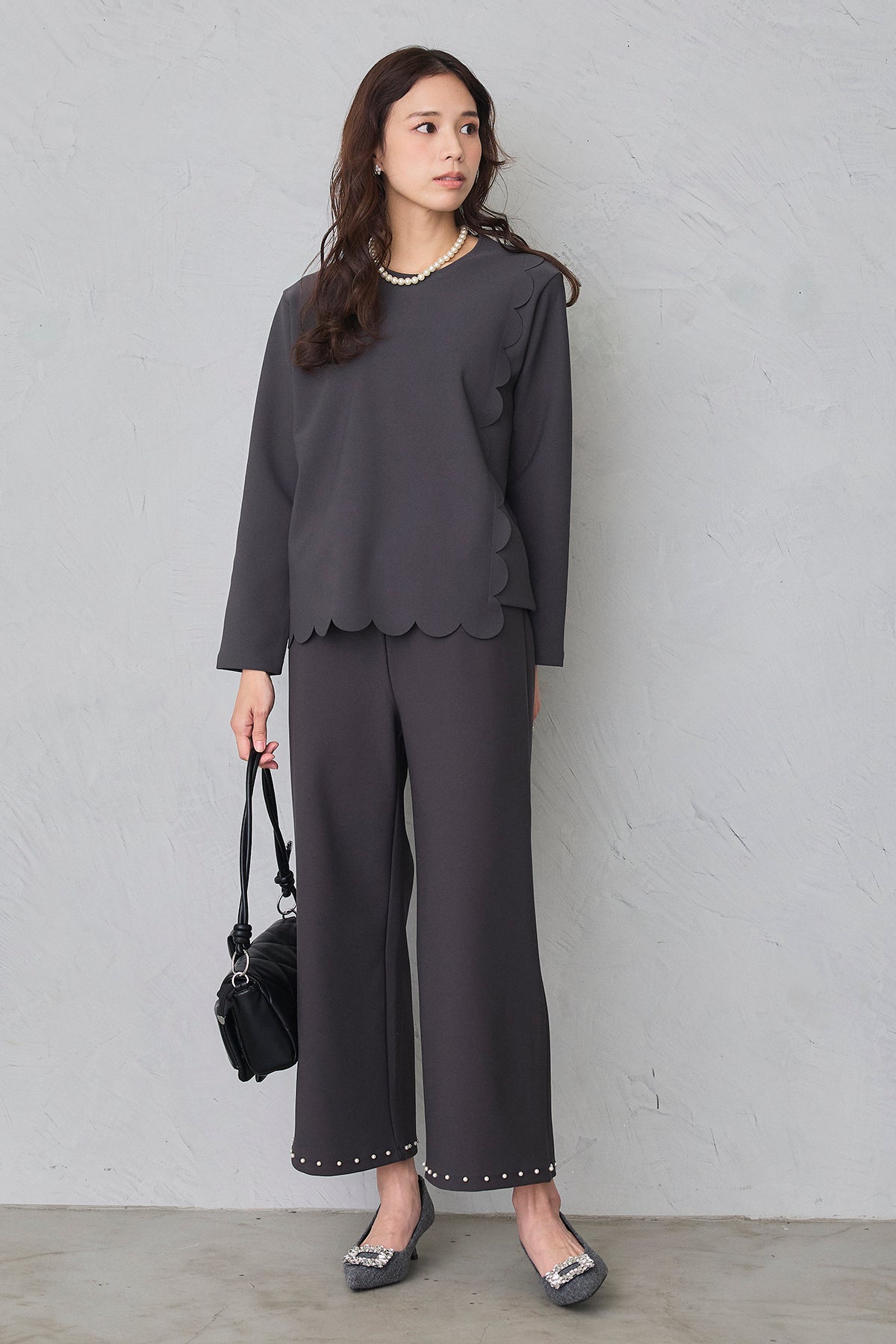 [予約/SET]アシメスカラップポンチプルオーバー+パールヘムポンチストレートパンツ(2set)
