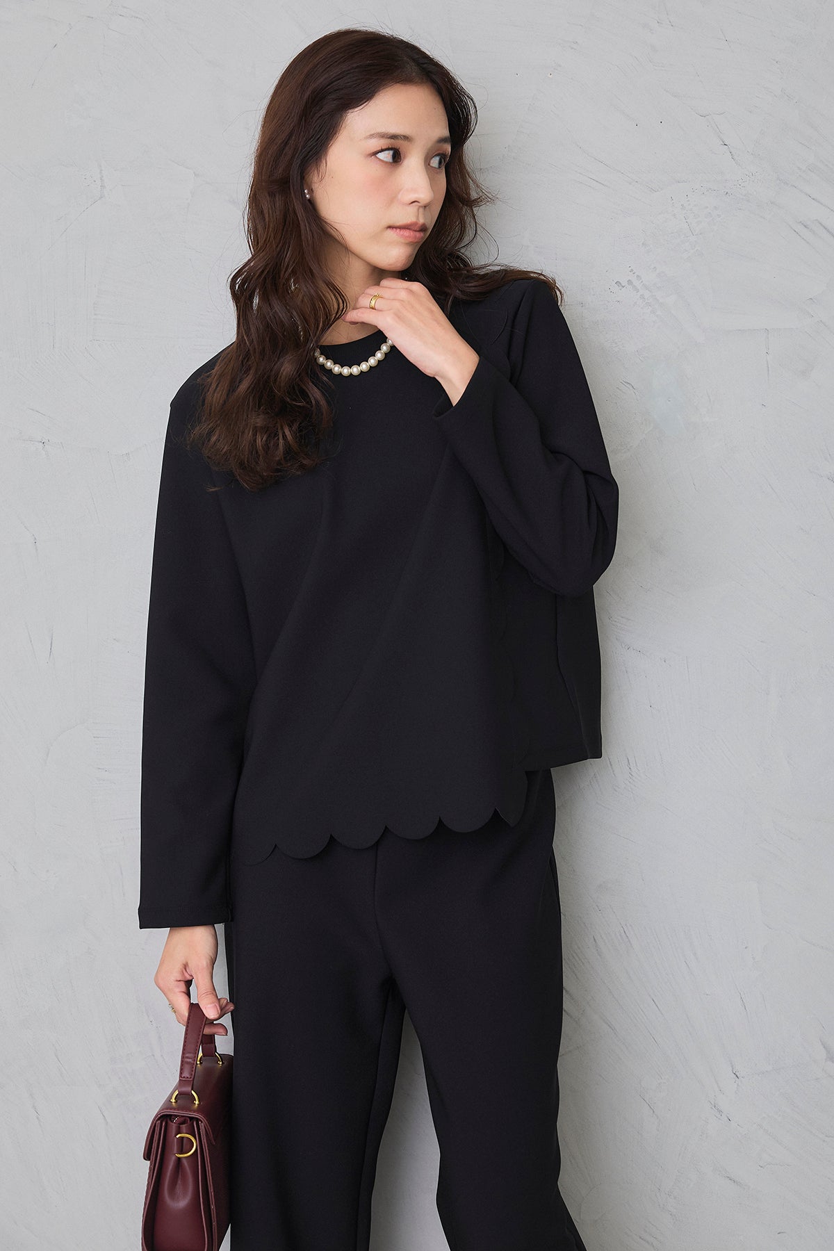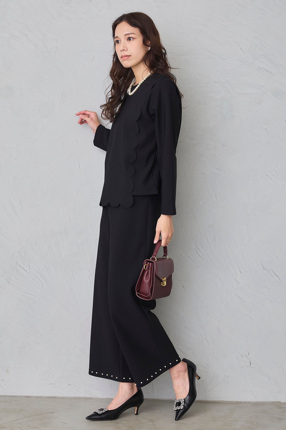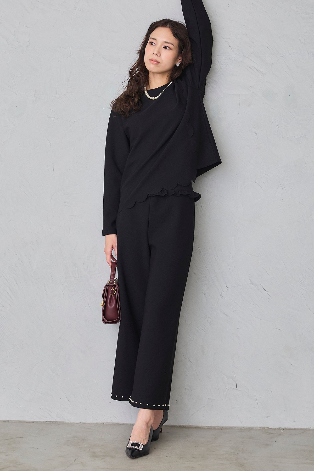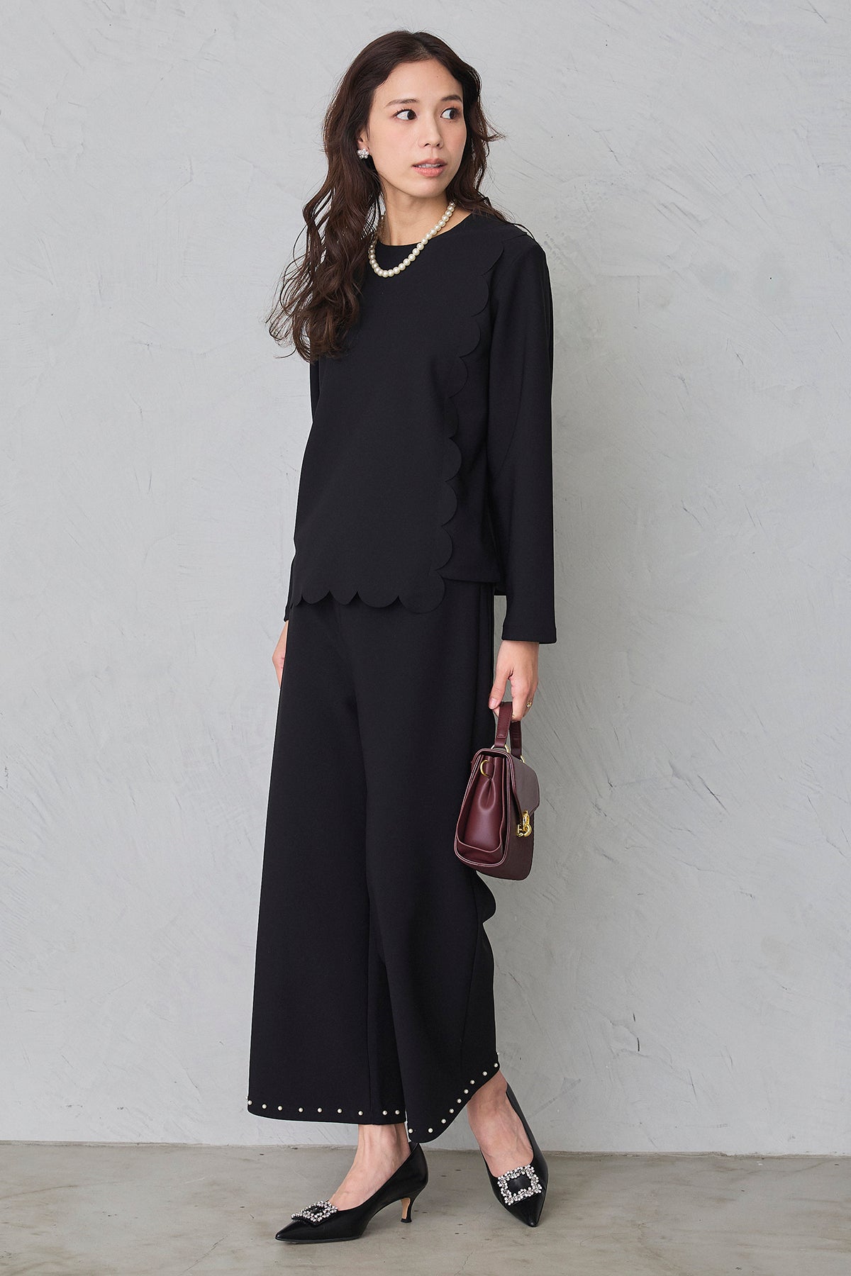 [予約/SET]アシメスカラップポンチプルオーバー+パールヘムポンチストレートパンツ(2set)