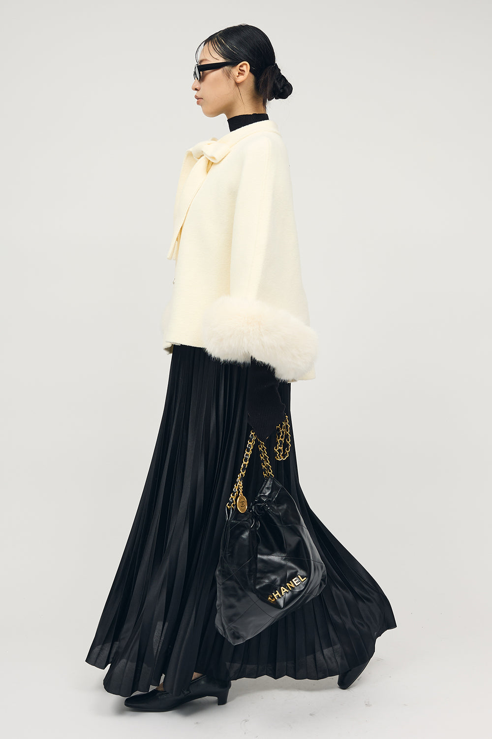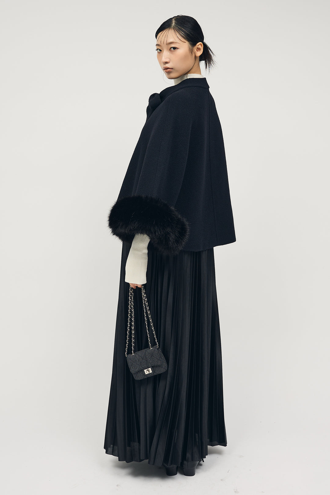 [予約/SET]ファーカフスリボンポンチョコート+シャイニープリーツサテンスカート(2set)