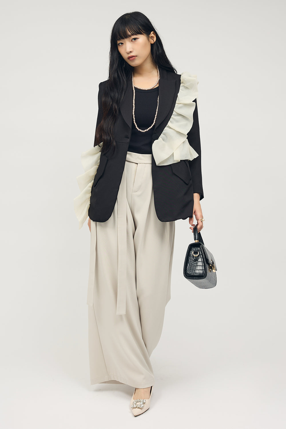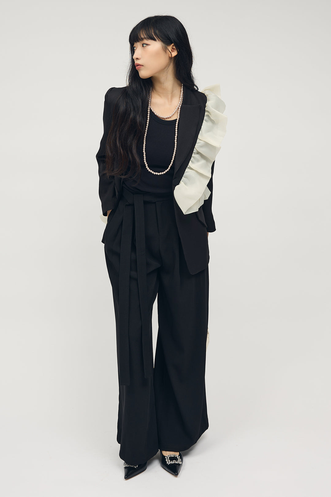 [予約/SET]アシメフリルマニッシュジャケット+ワイドシルエットハイウエストベルトパンツ(2set)