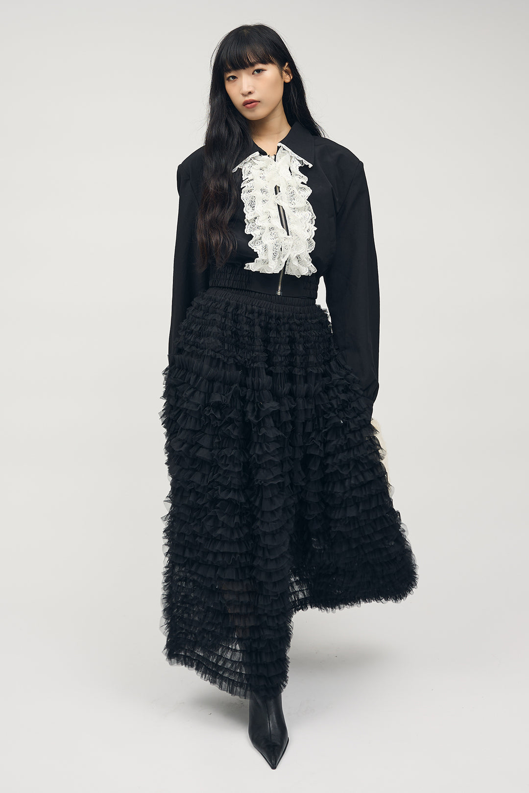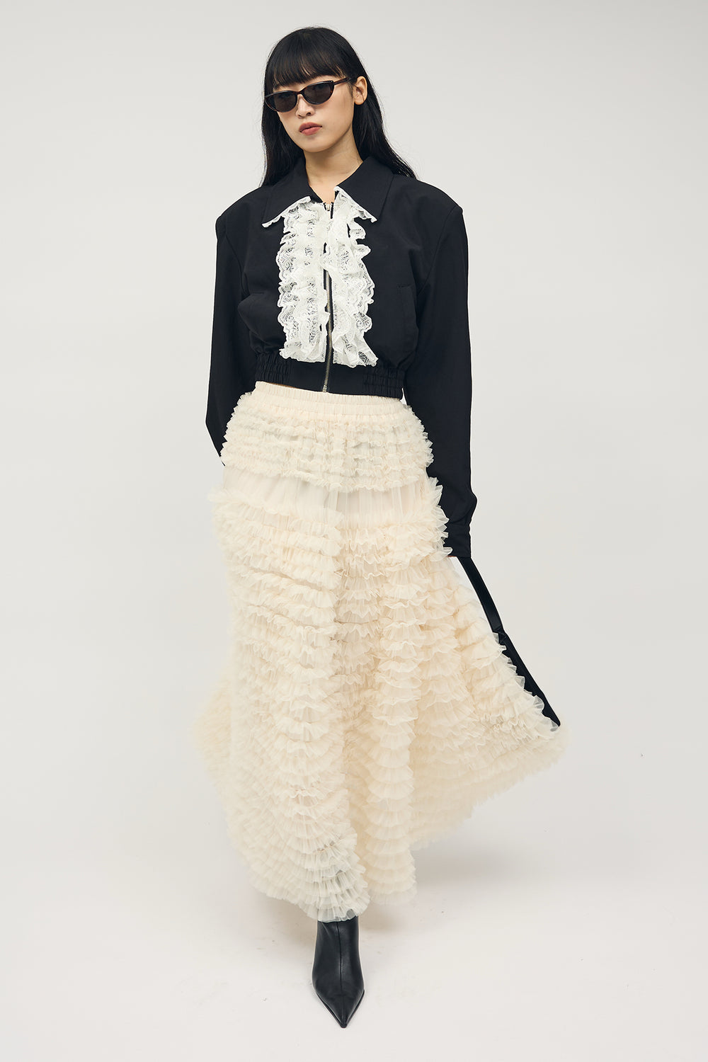 [予約/SET]フロントレースフリルブルゾン+ホイップチュールティアードスカート(2set)