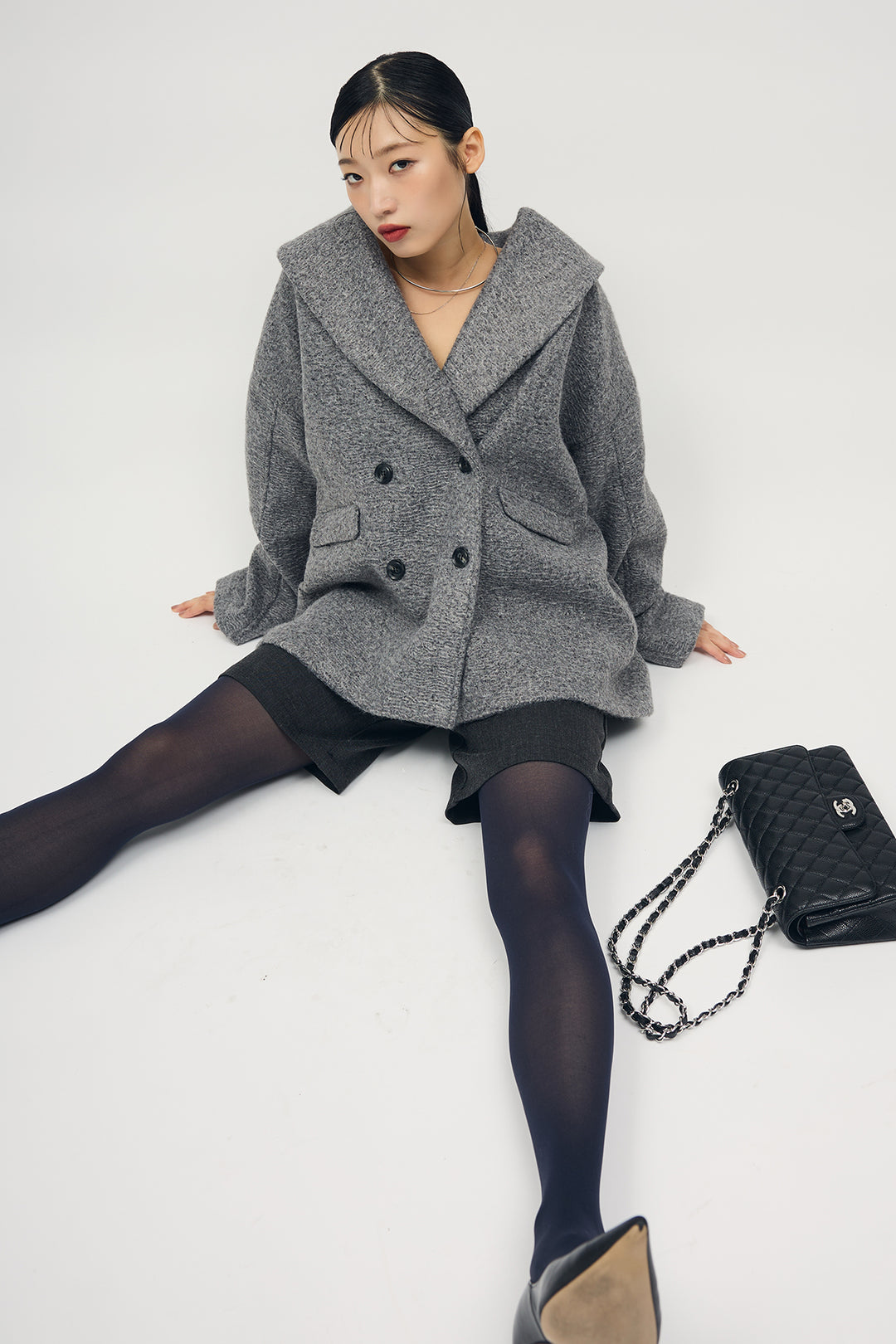 [予約/SET]ショールカラーカールシャギーコート+ウールタッチセンタープレスハーフパンツ(2set)