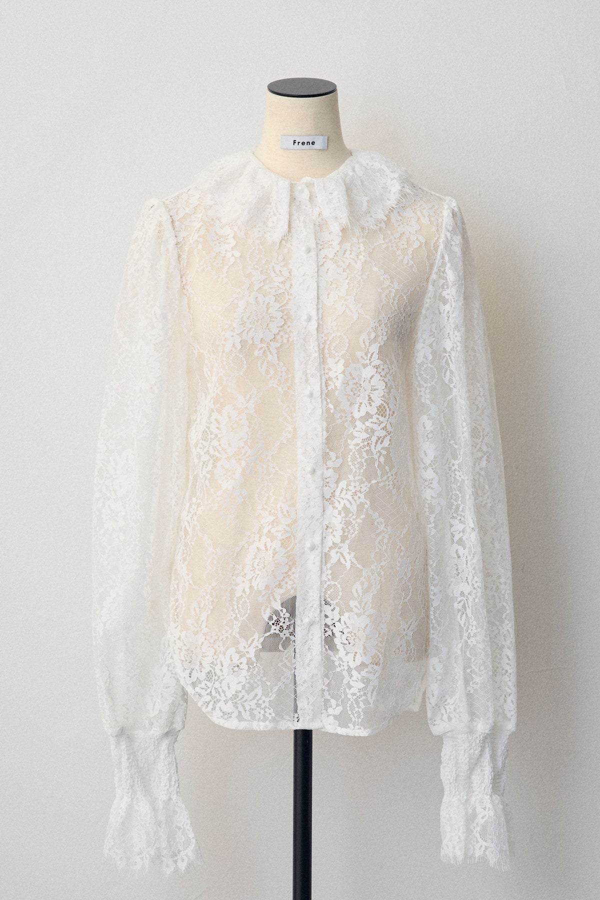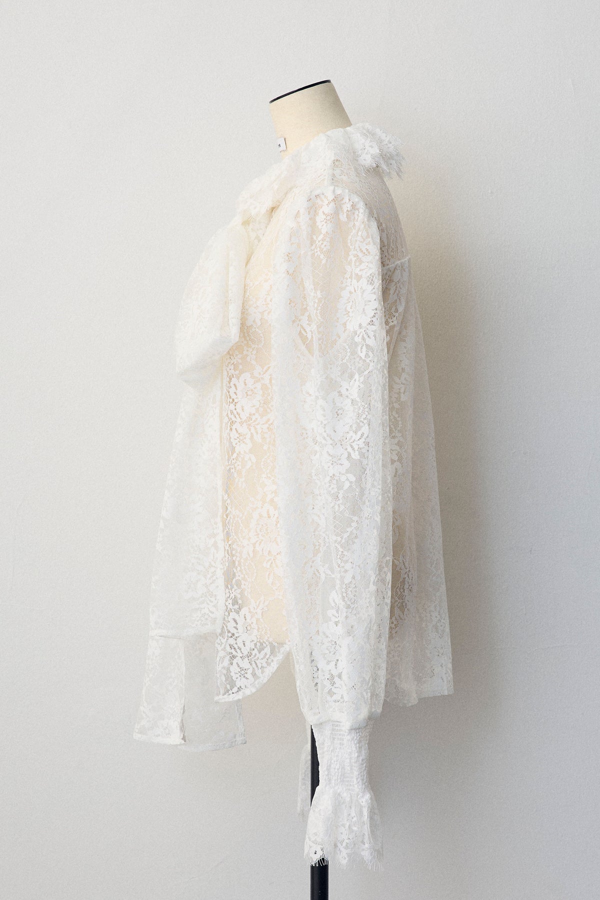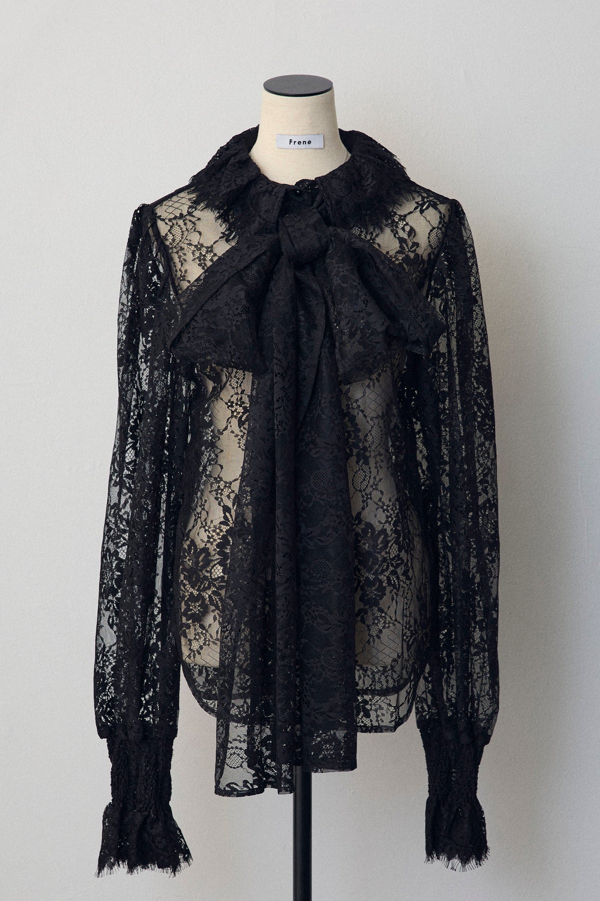 繊細なレースが華やかな印象を与えるクラシカルなブラウス。 大きめのボウタイが顔まわりを上品に彩り、襟と袖口のフリルがさらに女性らしさを添えます。 リボンをつけても可愛く、つけなくても首元のフリルが映える2wayデザイン。ニットやベストとのレイヤードにもおすすめです。