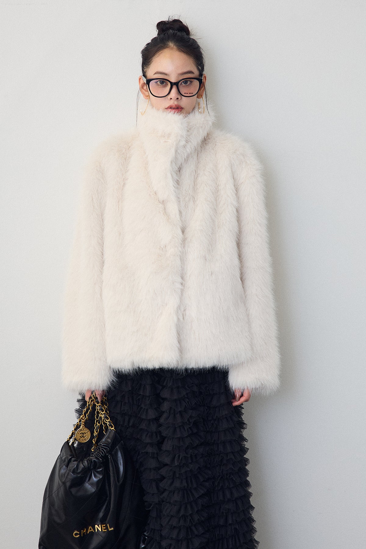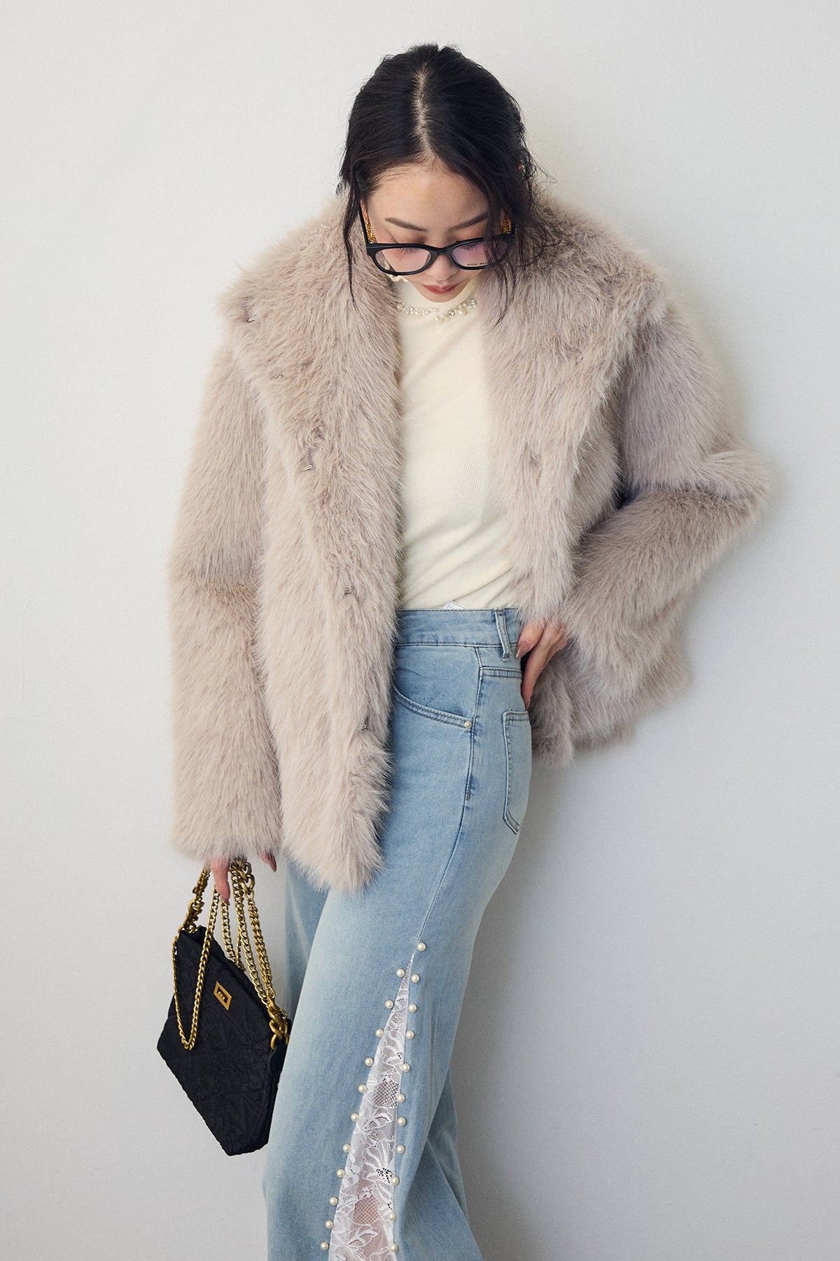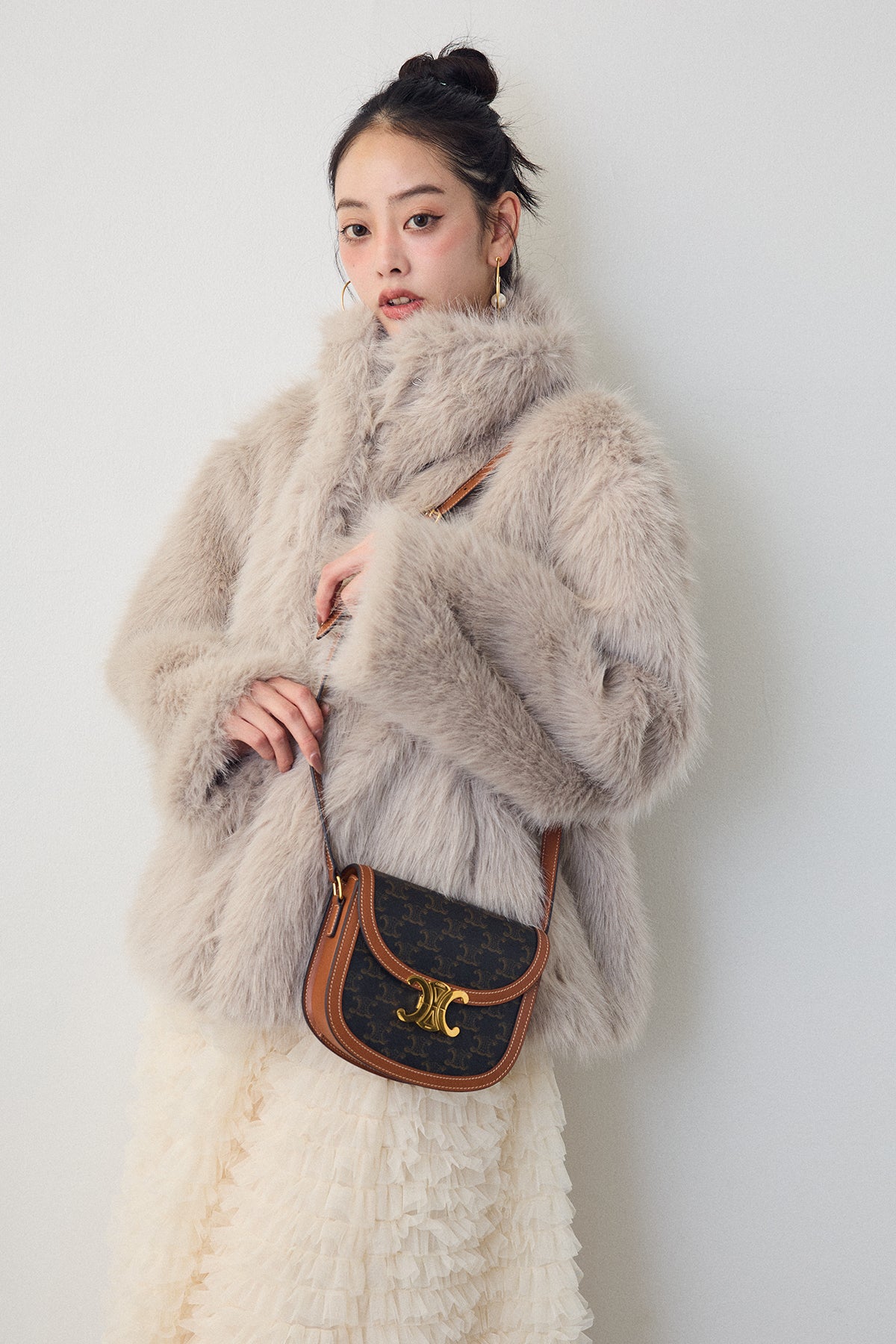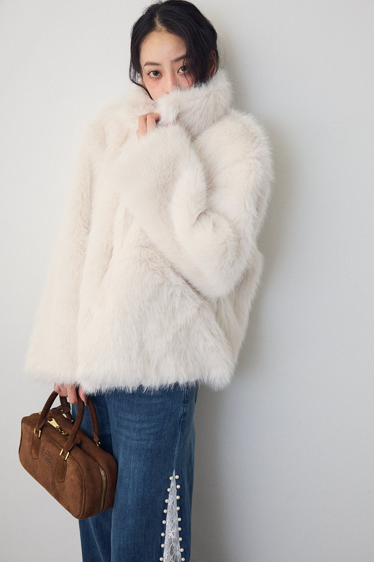 ふんわりとした毛足が魅力のフェイクファーコート。 襟を寝かせて抜け感のある着こなしにも、フックを閉めて上品な印象にもアレンジ可能です。 柔らかなニュアンスカラーが大人フェミニンなムードを漂わせ、羽織るだけで華やかなスタイリングに。 デニム合わせでカジュアルにも、ドレスと合わせて特別な日にも活躍する一枚です。