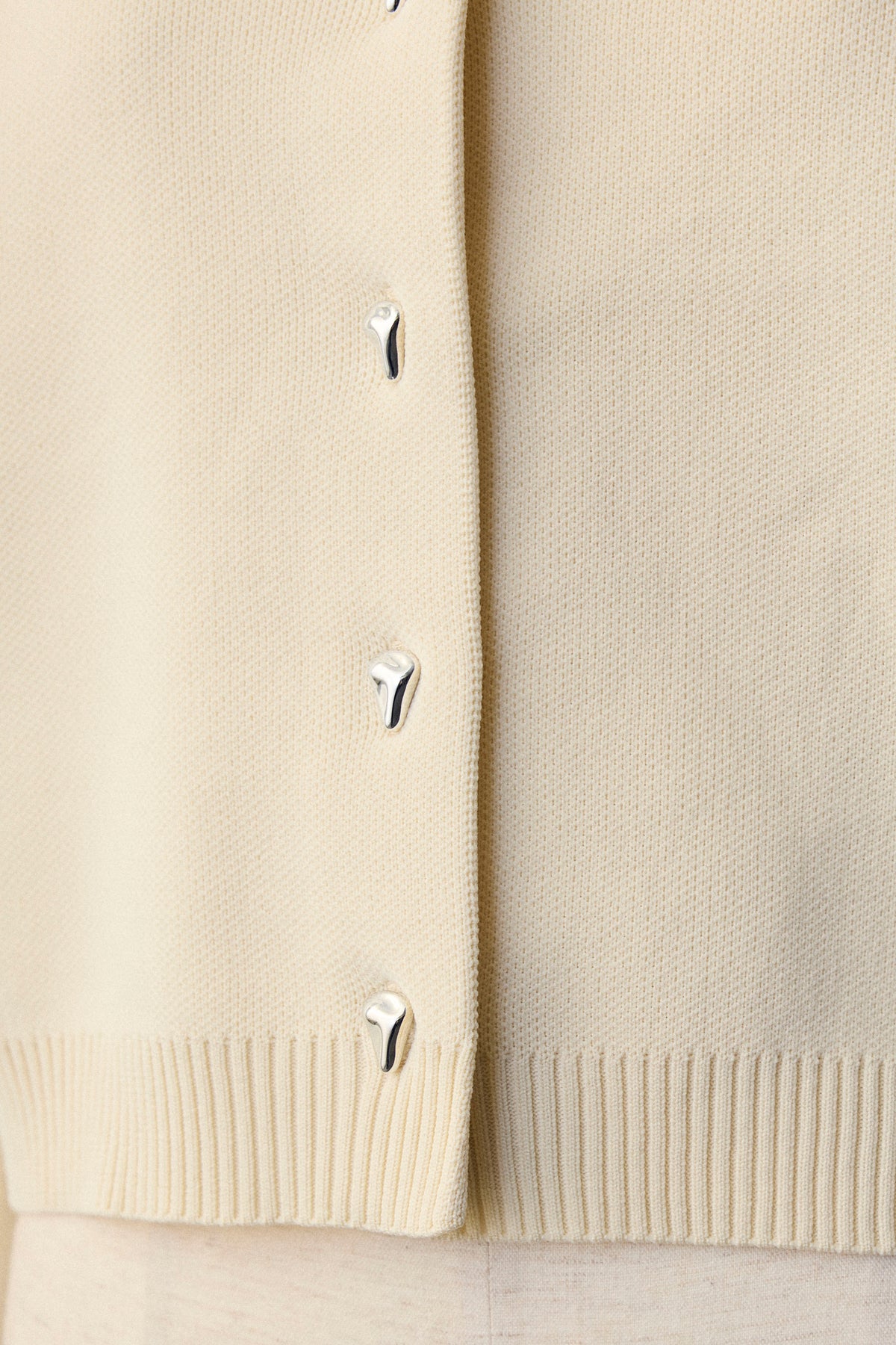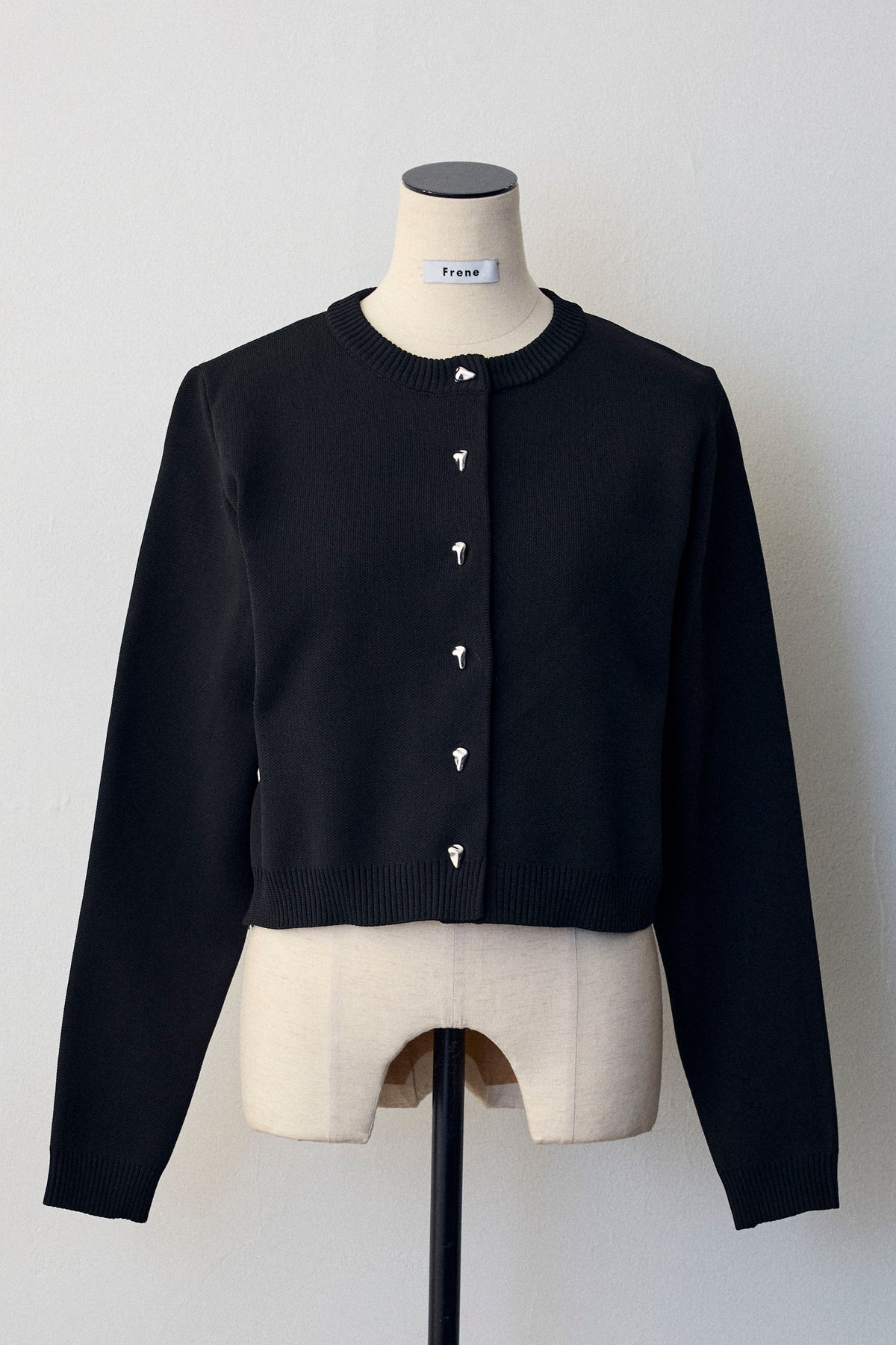 クラシカルな気品と、大人の愛らしさが引き立つメタルボタンベーシックカーディガン。 フロントに並ぶジュエリーのような変形メタルボタンが、洗練されたアクセントになり、シンプルな装いを華やかに見せます。 身頃はすっきりとしたコンパクトな着丈に仕上げているため、ウエスト位置が高く見え、脚長効果とスタイルアップを叶える美シルエットを実現。 ブラウスと重ねて裾からフリルを覗かせたり、ボタンを留めてプルオーバーとして着こなしたりとアレンジも自在で、オンオフ問わずワードローブに加えたい一着です。