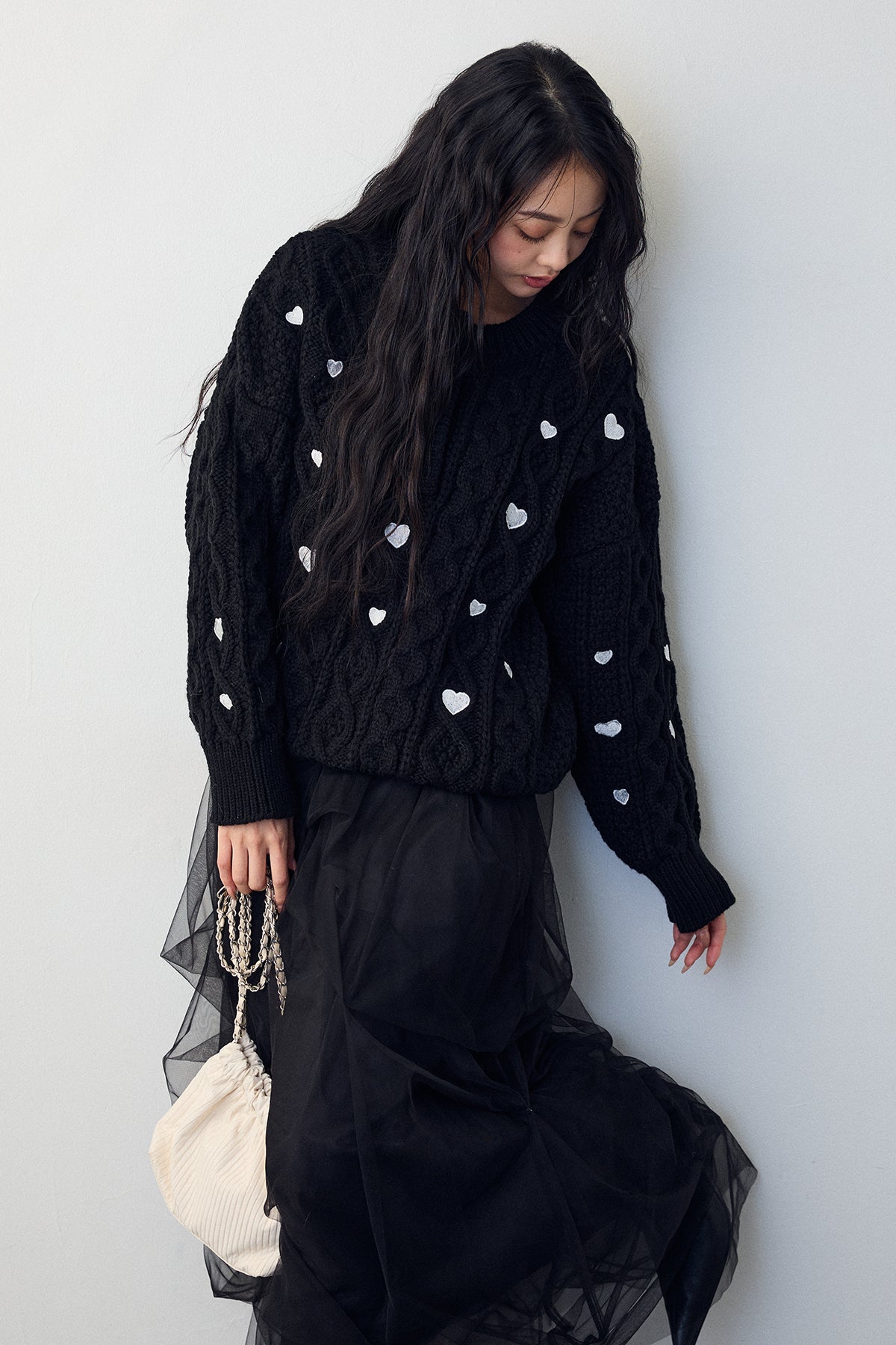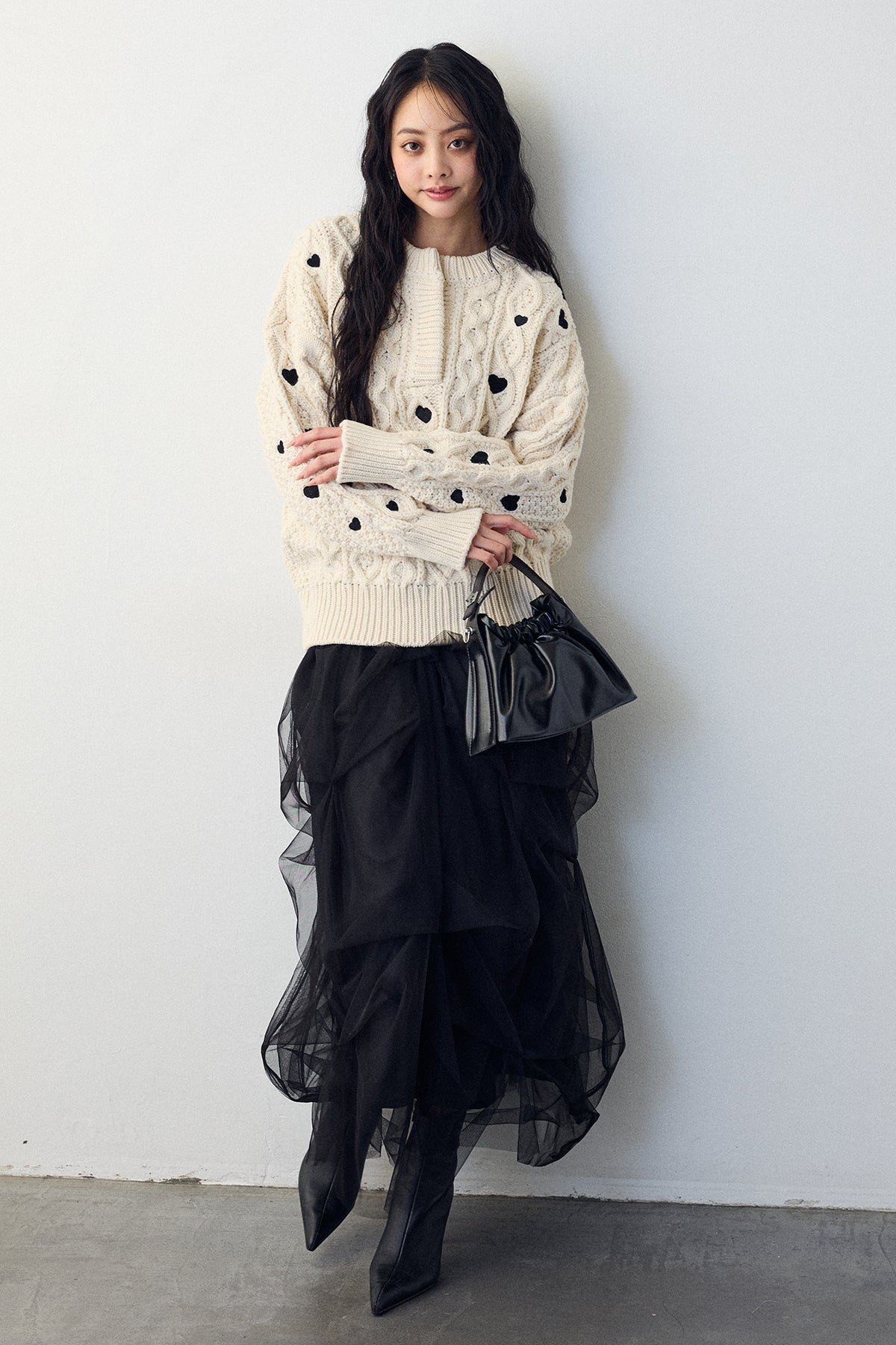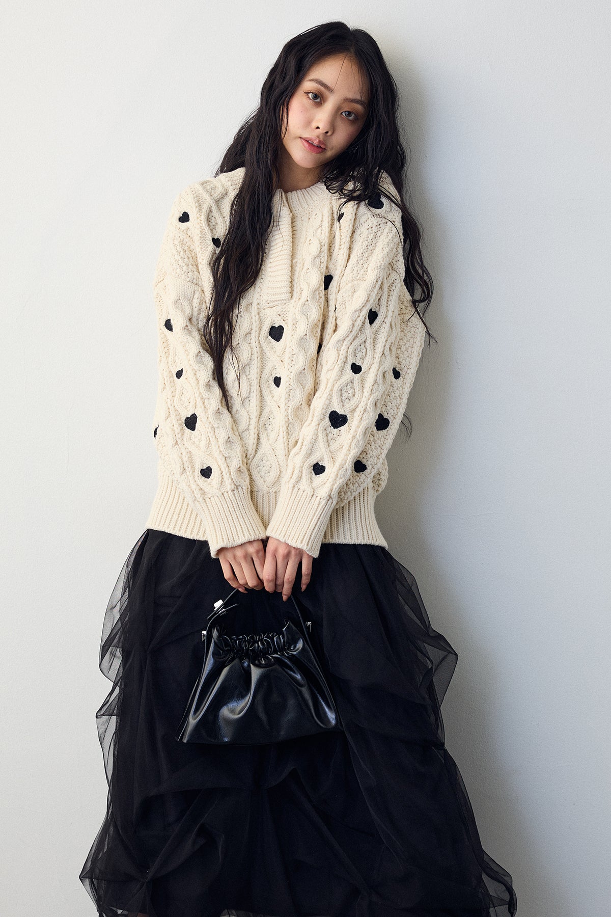 [予約]ハート刺繍ケーブルデザインニットを含んだコーデセット商品を探す↓