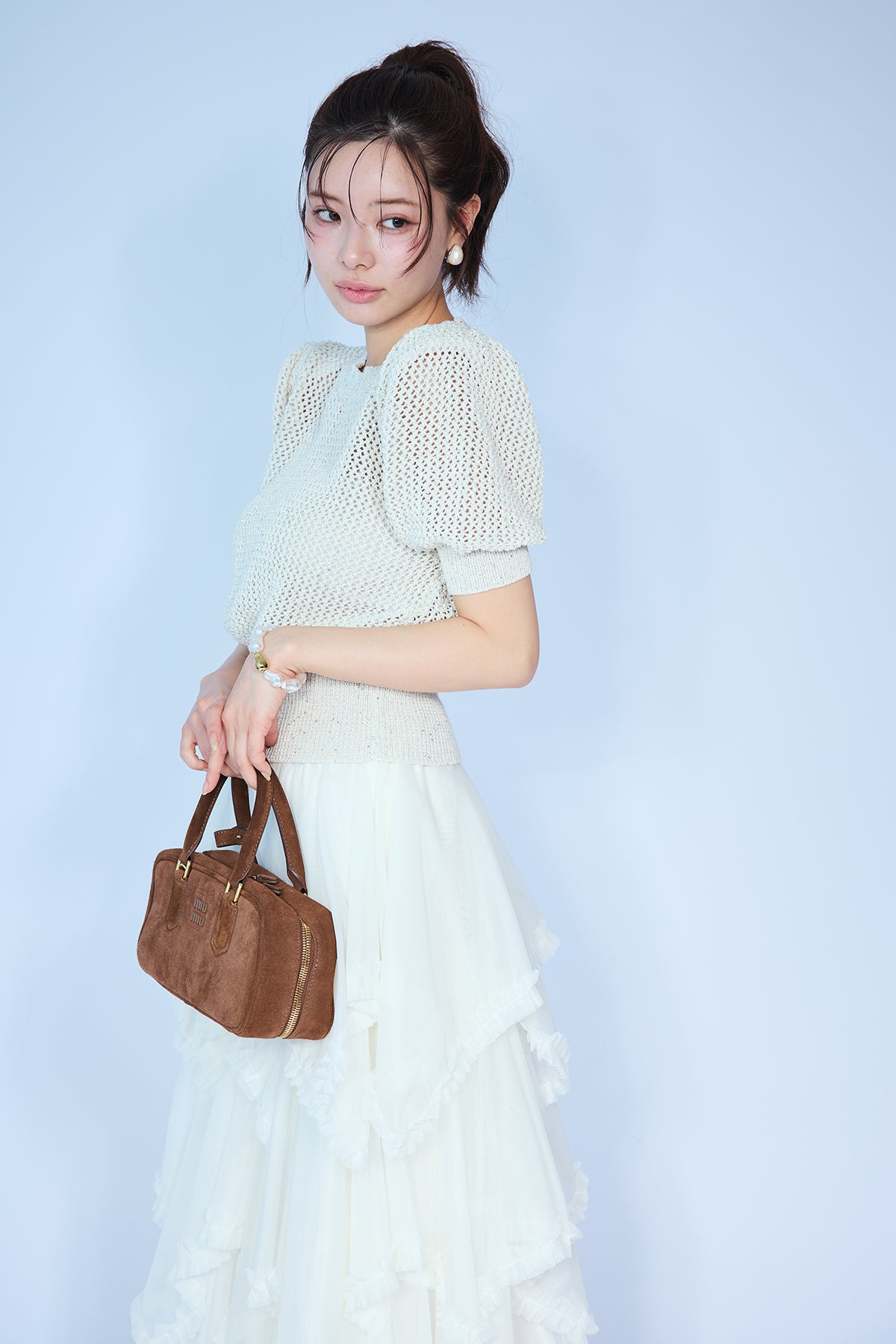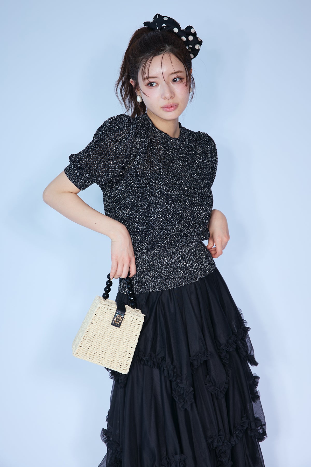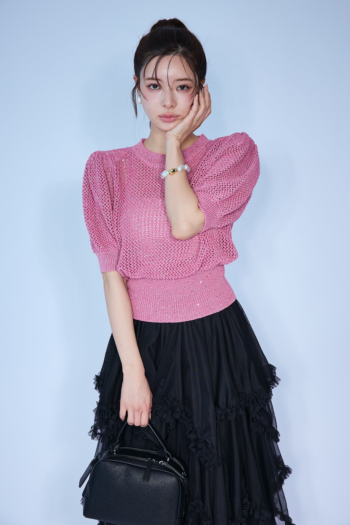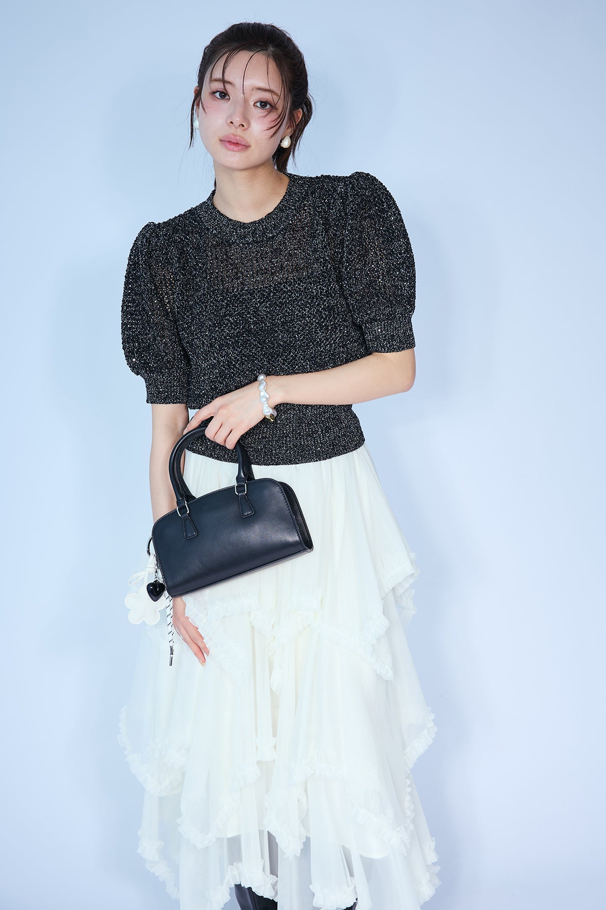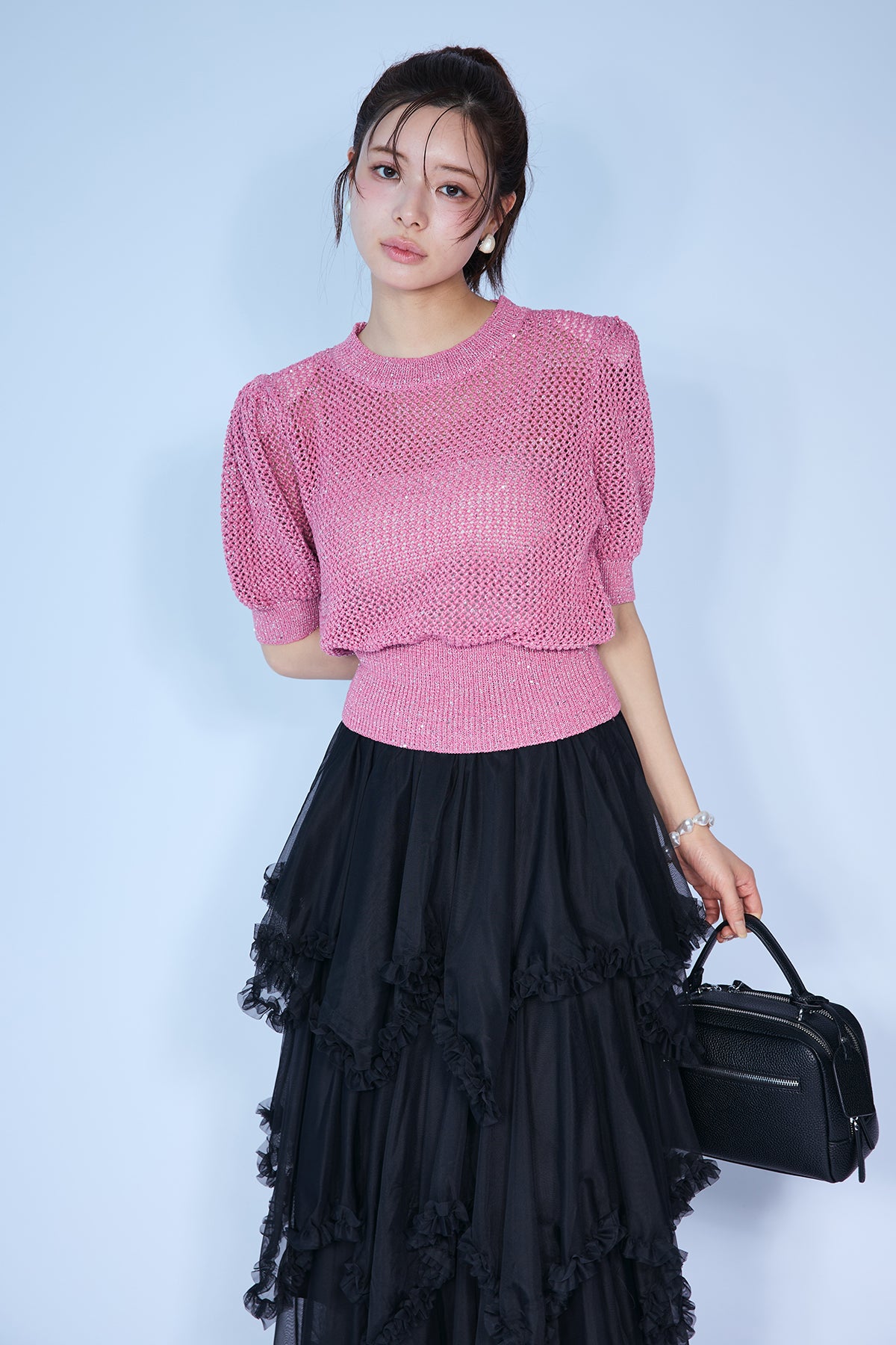 [予約]ラメ混パフスリーブハーフスリーブニットを含んだコーデセット商品を探す↓