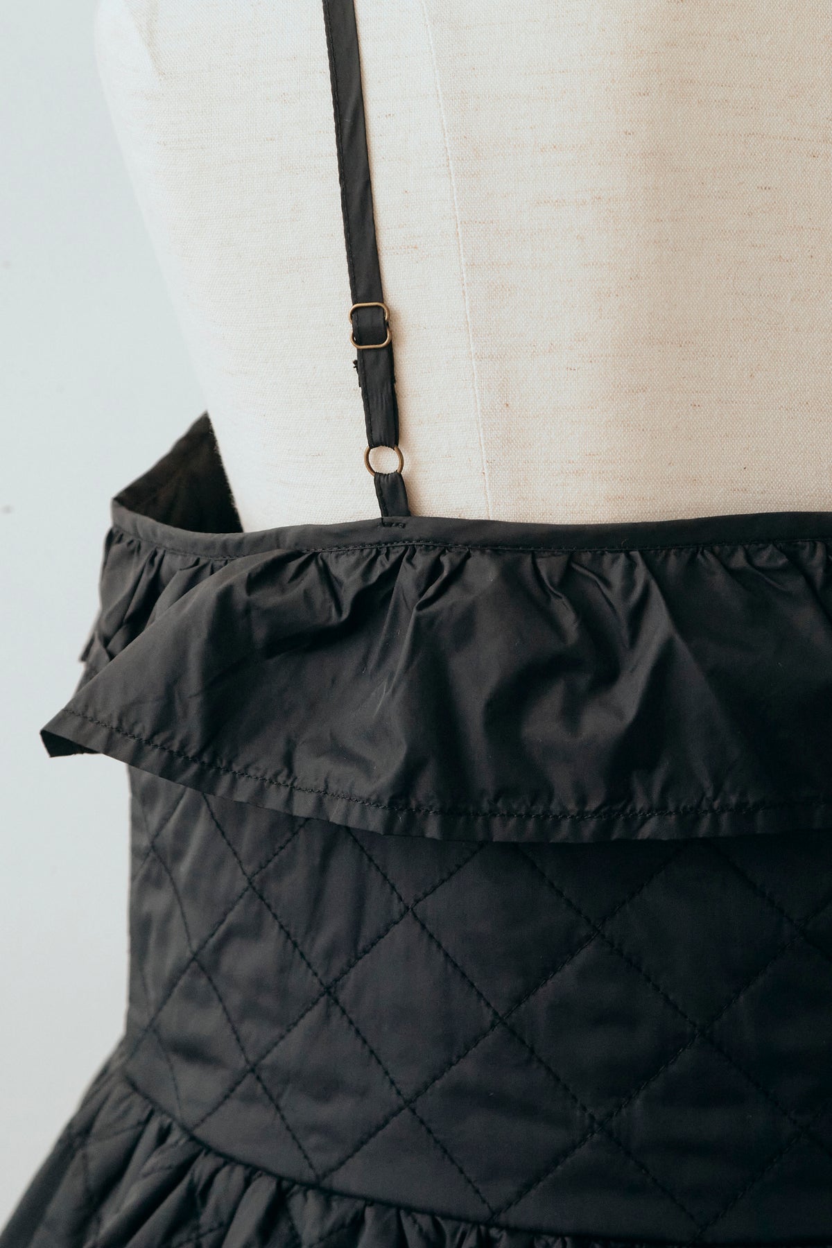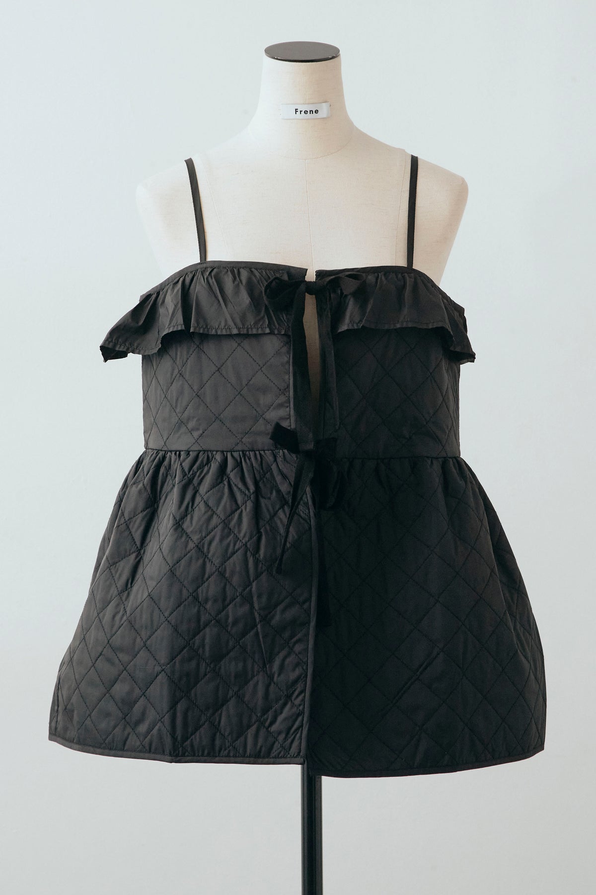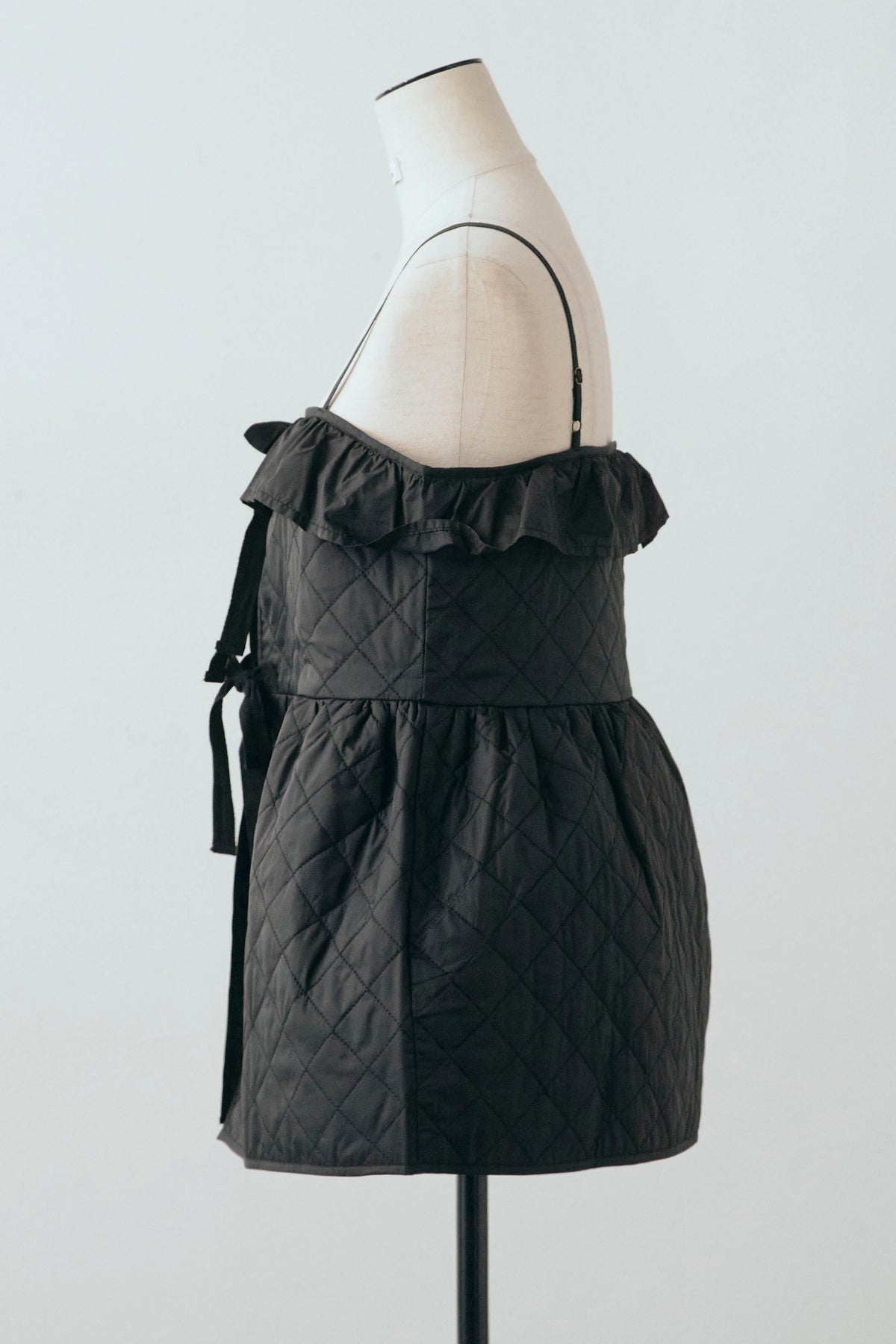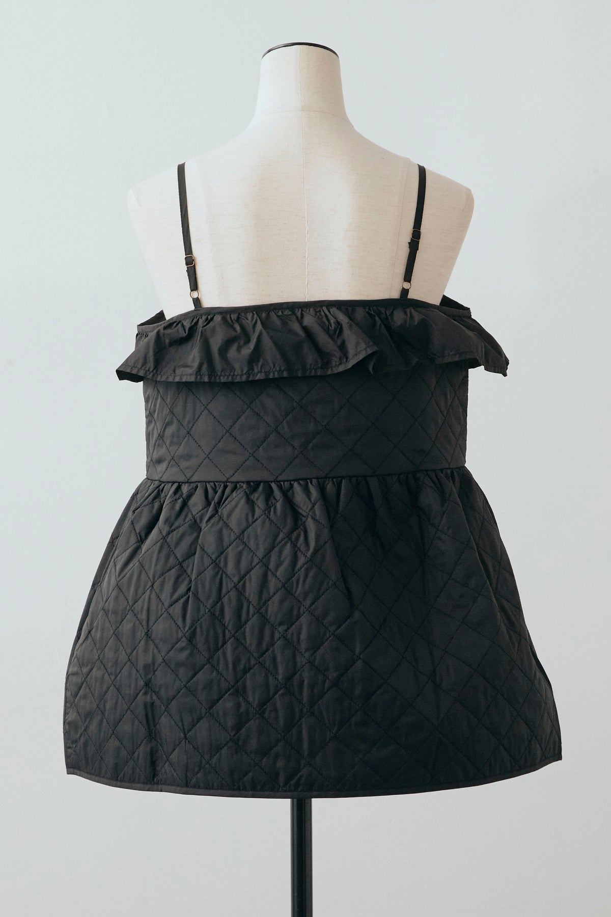 立体感のあるダイヤキルトが目を引く、キャミソールタイプのビスチェ。 程よいハリ感のある素材で、レイヤードした際もシルエットがきれいに保たれます。 肩紐は調整可能で、インナーやトップスに合わせたバランス調整がしやすい仕様。 シンプルなアイテムに重ねるだけで、スタイリングに奥行きを加えられる一着です。