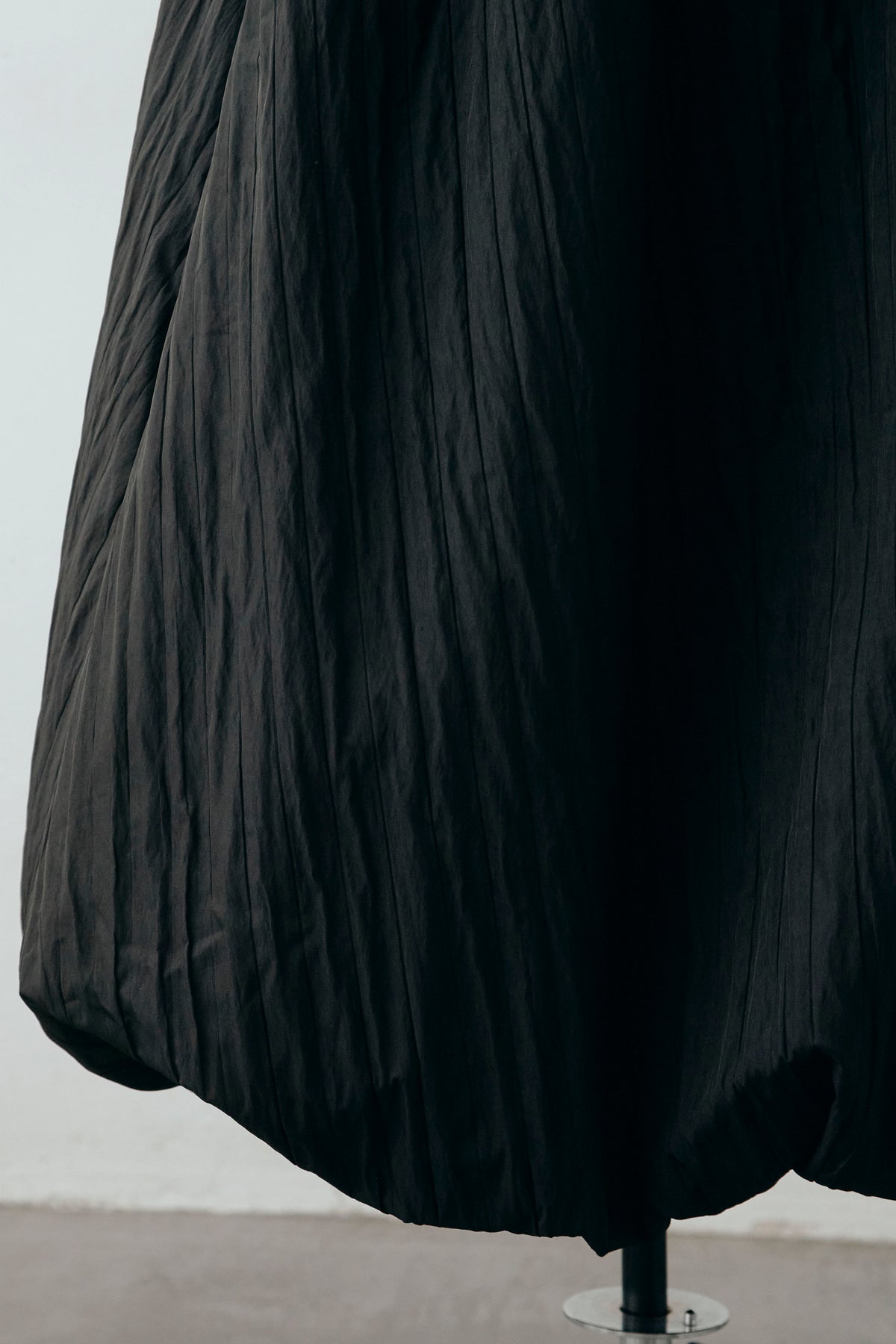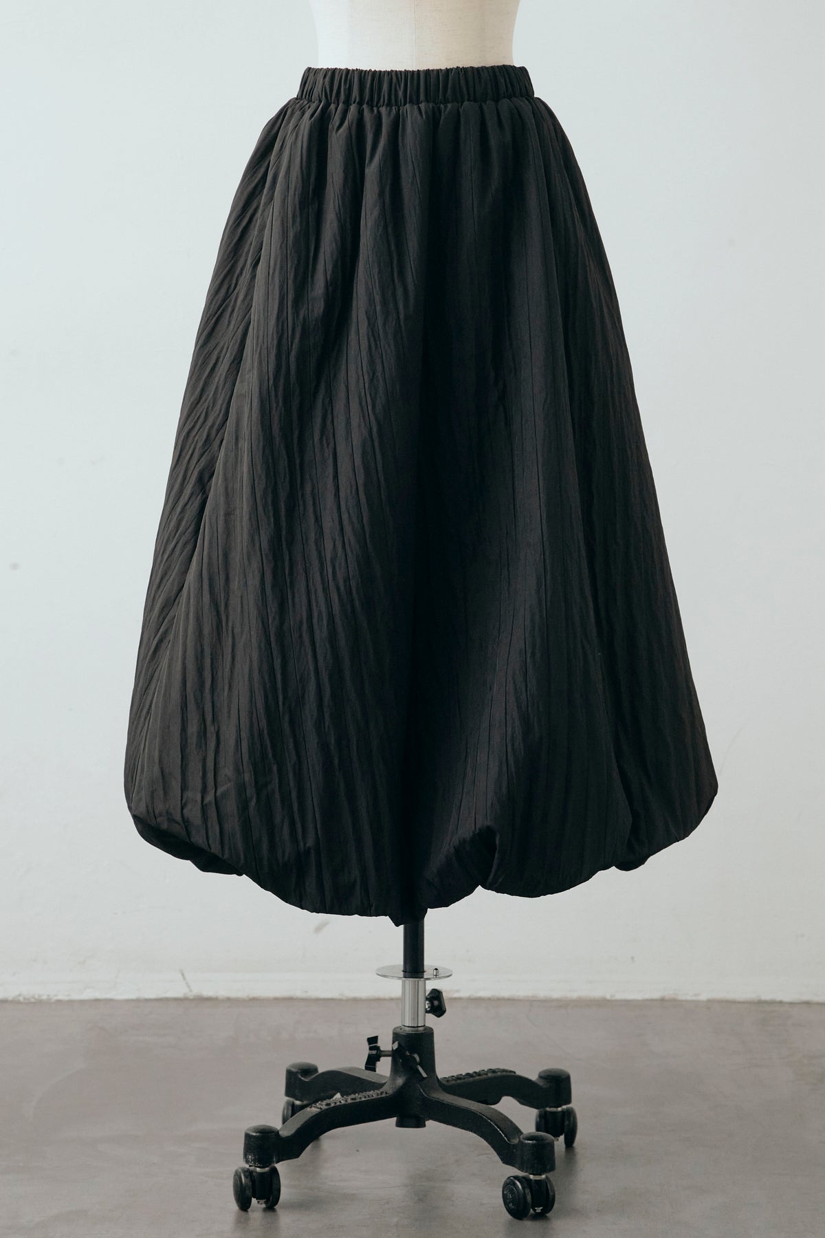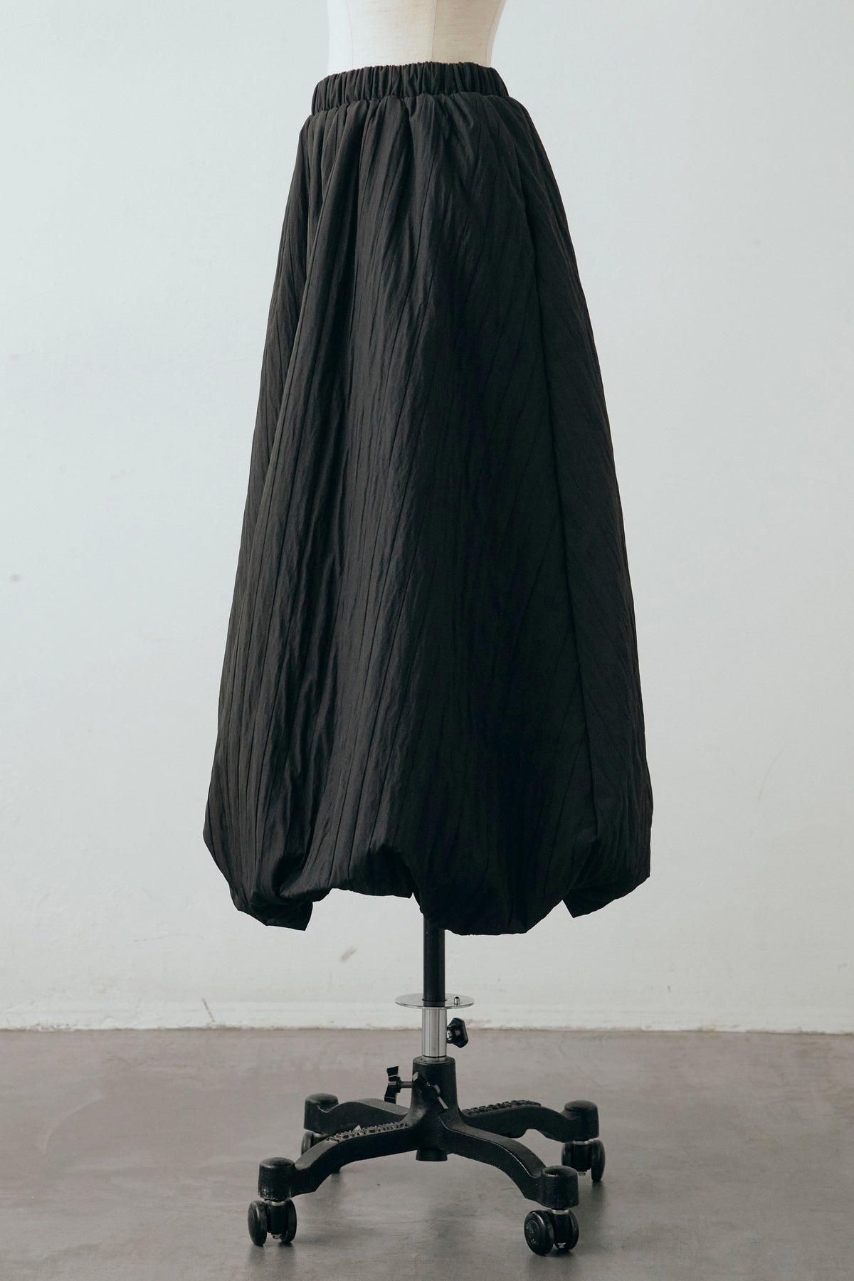 ふんわりとした立体感が特徴のバルーンシルエットスカート。 ソフトなキルト素材が軽やかなボリュームを生み、動きに合わせて自然な表情が広がります。 ウエストはゴム仕様で、リラックス感がありながらも全体の印象はすっきり。 シンプルなトップスと合わせるだけで、スタイリングに奥行きを加えられる一枚です。