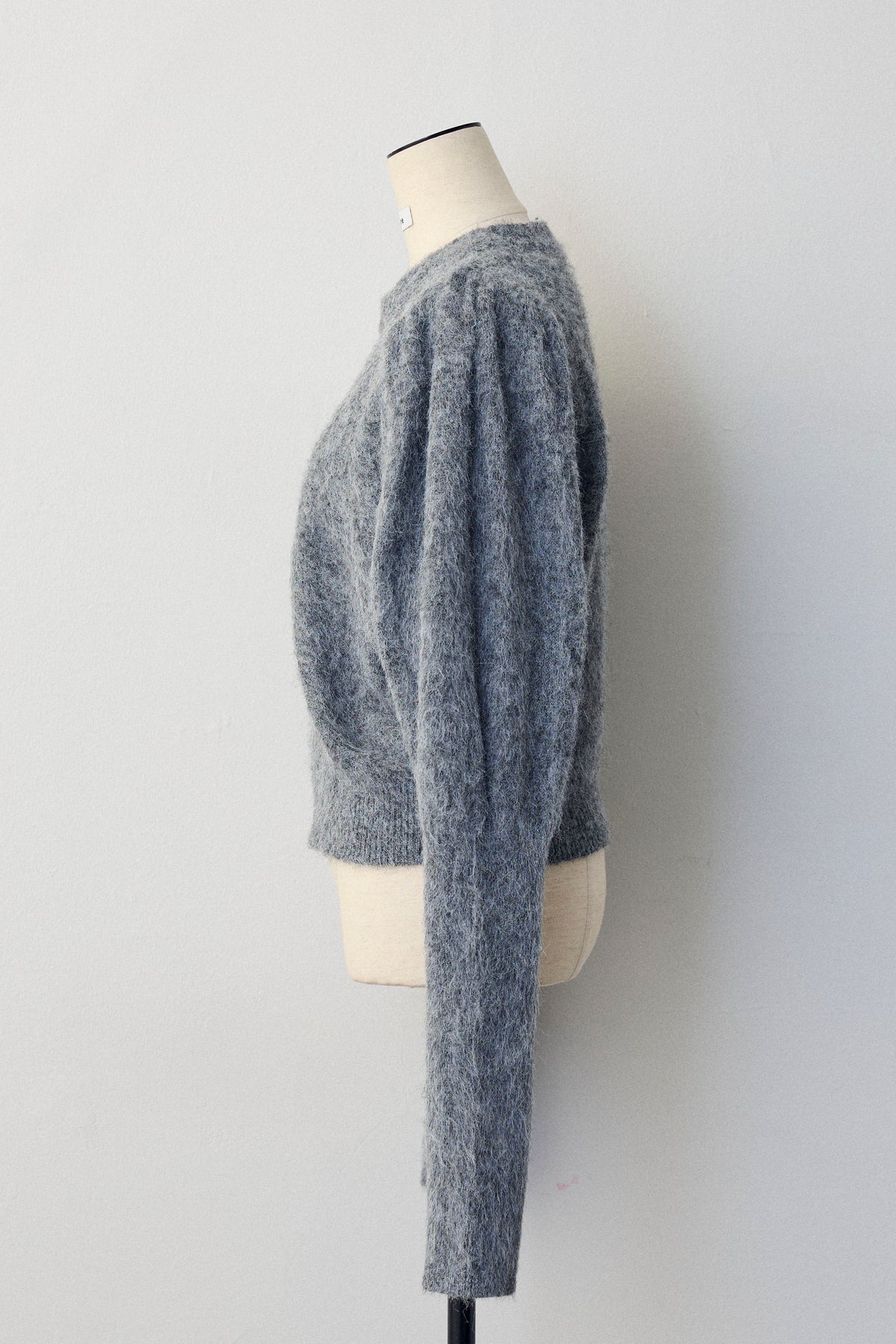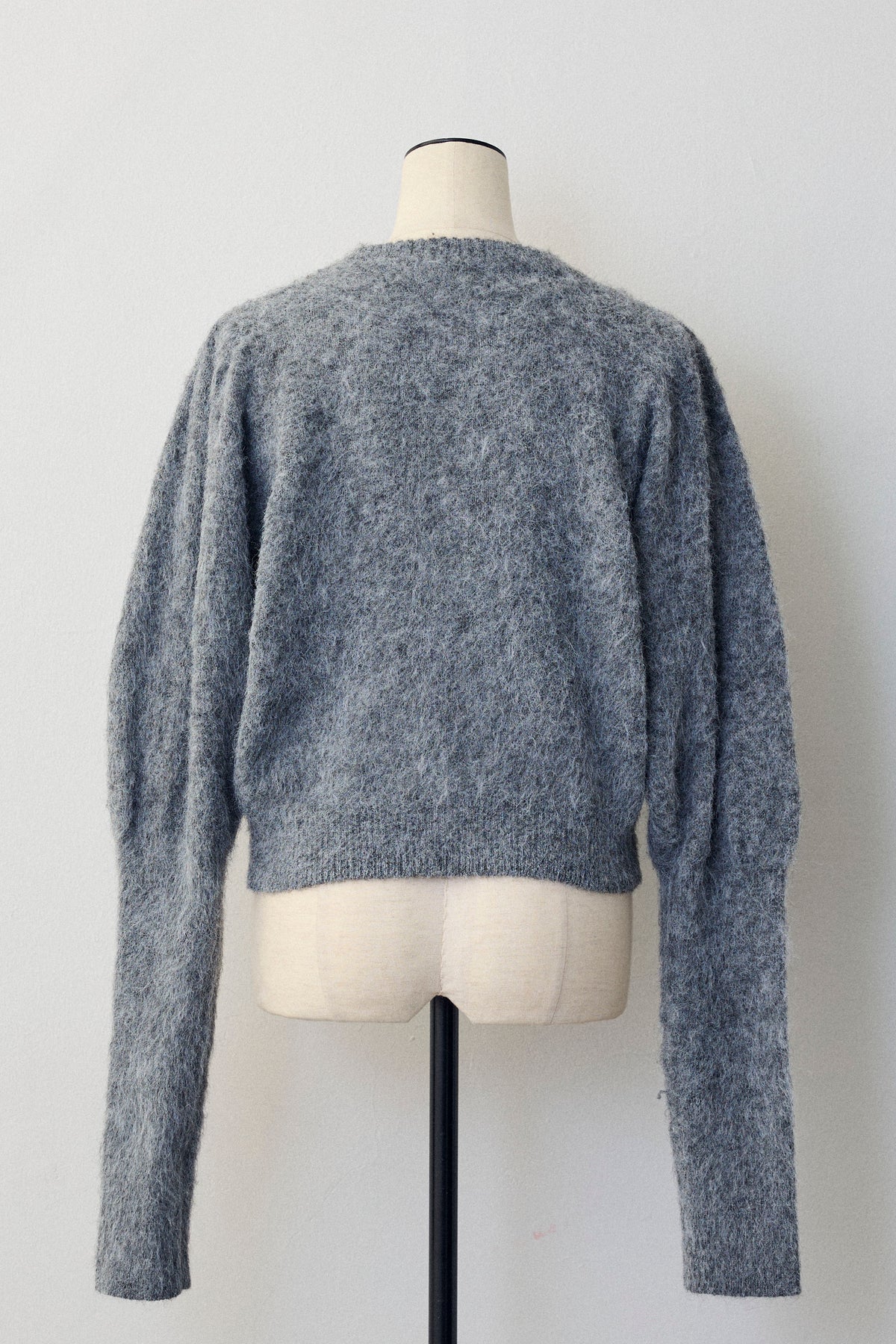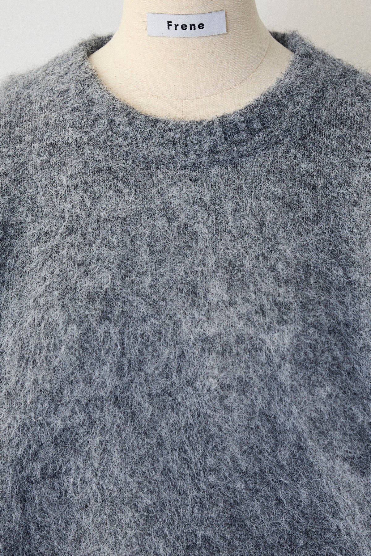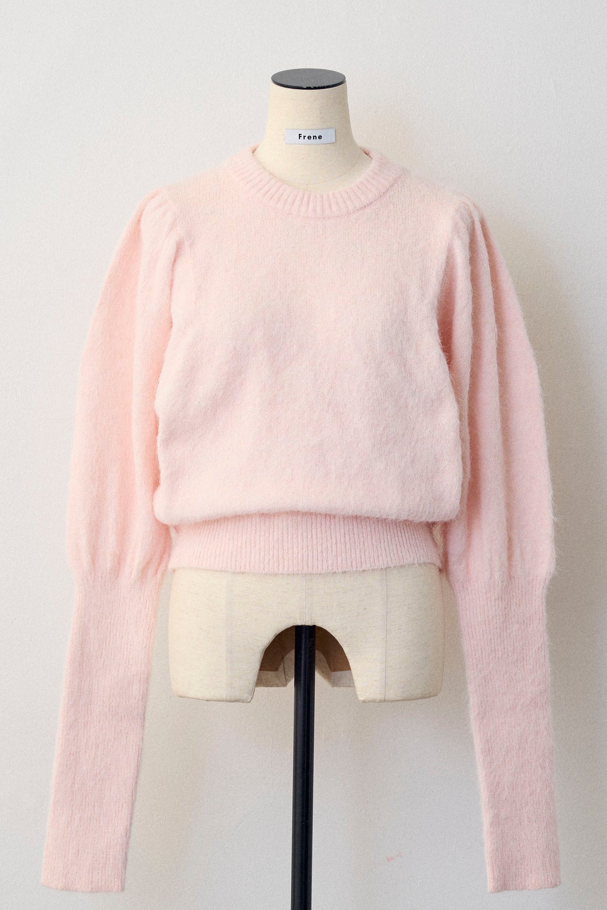 ふんわりとしたモヘアの質感が魅力のパフスリーブプルオーバー。程よくボリュームを持たせた肩まわりが、シンプルなシルエットに女性らしい立体感を添えています。短めの着丈はバランスが取りやすく、ワイドパンツやスカートとも好相性。軽やかな風合いがスタイリングに柔らかいニュアンスを生み、大人のフェミニンスタイルを品よく引き立ててくれる一枚です。
