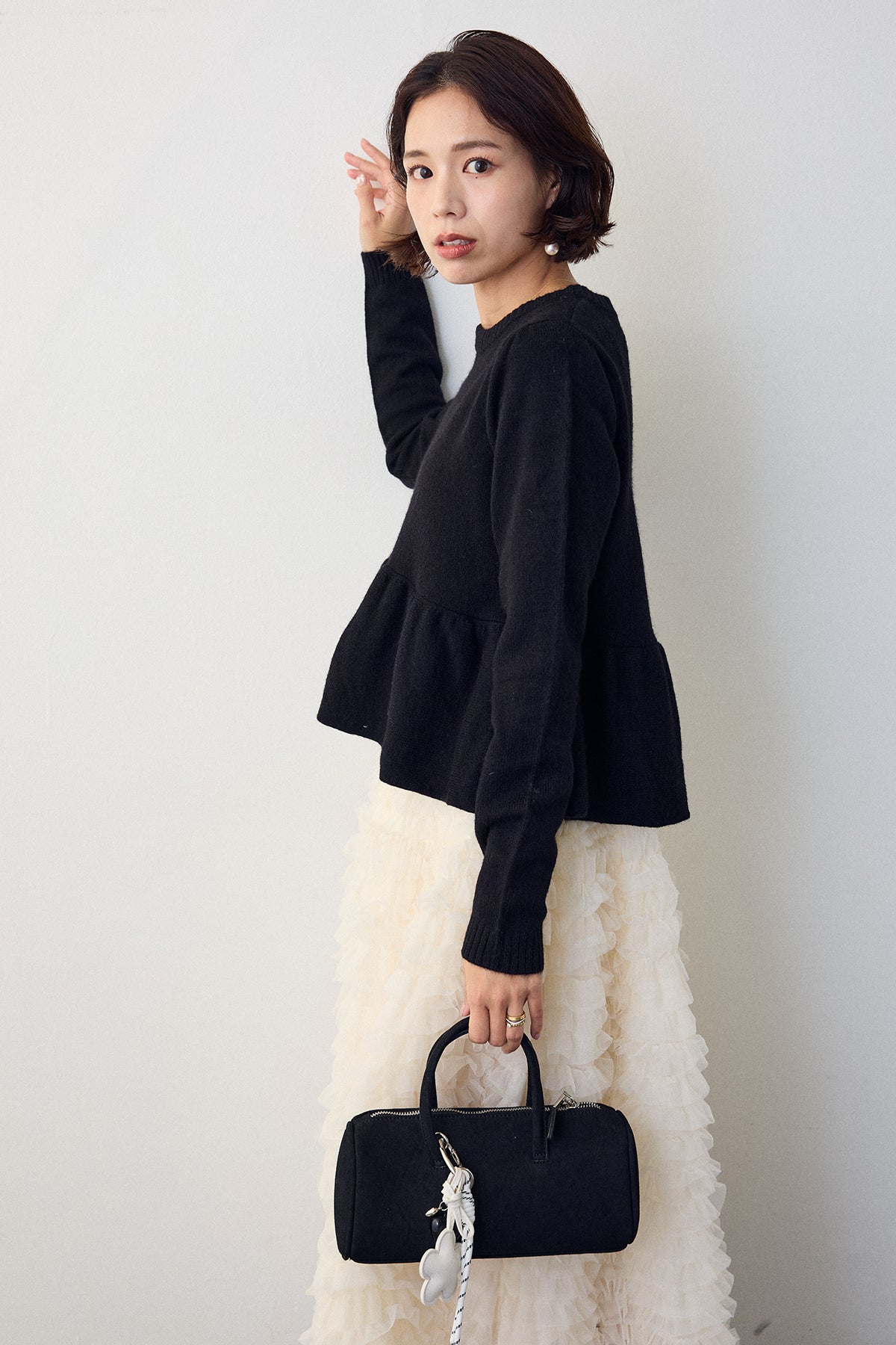 ふんわりと柔らかなアルパカタッチ素材で仕上げた、軽やかな着心地のニットプルオーバー。裾に向かって自然に広がるバルーンヘムが、シンプルなシルエットに優しい華やかさを添えてくれます。ほどよい丈感でボトムを選ばず、スカートと合わせればフェミニンに、パンツスタイルには柔らかな抜け感をプラス。大人の女性が日常に取り入れやすい上品さと可憐な雰囲気を兼ね備えた一枚です。