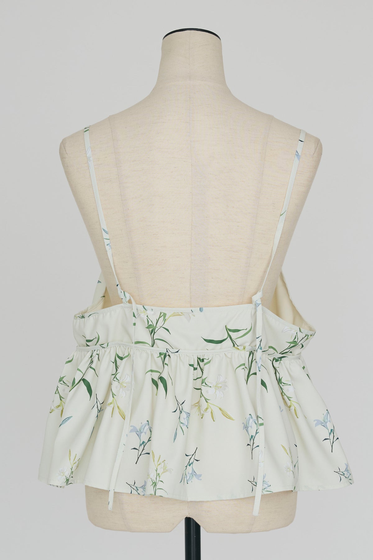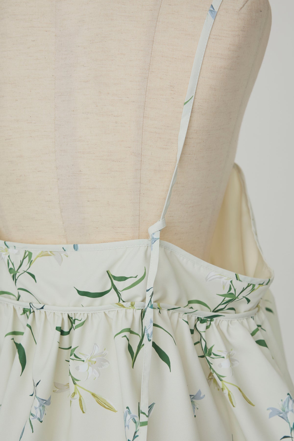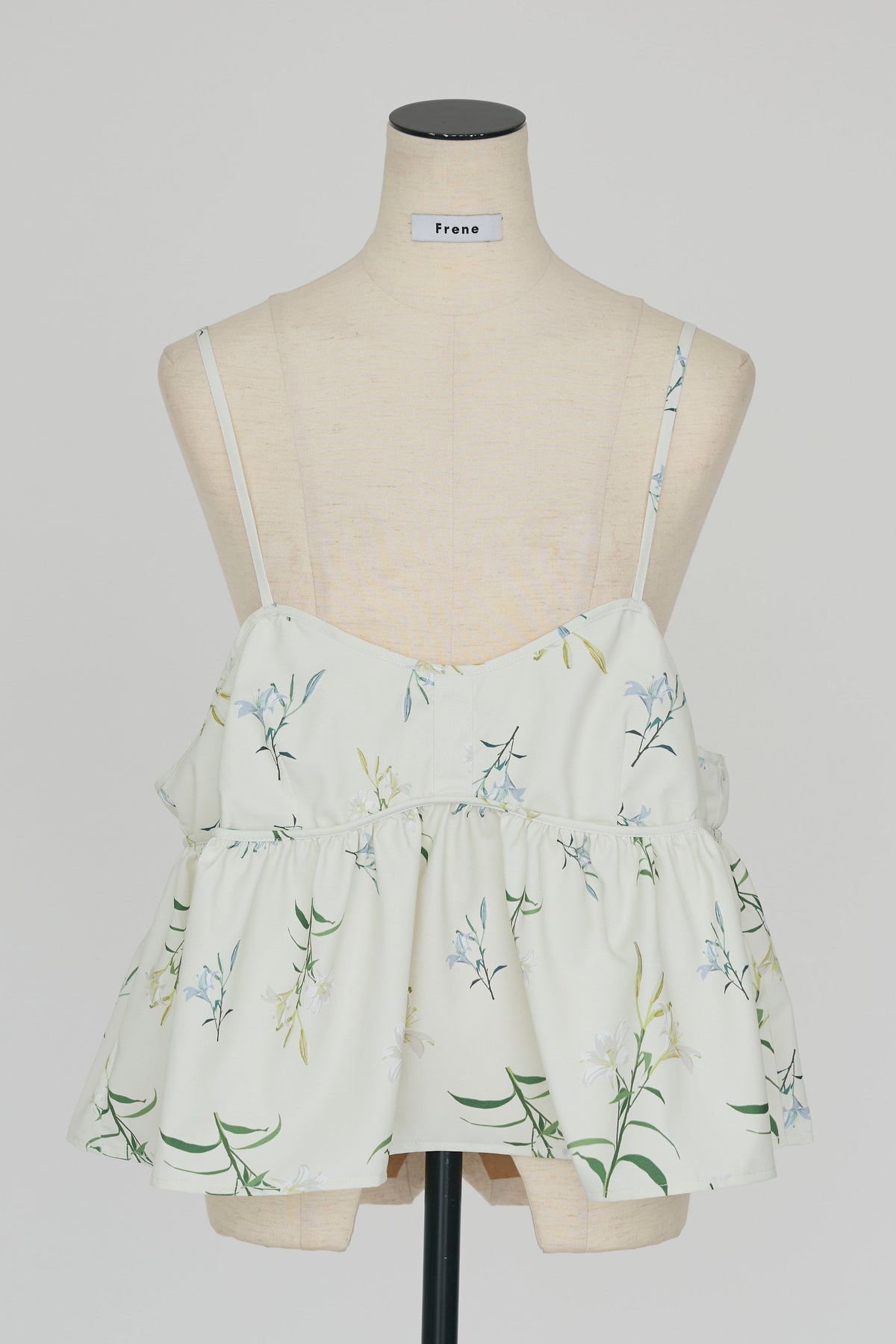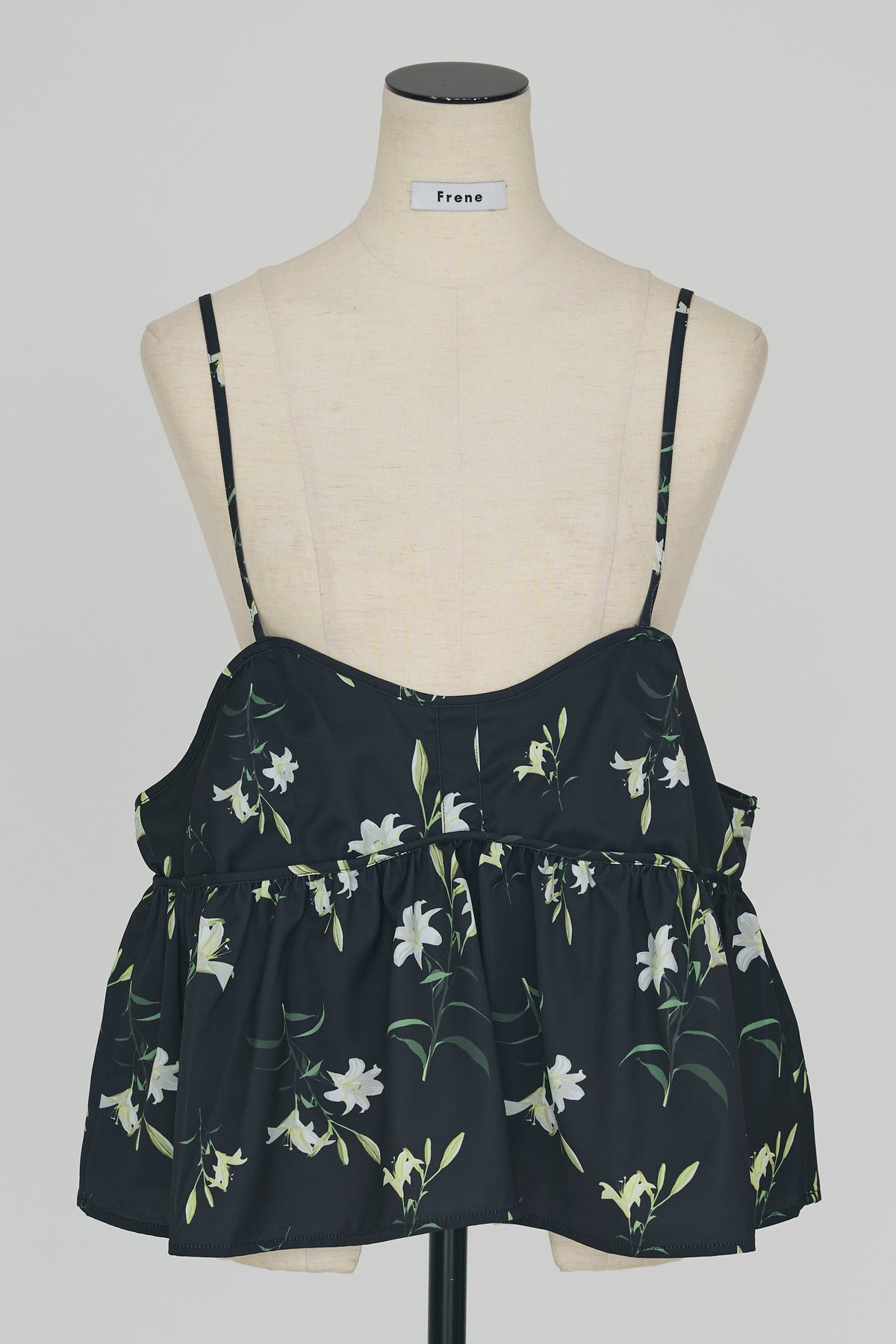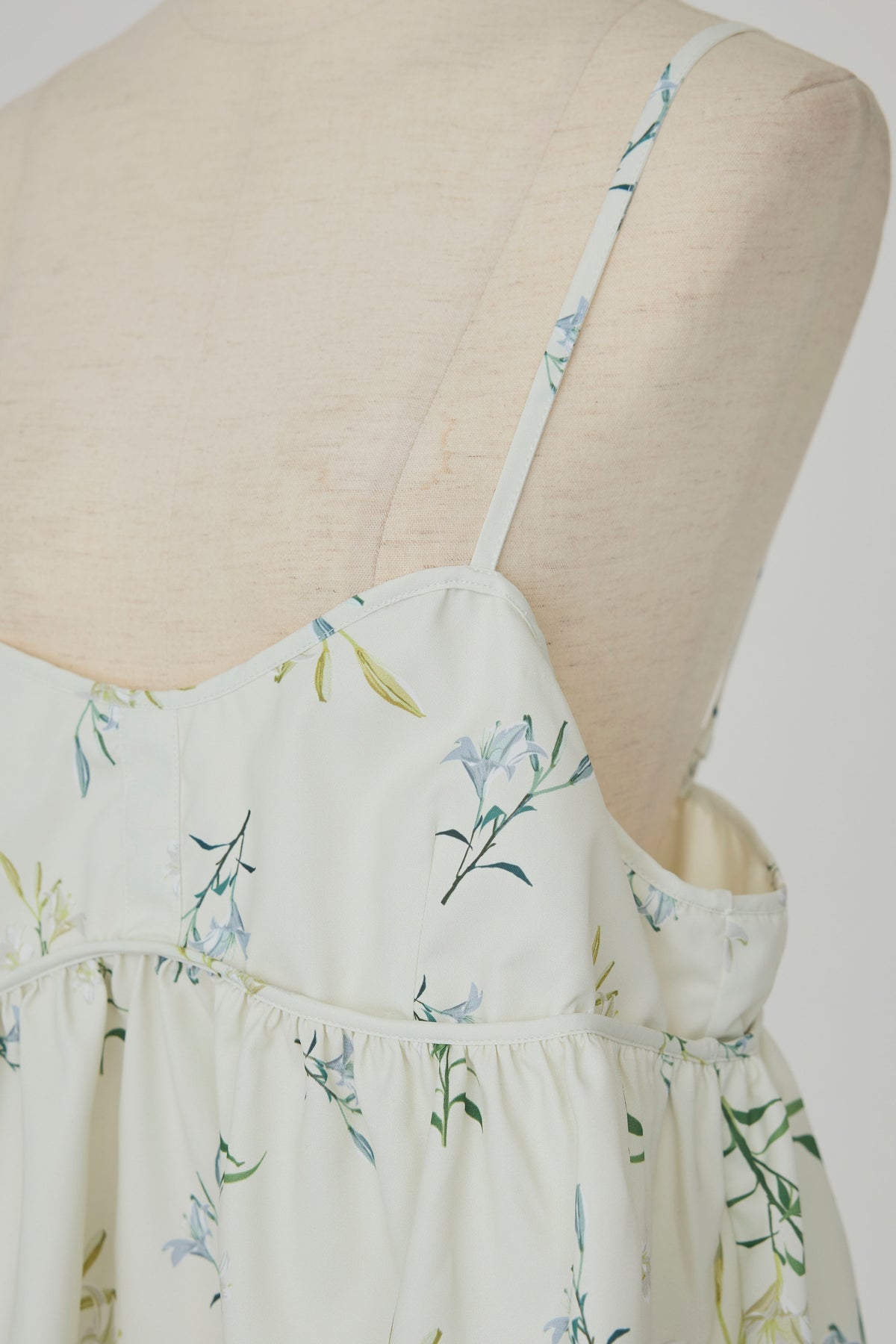 落ち着いた配色のフラワー柄が大人っぽく上品な印象を与えるビスチェ風のキャミソール。 胸下の切り替えからふんわりと広がるシルエットが女性らしさを引き立てつつ気になる部分を自然にカバーします。 華奢なストラップが背中で好みのフィット感に調整でき後ろ姿まで抜かりなく可愛く決まります。 薄手のニットやシンプルなTシャツなど合わせるインナー次第でシーズンレスに様々な着こなしを楽しめる一着です。