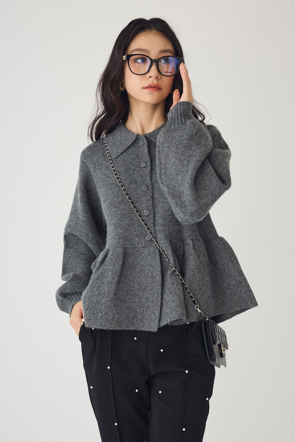 [予約/SET]ポロ襟ペプラムニットプルオーバー+センターシームランダムパールパンツ(2set)