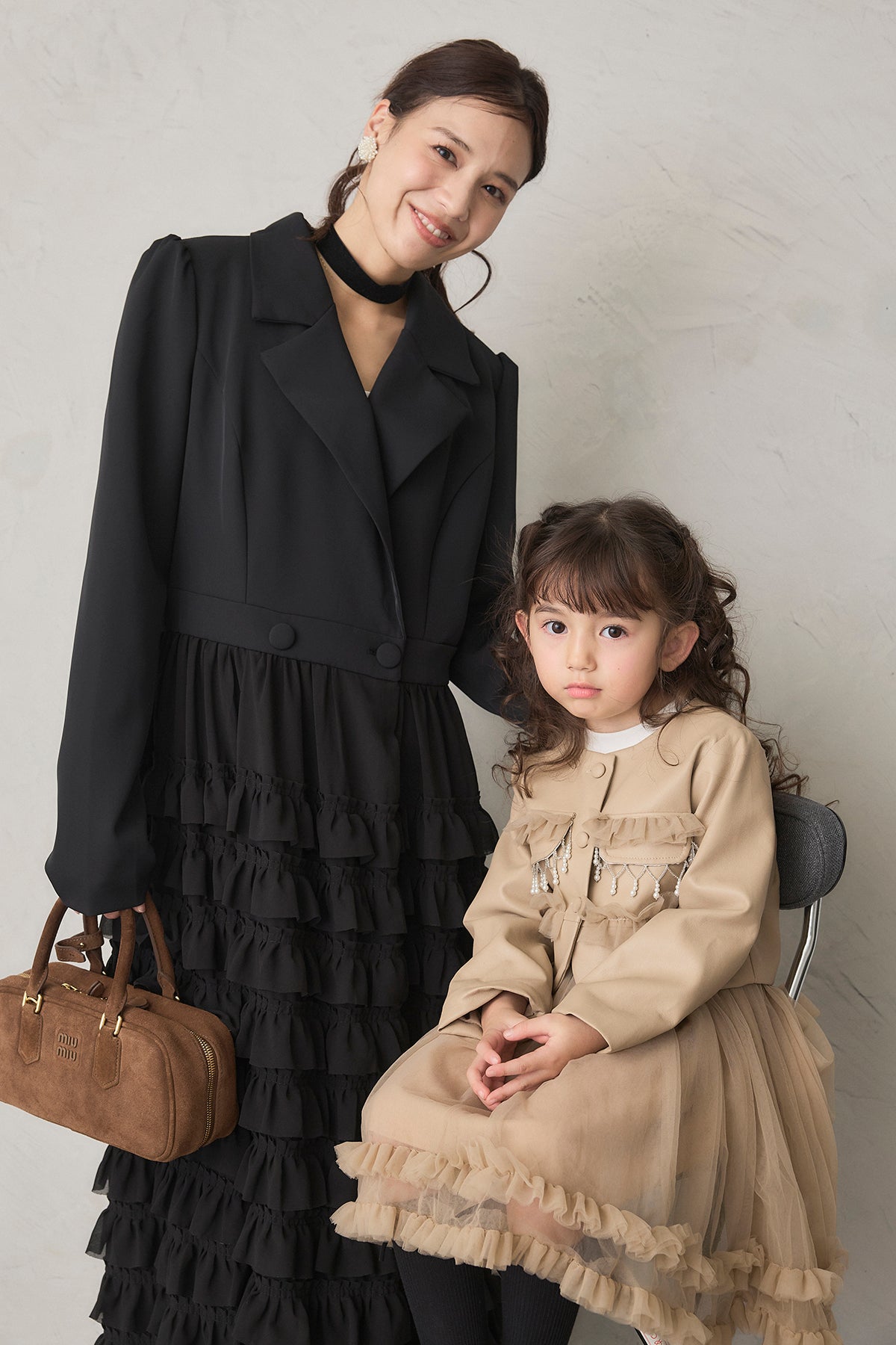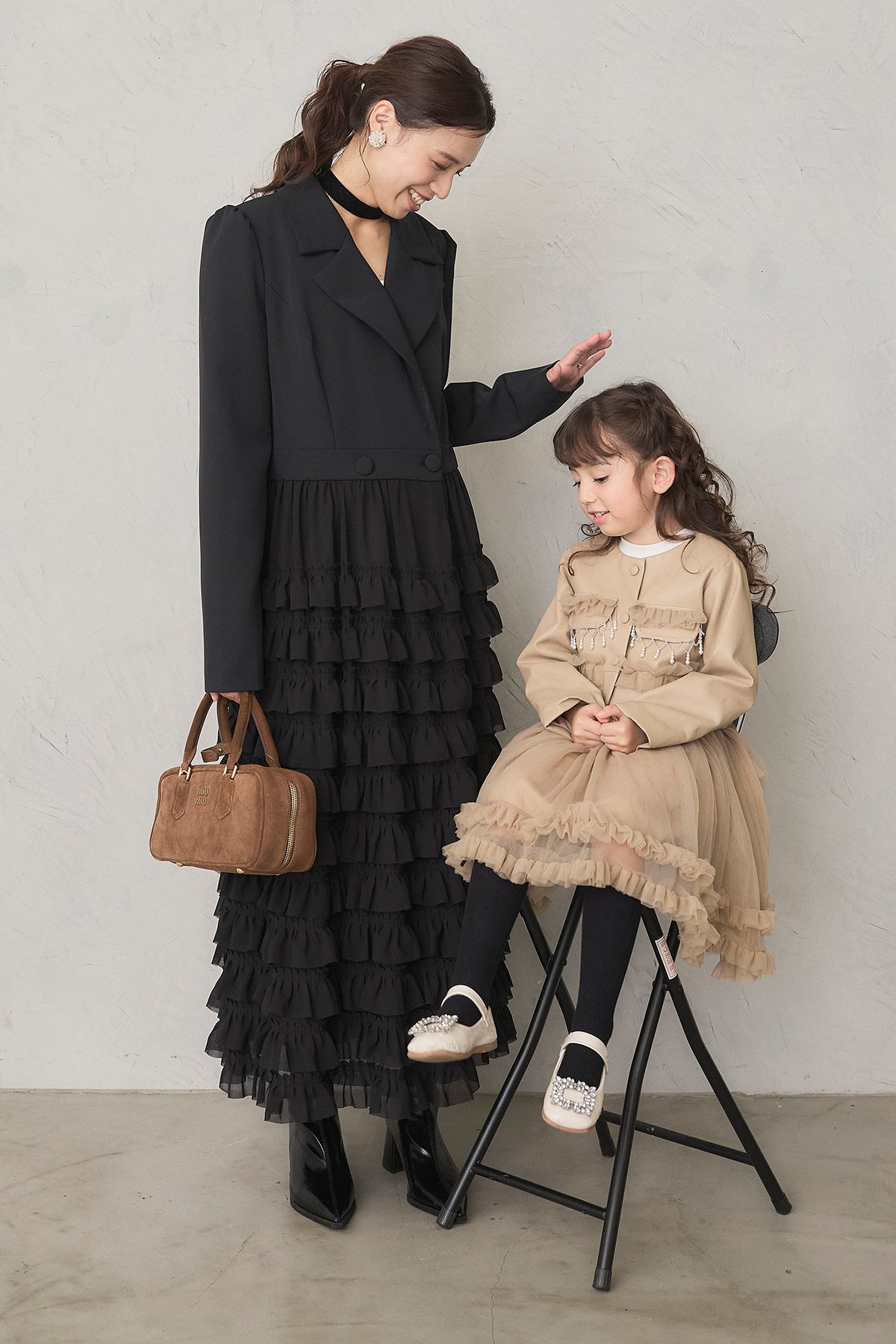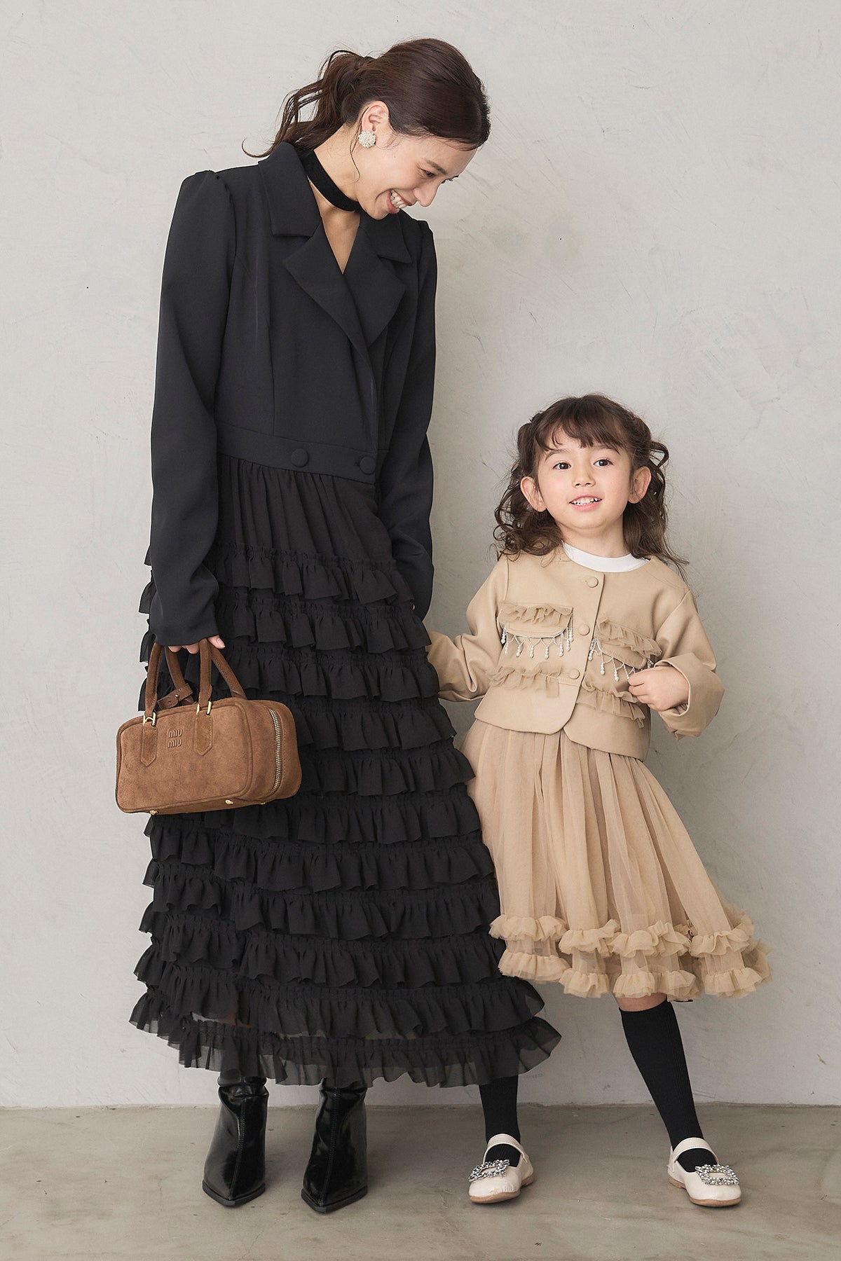 [予約/親子SET]ティアードチュールドッキングジャケットワンピース+[kids]フリルヘムチュールワンピ+ジャケットセット(2set)