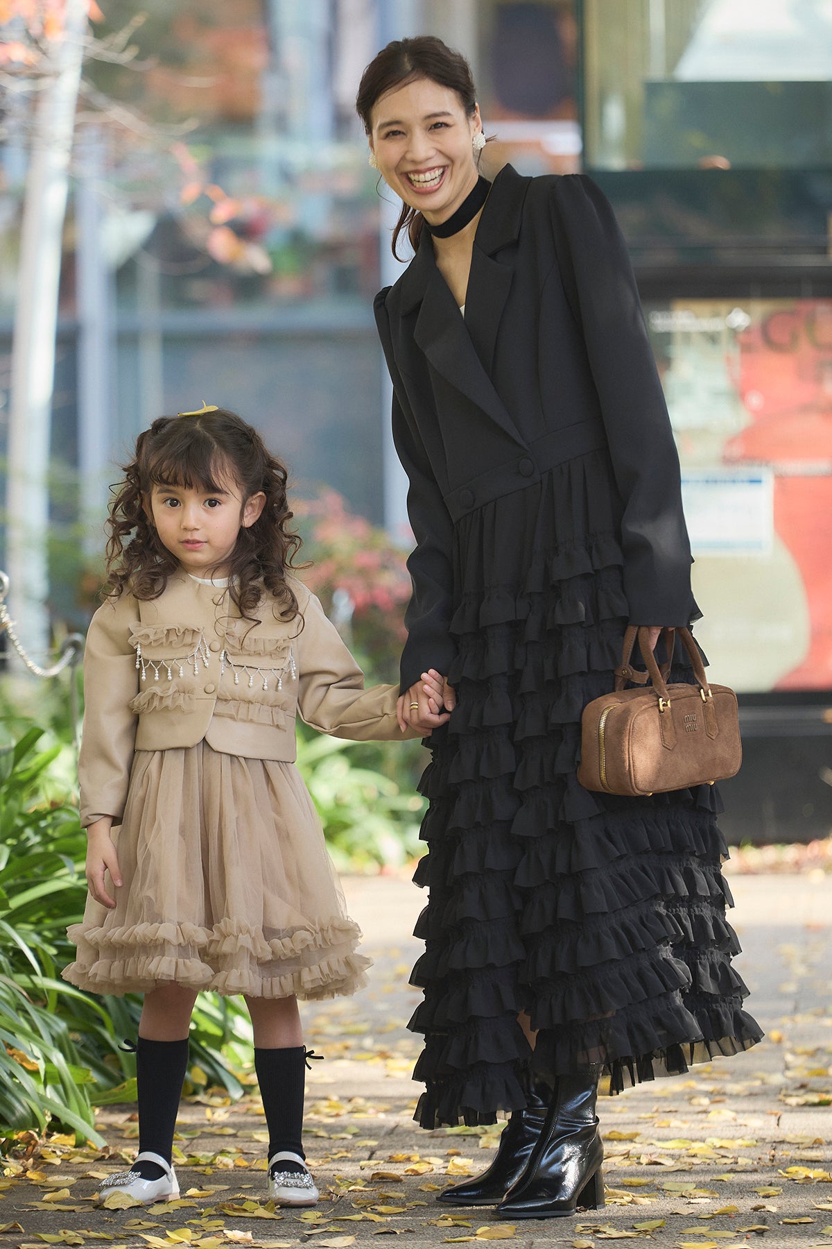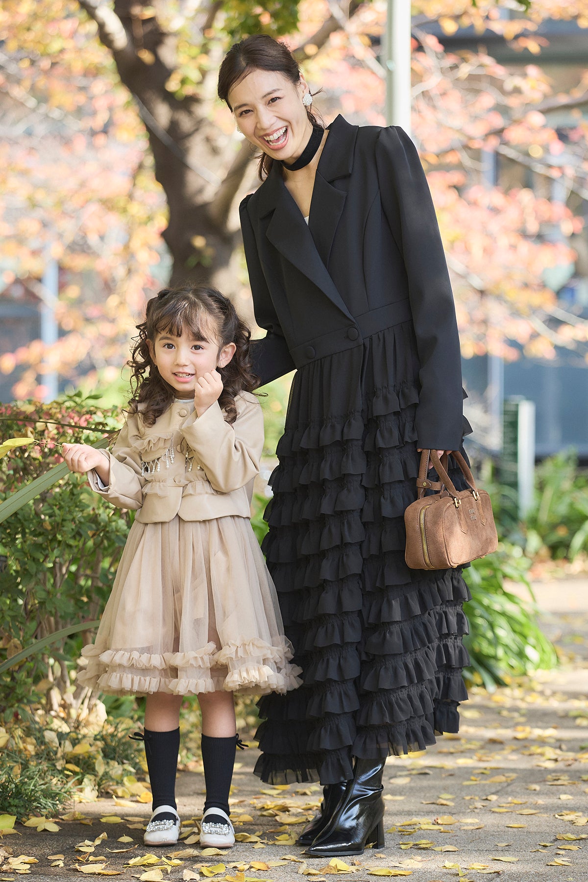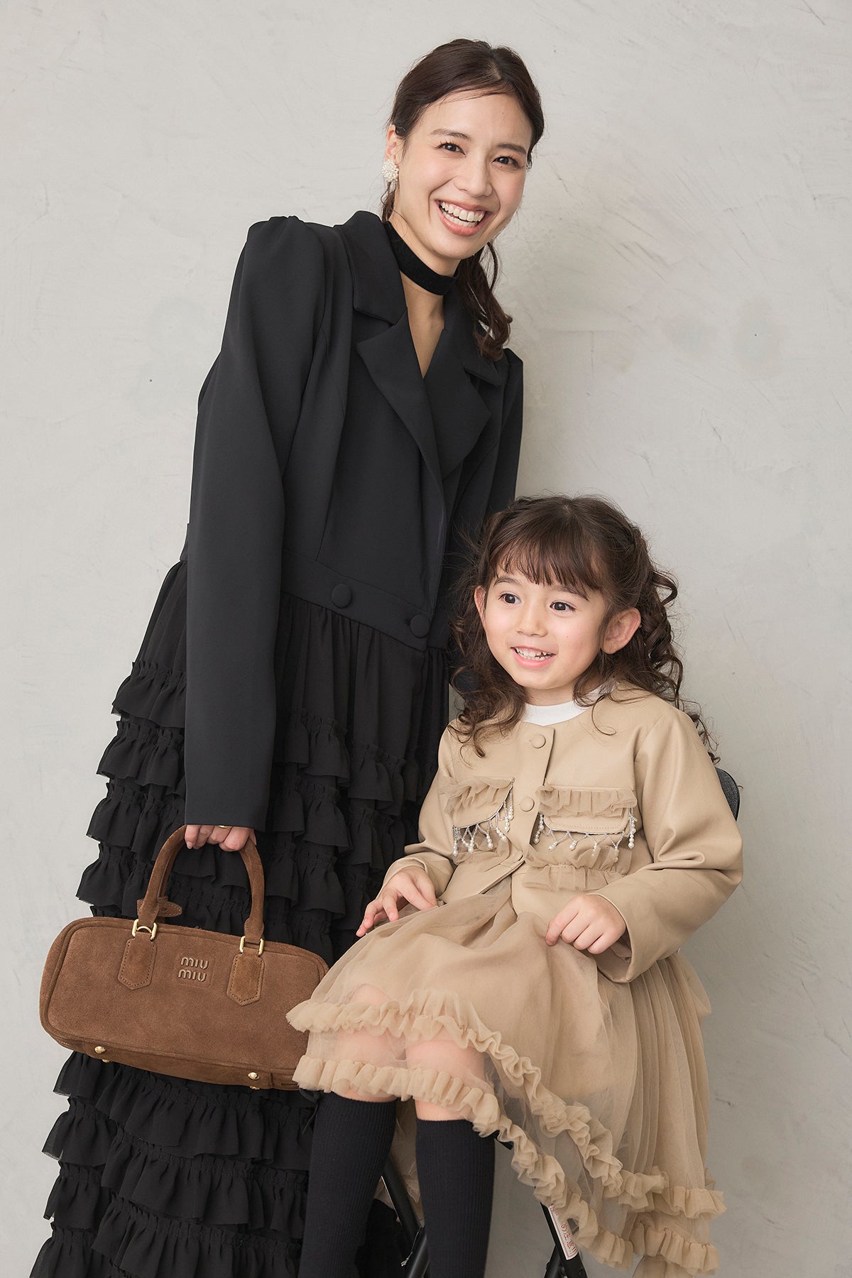 [予約/親子SET]ティアードチュールドッキングジャケットワンピース+[kids]フリルヘムチュールワンピ+ジャケットセット(2set)