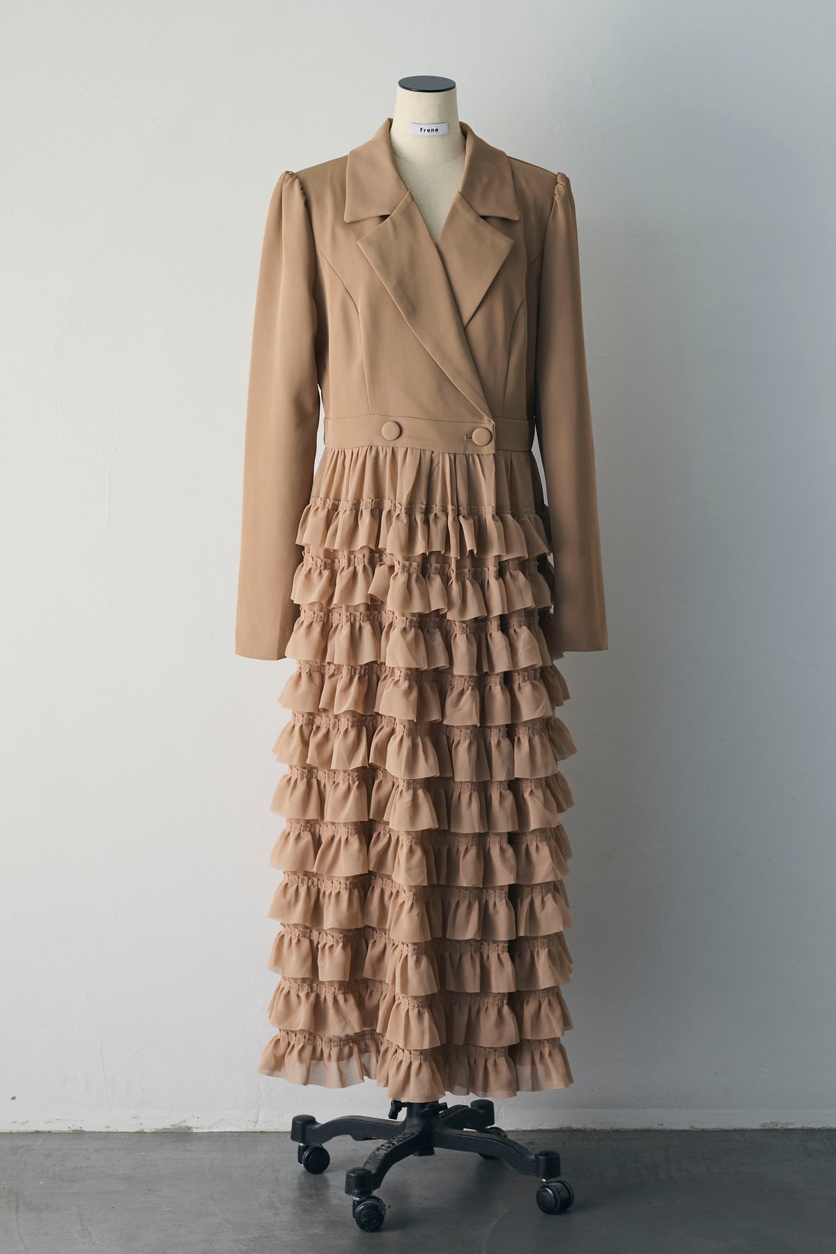[予約][kids]フリルヘムチュールワンピ+ジャケットセット