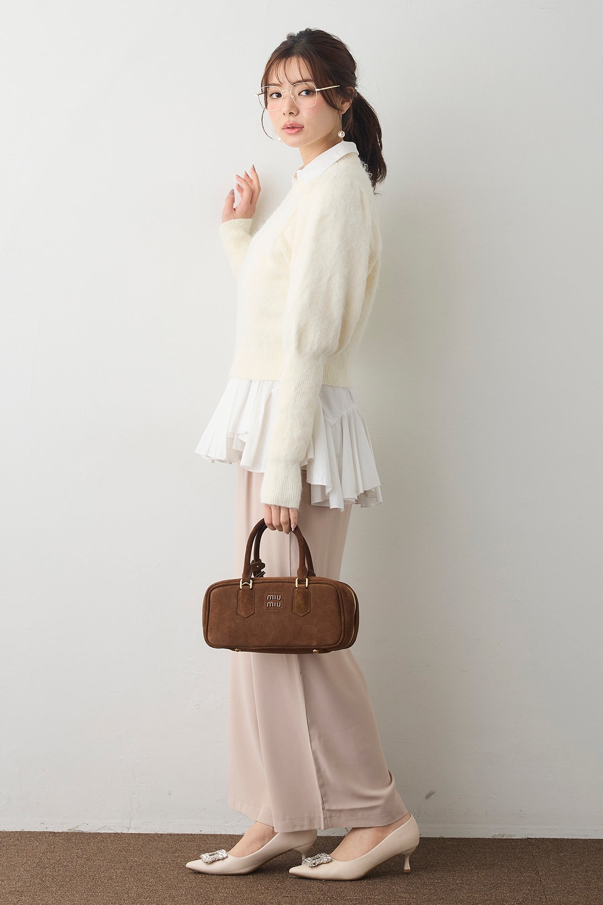・お手入れ方法:手洗いの場合は水温30℃以下をお薦めします。裏返してネットに入れ手洗いコースで洗濯※タンブラー乾燥は控え、色物とは分けてください 色落ち・色移りを防ぐため、必ず単独で洗ってください。濡れたままの状態で擦れると、色落ち色移りすることがあります。つけ置き洗いや雨や汗で濡れたまま放置は避け、速やかに処理してください。着用中の摩擦や汗、水濡れ、濃淡差があるものとの重ね着にご注意ください。