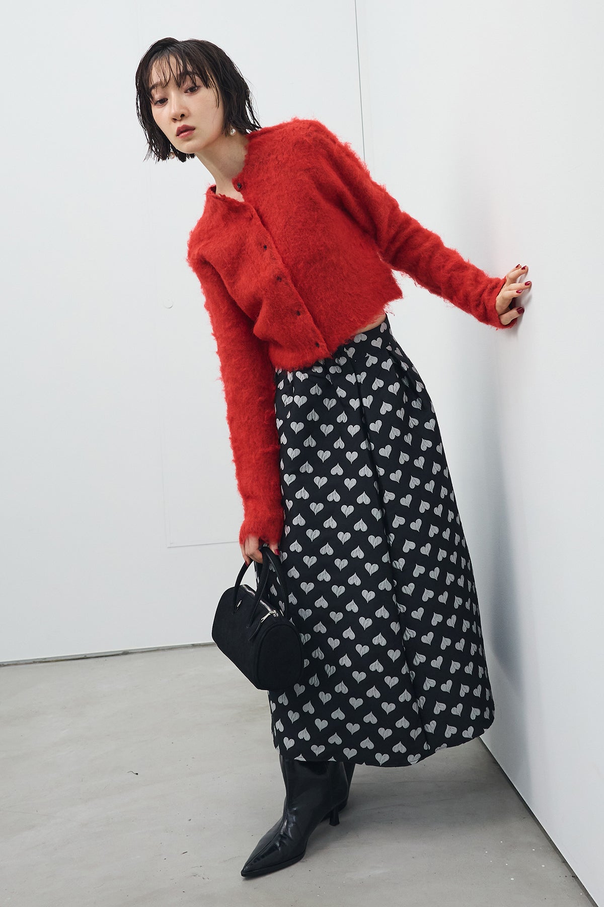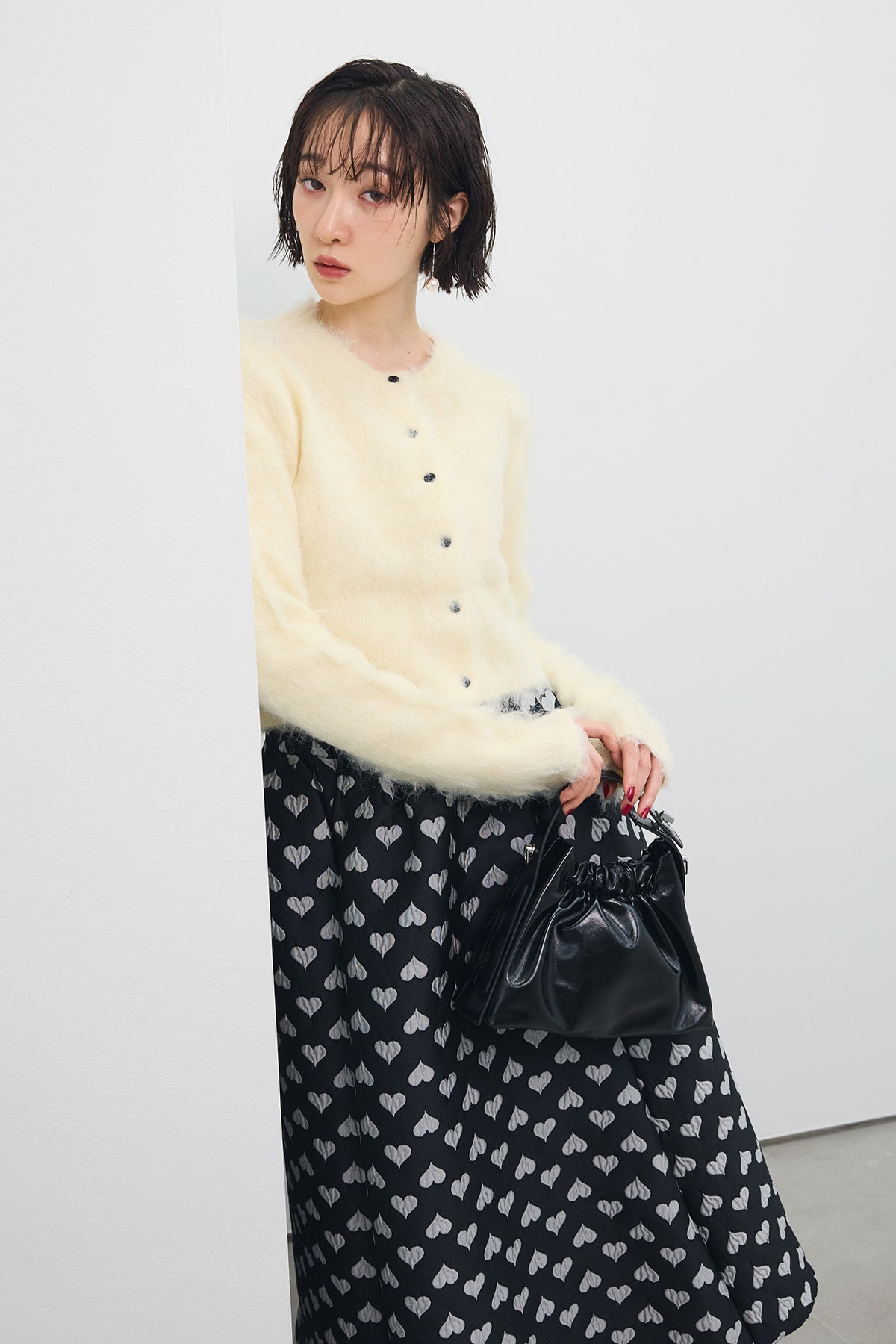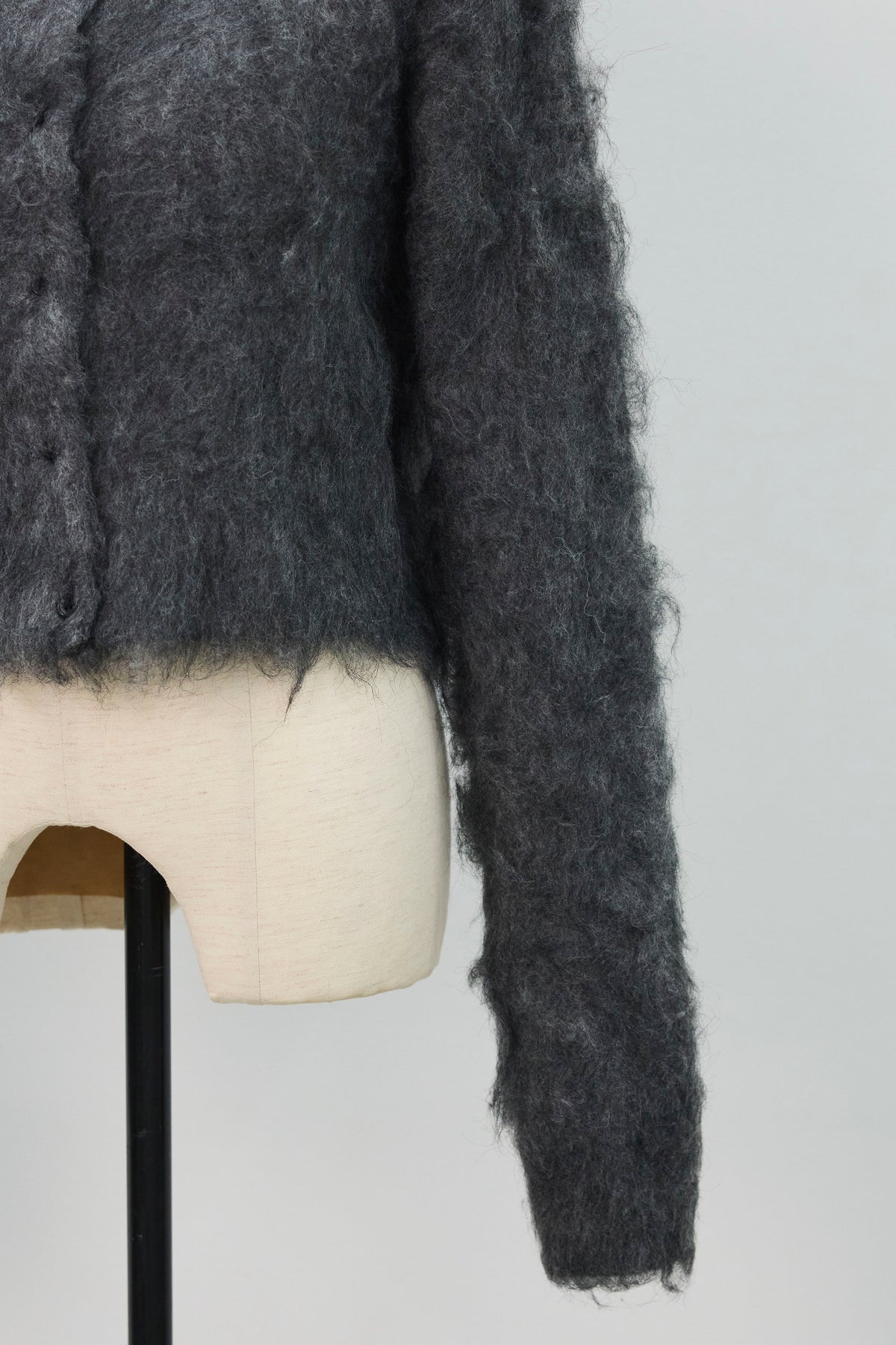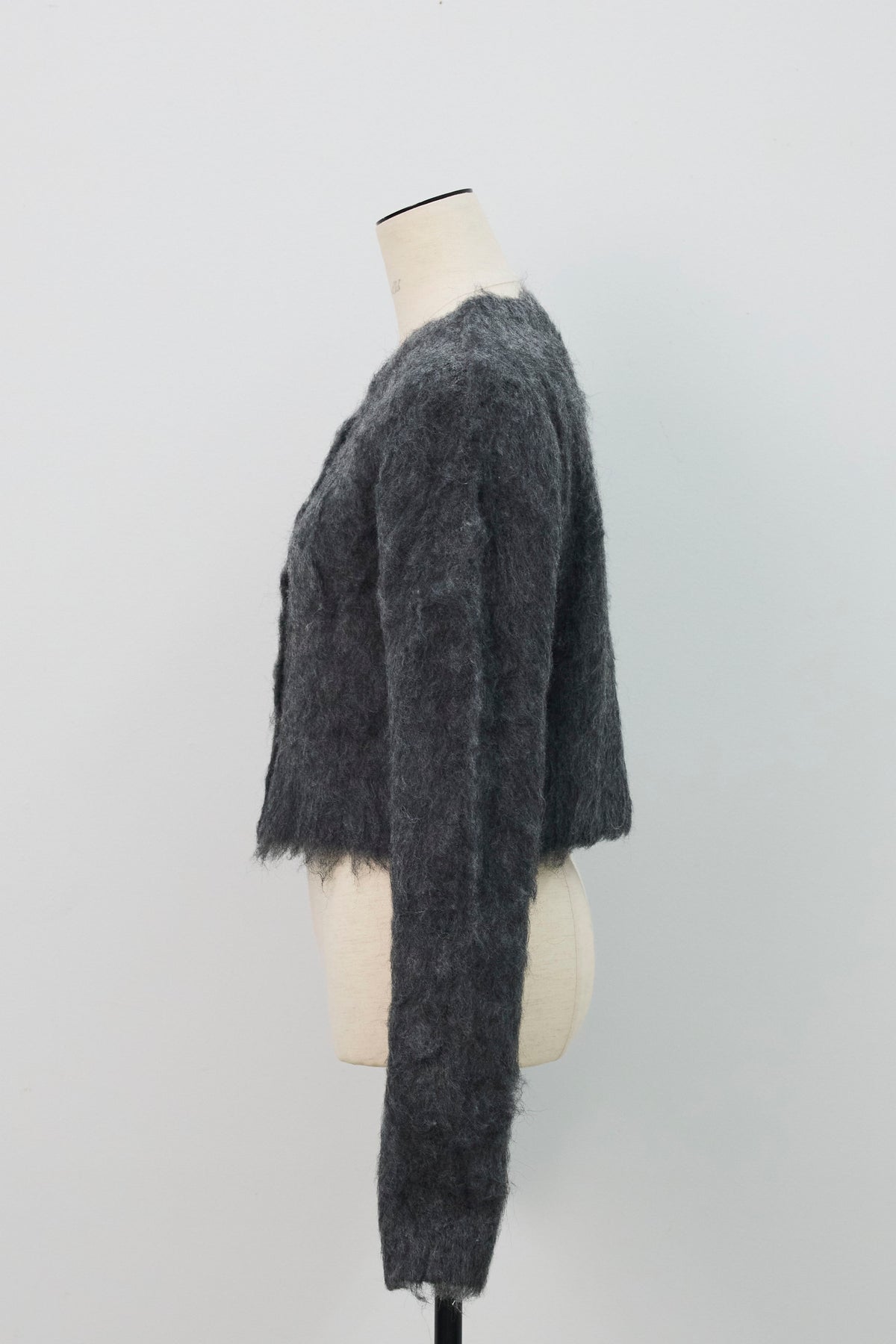 ふわふわとした毛足が魅力のモヘアタッチカーディガン。 クロップド丈でバランスが取りやすく、ハイウエストボトムとも好相性。 軽やかな着心地ながら、シーズンムードをしっかり演出してくれます。 シンプルながら存在感のある質感で、一枚で着ても羽織っても主役になるアイテムです。