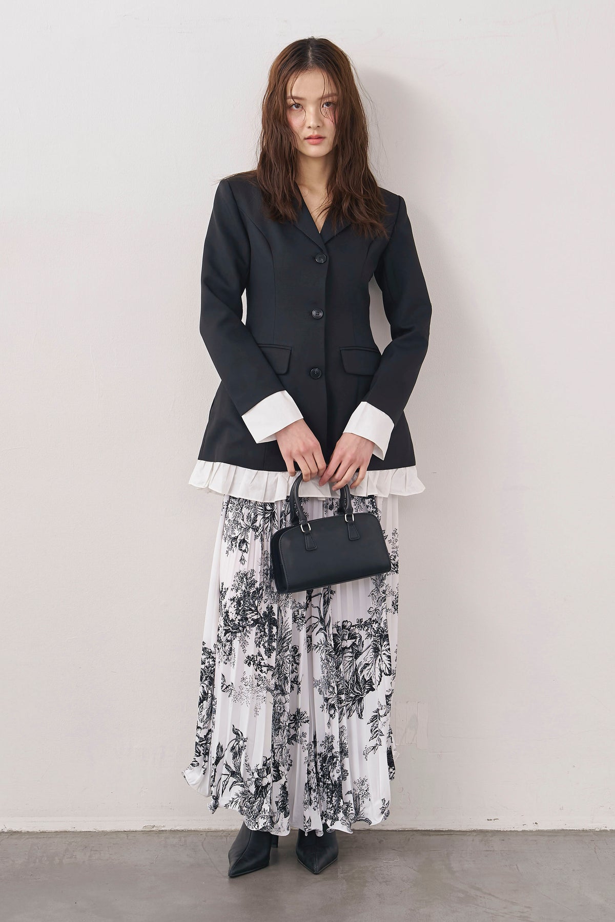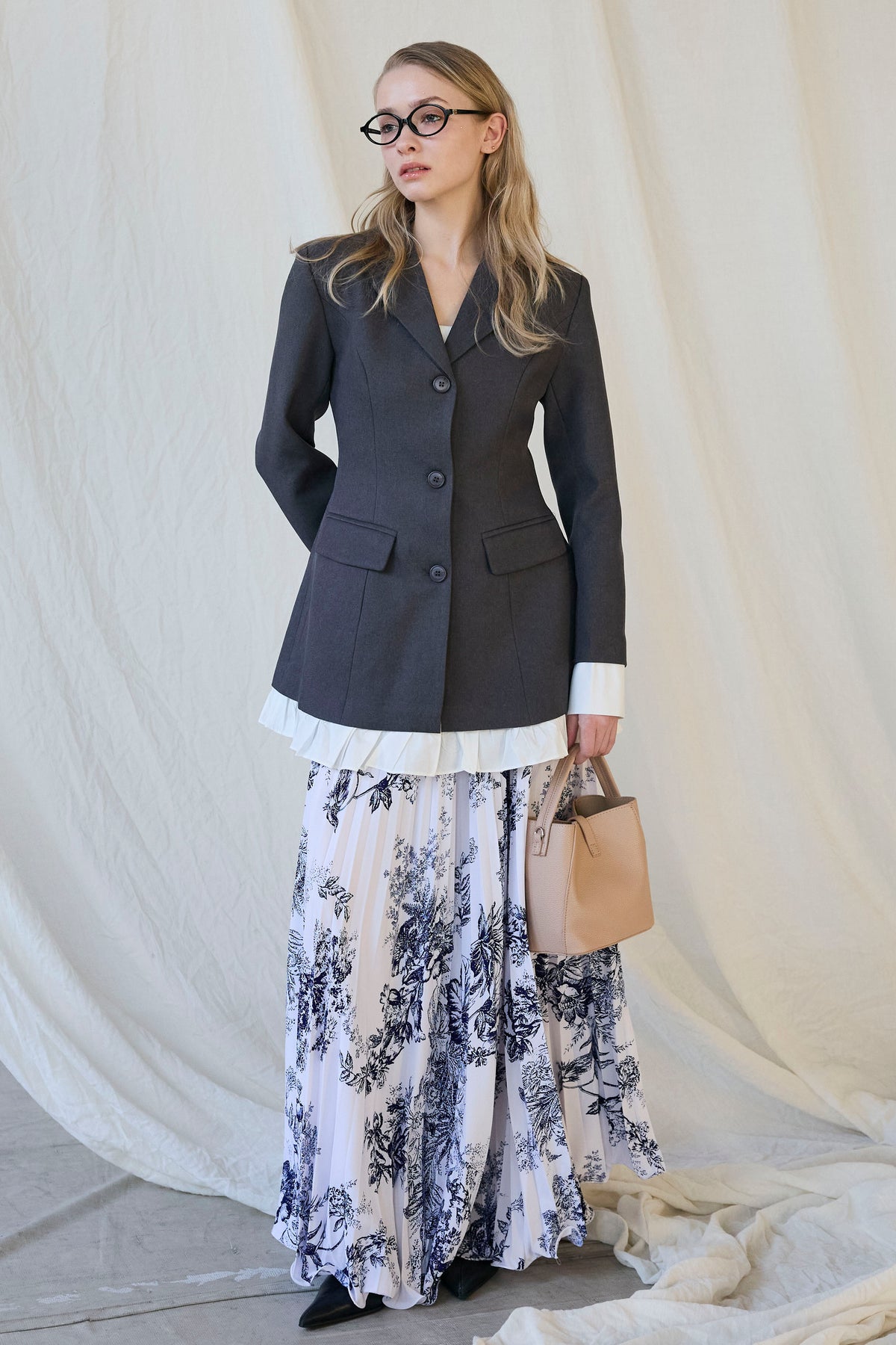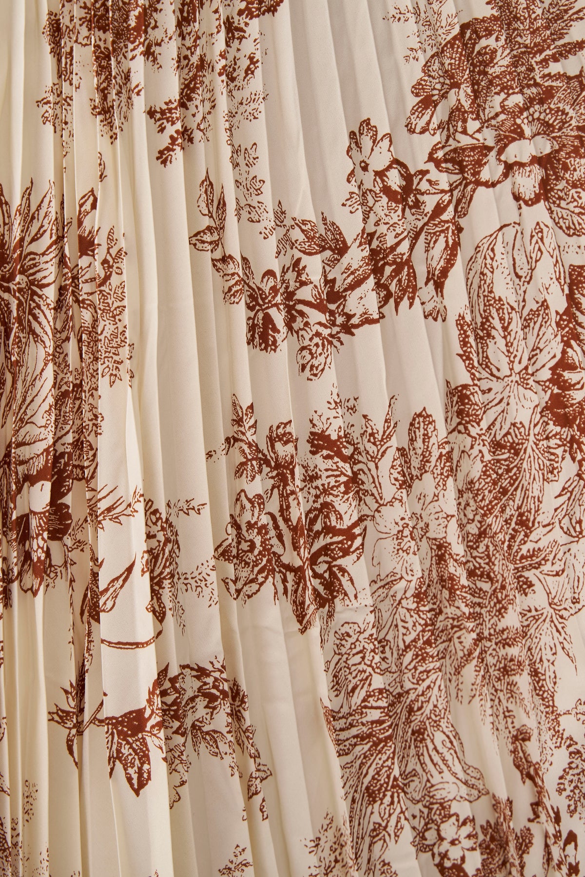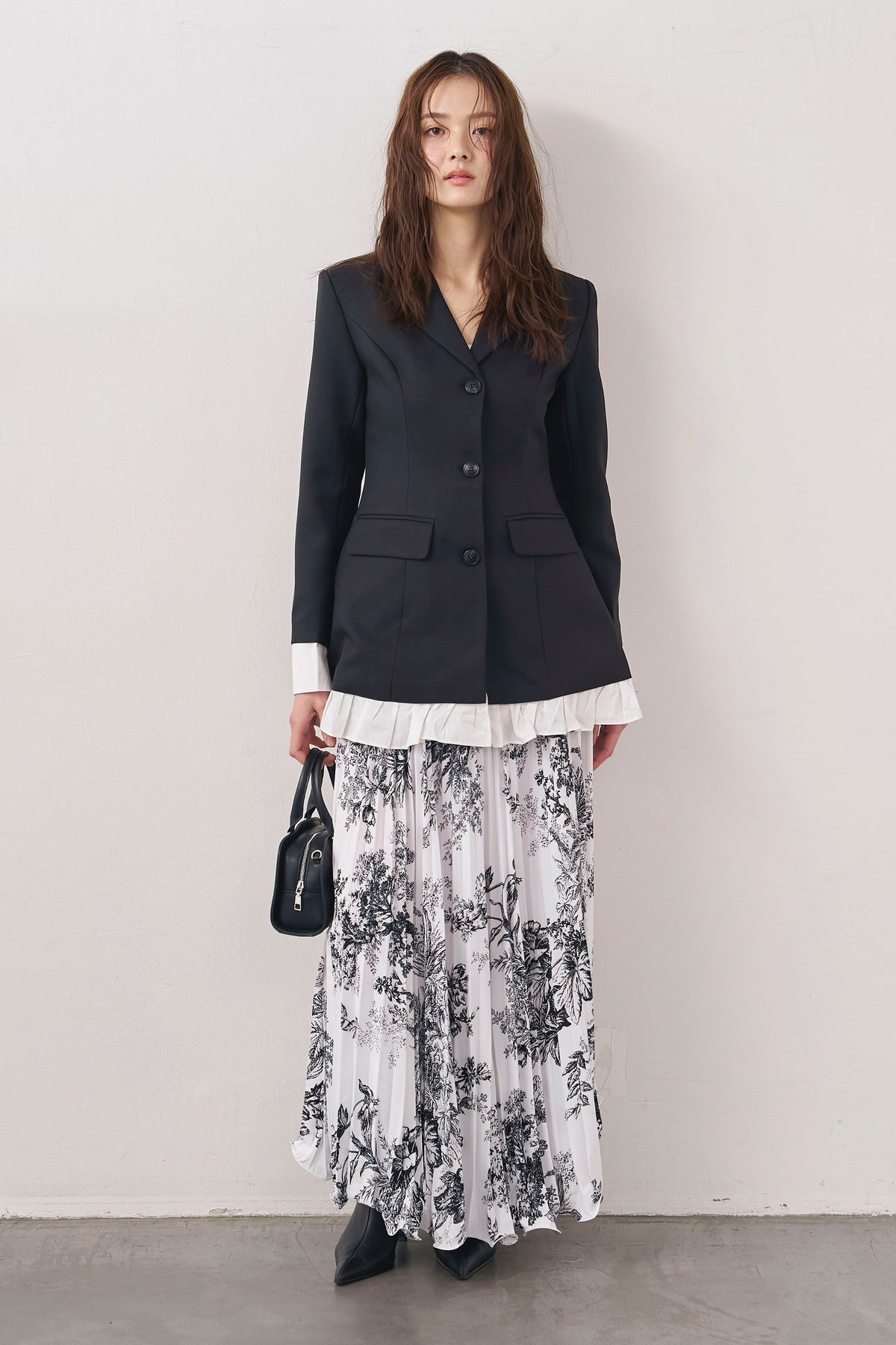 絵画のようなトワル柄と繊細なプリーツが、クラシカルな気品を漂わせるスカート。 縦に落ちるすっきりとしたシルエットは、ジャケットスタイルとも抜群の相性。 歩くたびに軽やかに揺れ、春の街に映える洗練された一着です。