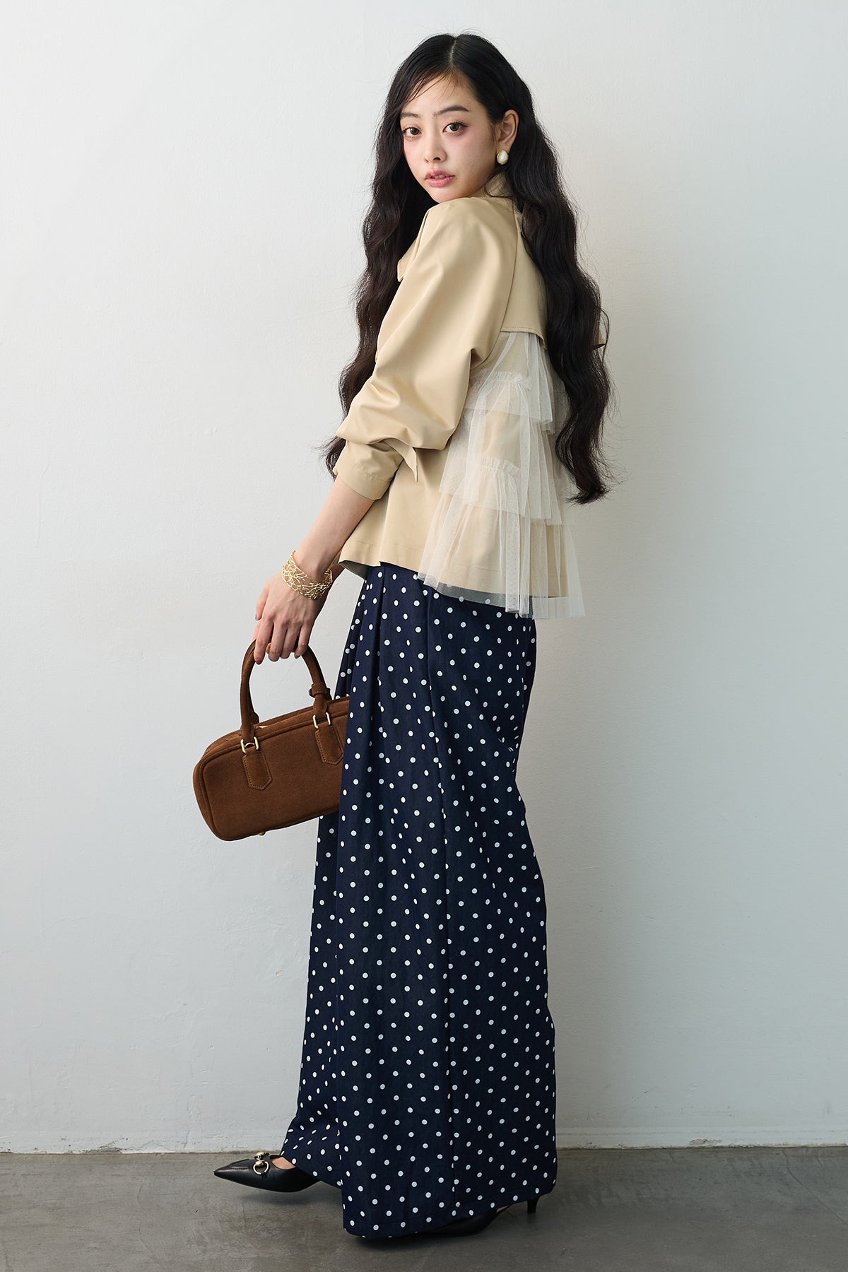 [予約]ハイウエストドットデニムパンツを含んだコーデセット商品を探す↓