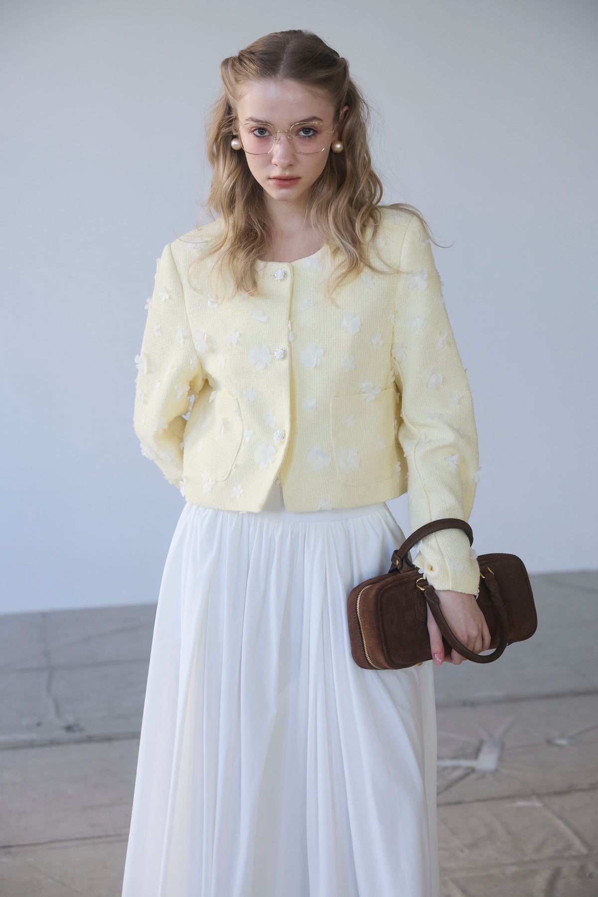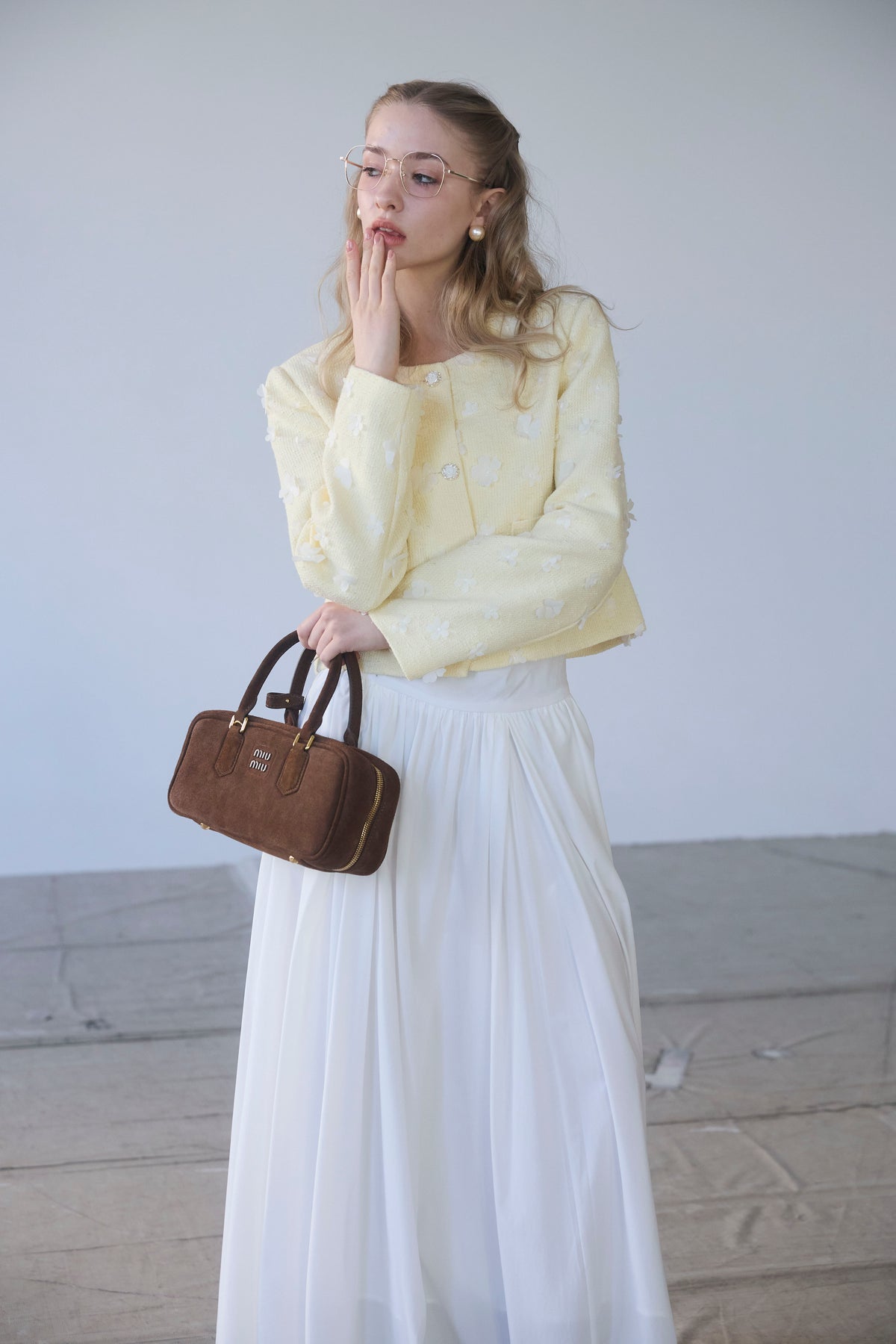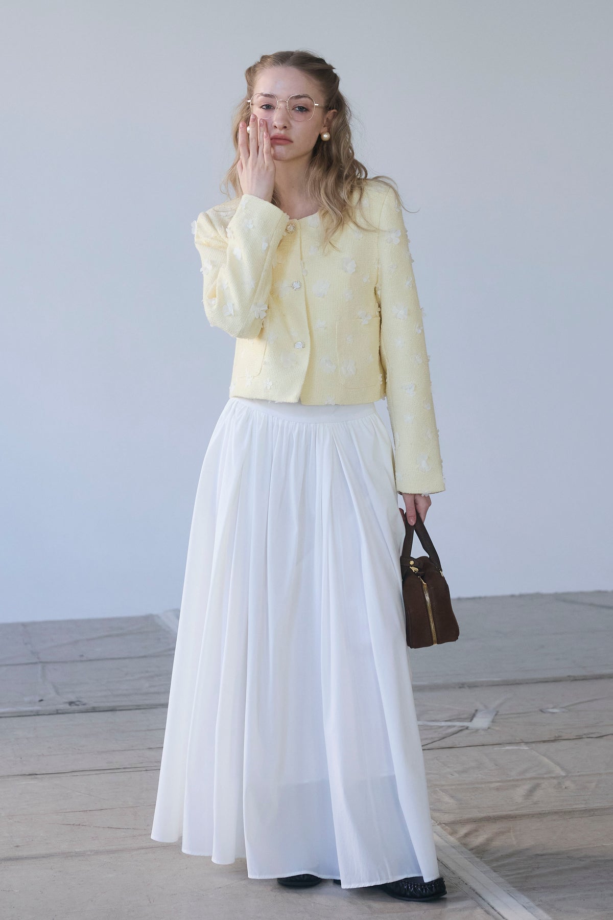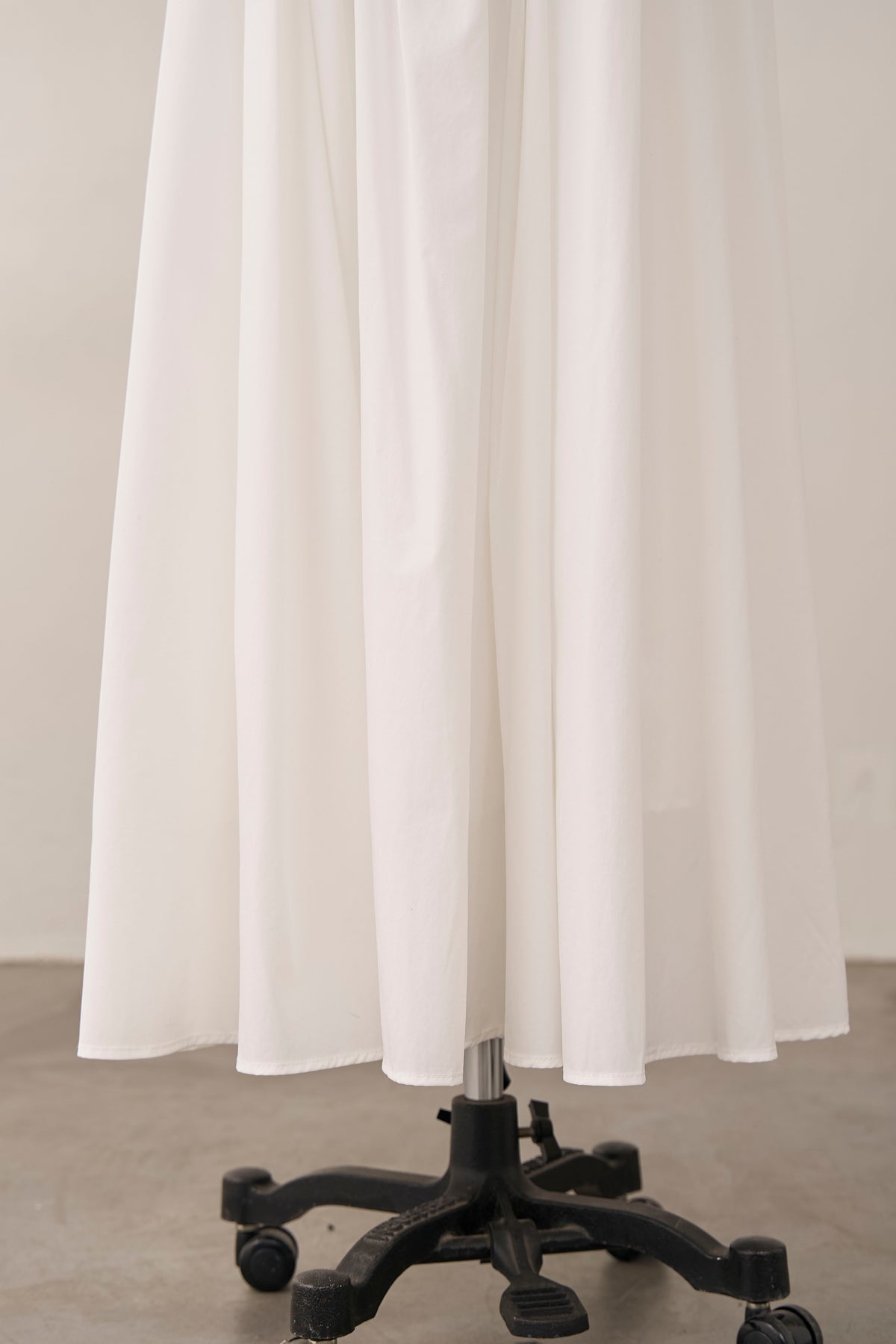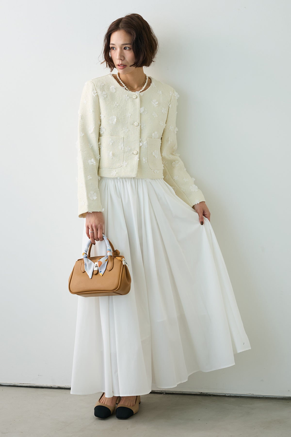 たっぷりと施されたギャザーが、歩くたびにエアリーな余韻を残すロングスカート。 コットンのようなナチュラルな風合いが、気負わない大人の抜け感を演出します。 広がりすぎない計算されたAラインシルエットは、ショート丈のジャケットやコンパクトなトップスとも相性抜群。 シンプルながらも存在感があり、春のワードローブに欠かせない万能な一着です。