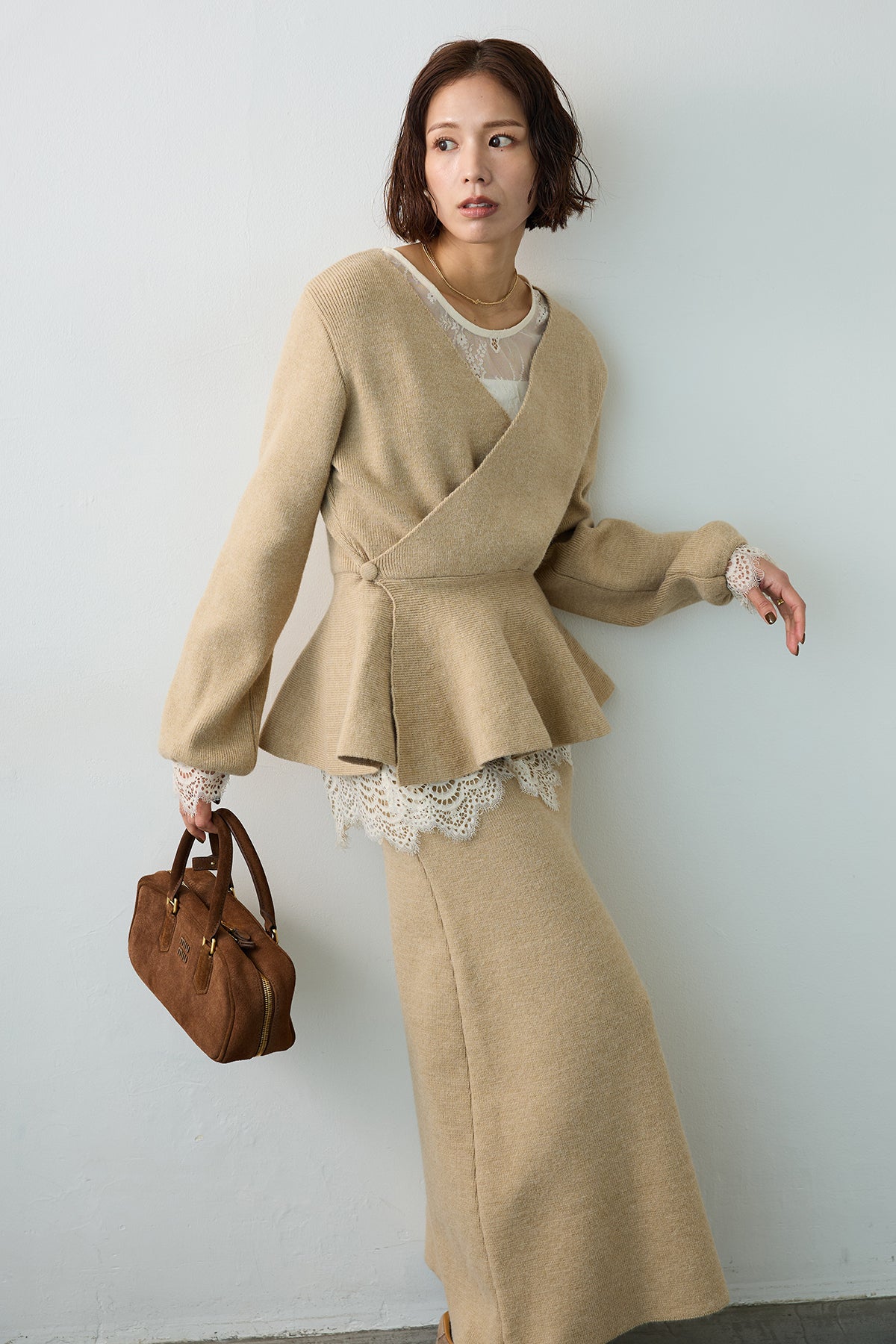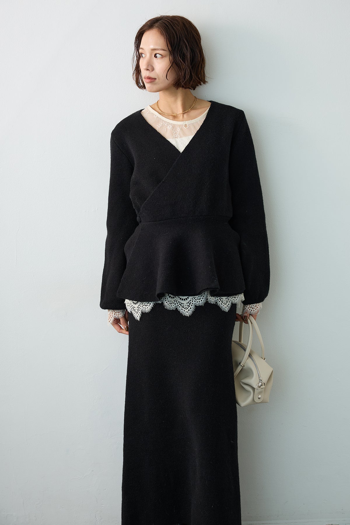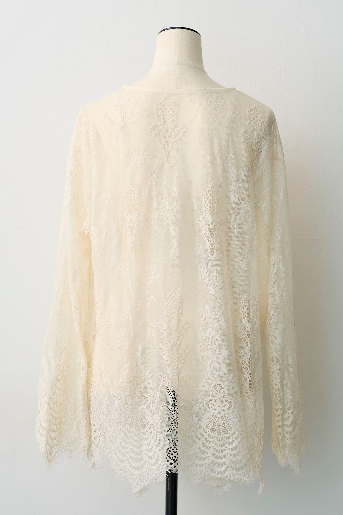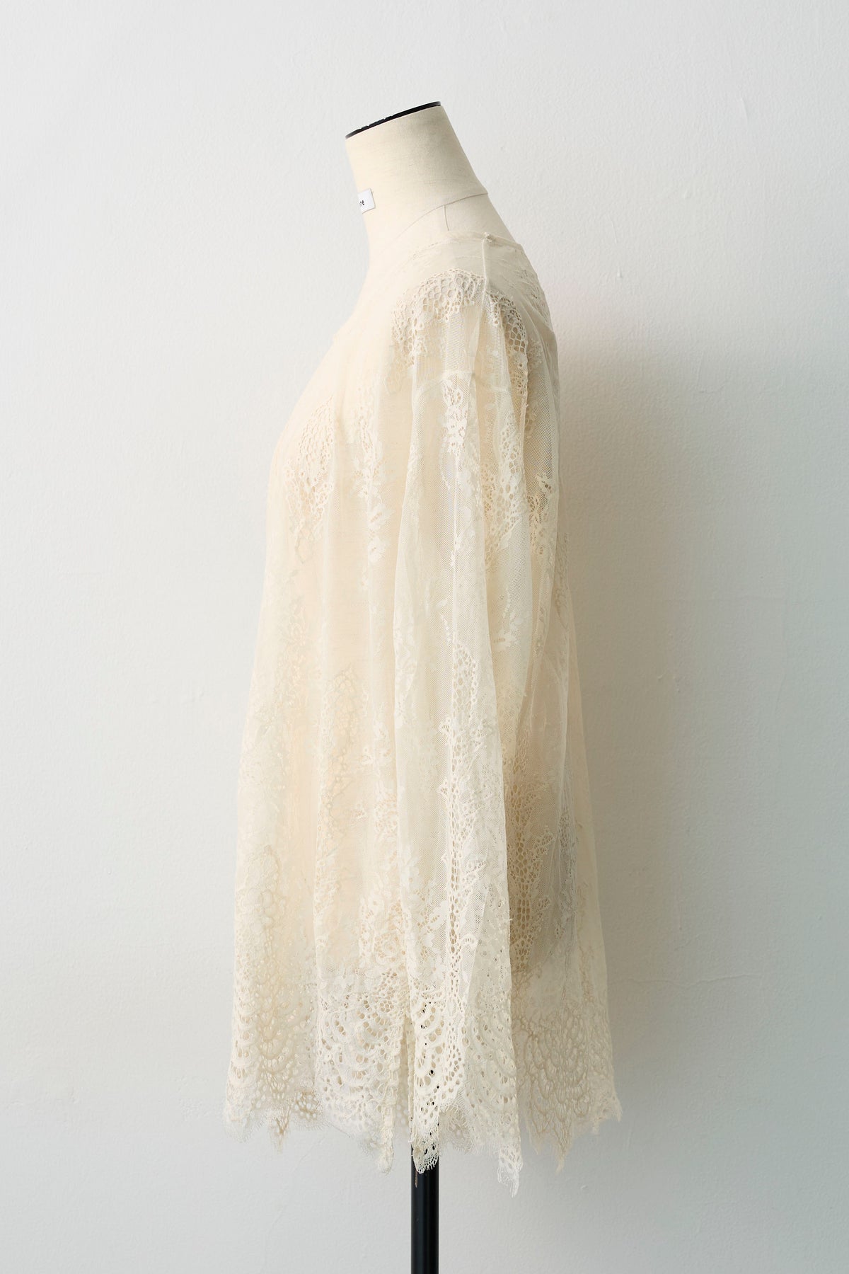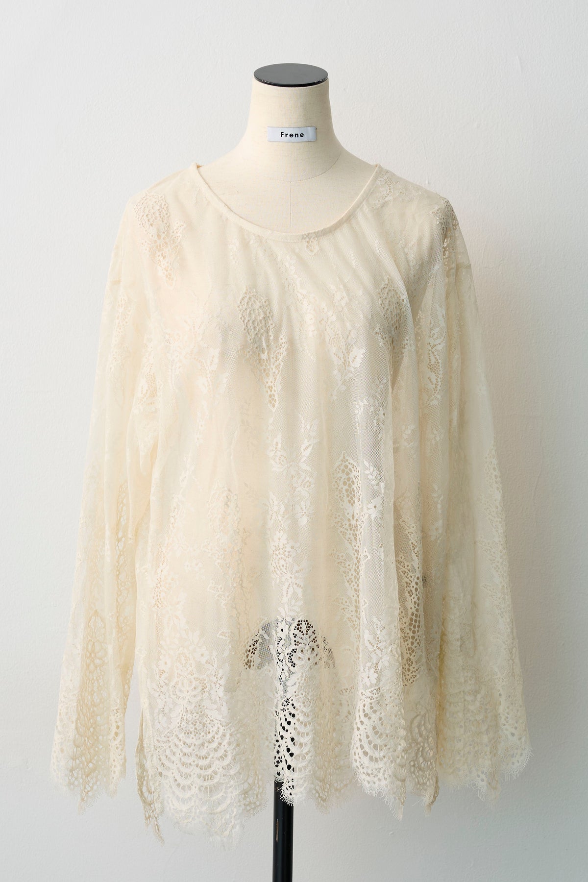 繊細なレースを贅沢に使用した、大人のレイヤードスタイルに欠かせないトップス。 ニットやプルオーバーのインナーとして合わせれば、襟元や袖口から覗く透け感が、装いに女性らしい華やぎと奥行きをプラスします。 裾や袖口は優美なスカラップ仕様になっており、重ね着した際のディテールまで美しく演出。 いつものコーディネートにプラスワンするだけで、洗練された印象へと導いてくれる着回し力抜群の一枚です。