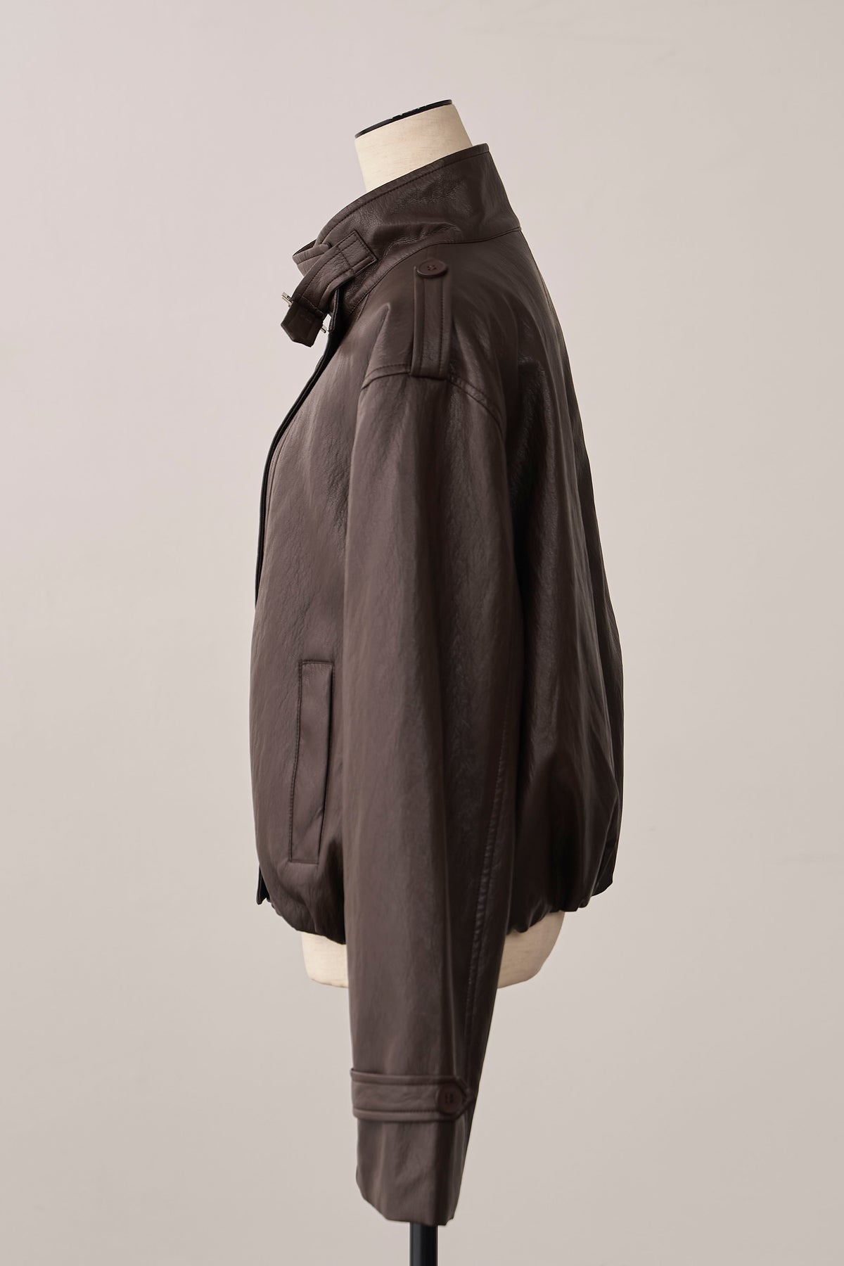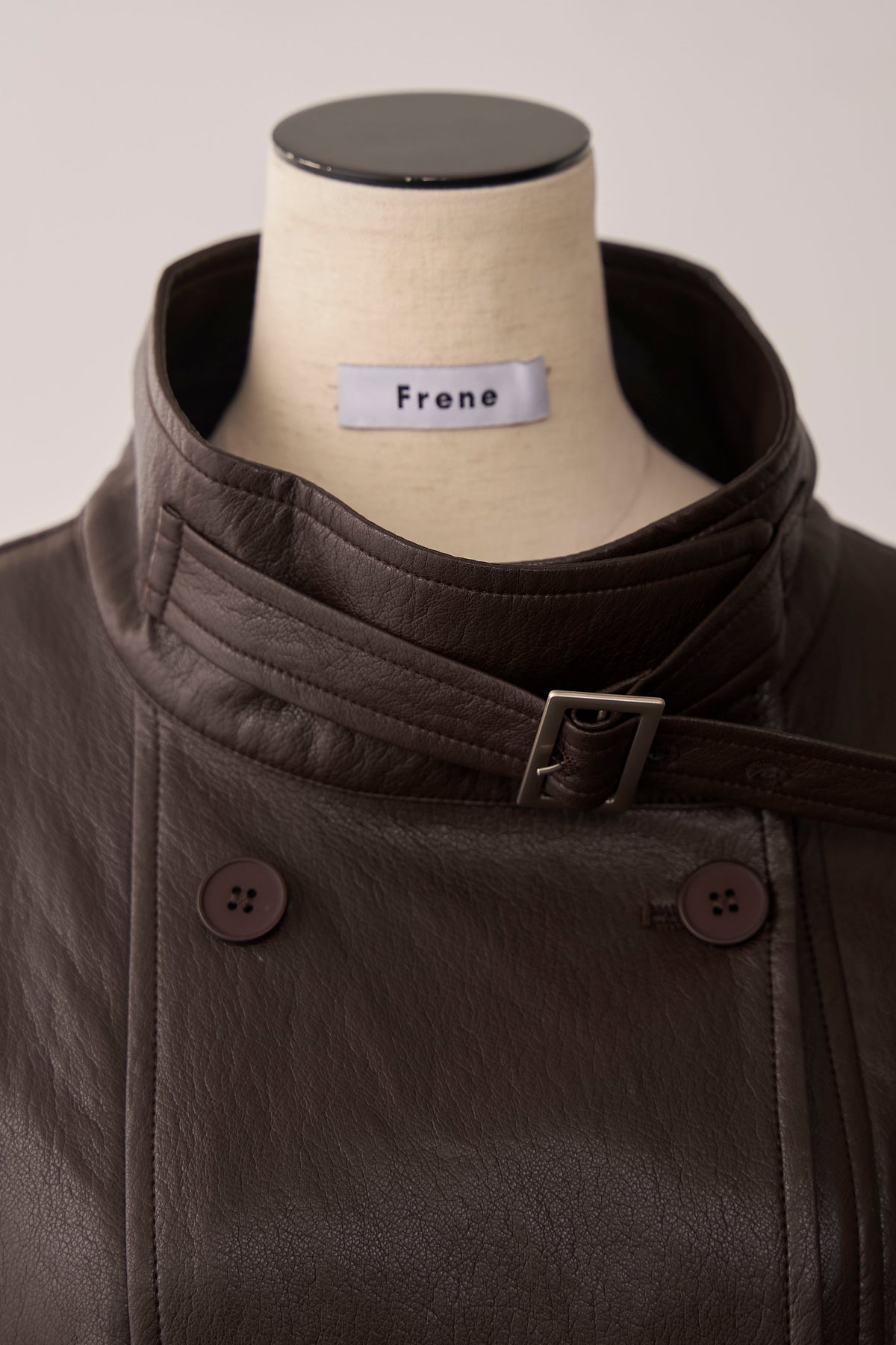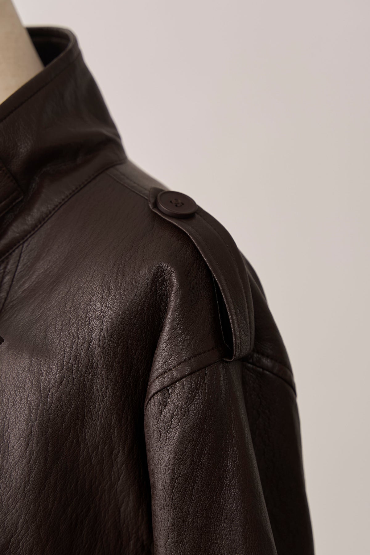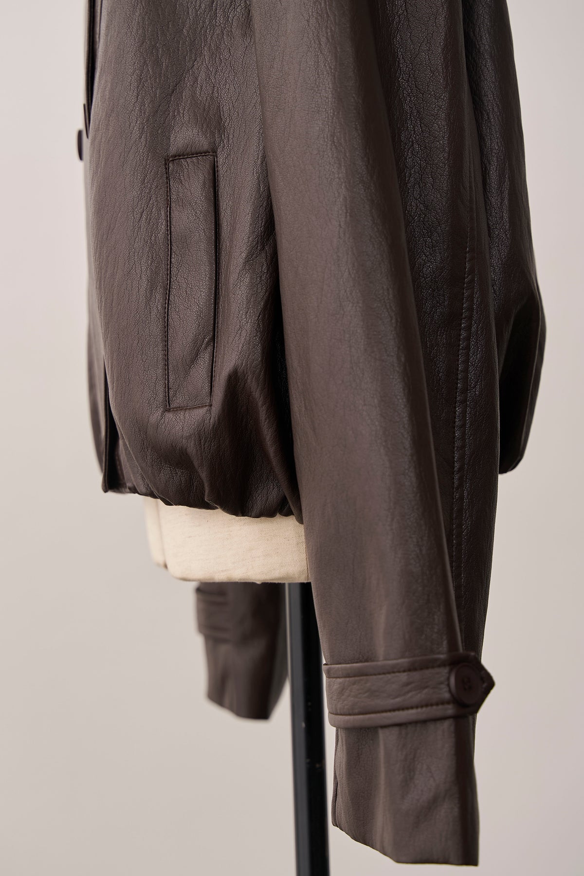 モードなスパイスを効かせた、レザーライククロップドジャケット。 首元のベルトを留めたスタンドカラーなら、都会的でシャープな印象に。 視線を上に集めるショート丈は、ボリュームスカートとも好相性で、脚長効果を約束します。 甘めな装いの引き締め役として活躍する、洗練された辛口アウターです。